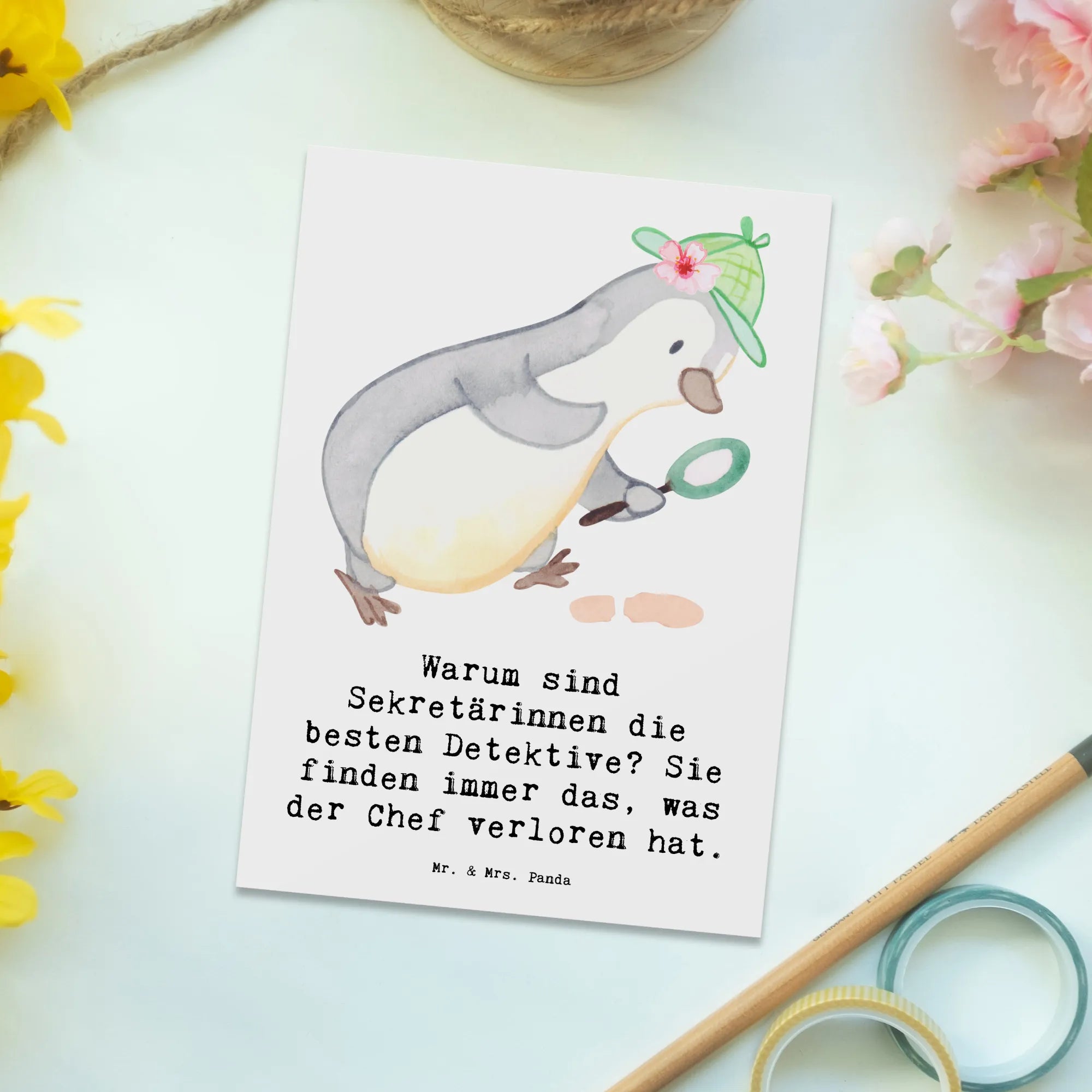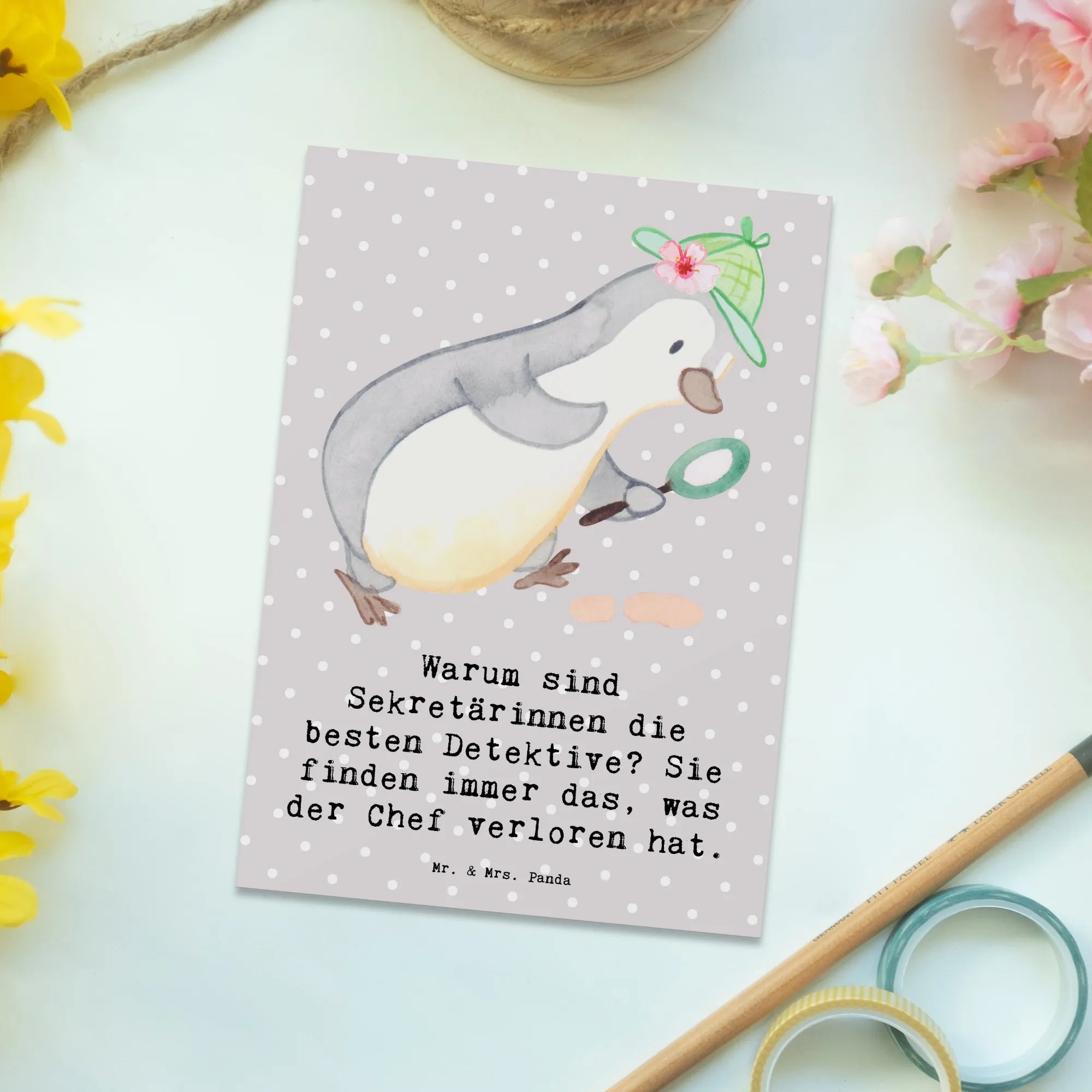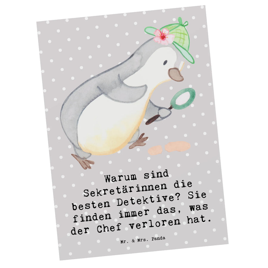 Postcard Warum sind Sekretärinnen die besten Detektive? Sie finden immer das, was der Chef verloren hat. - Grey Pastel