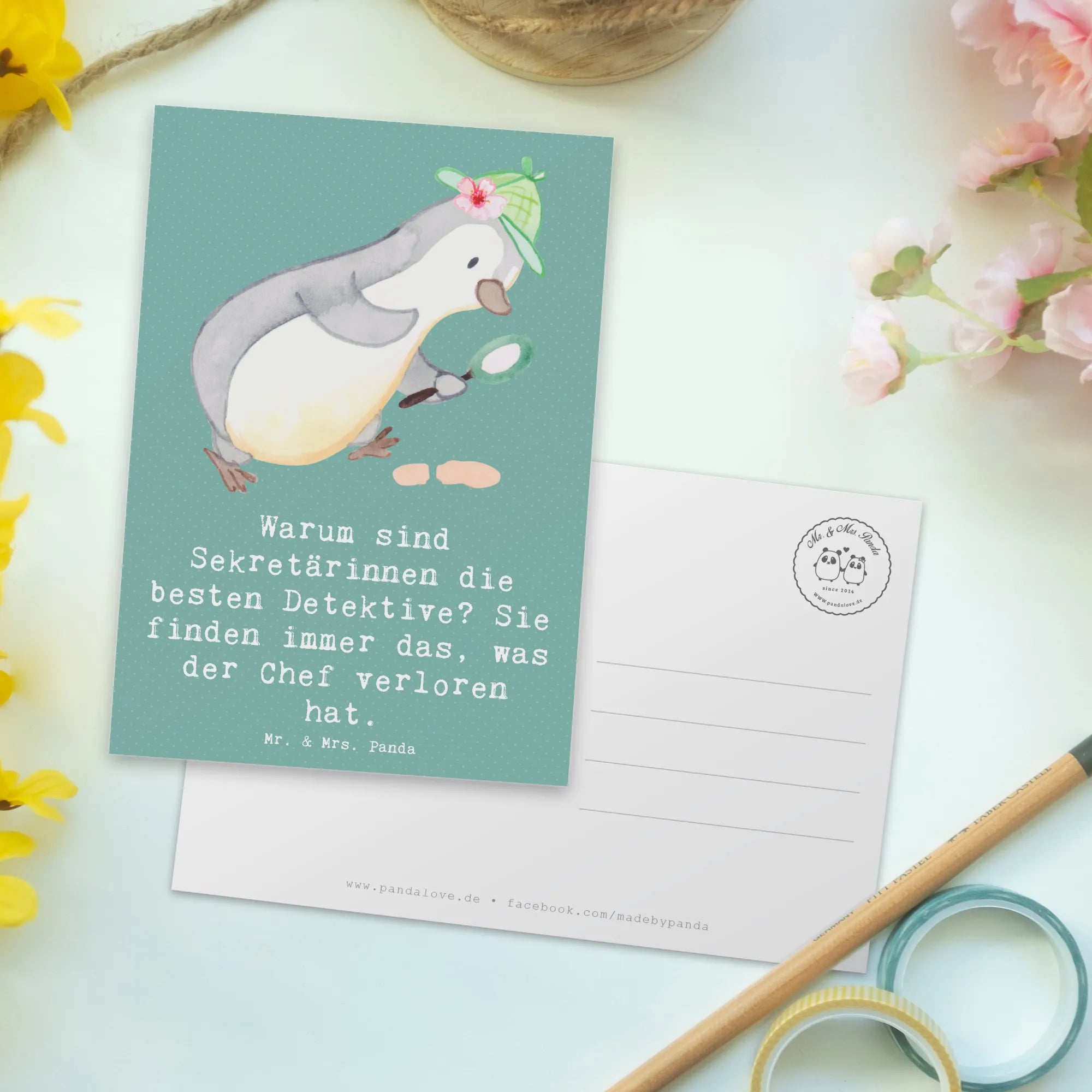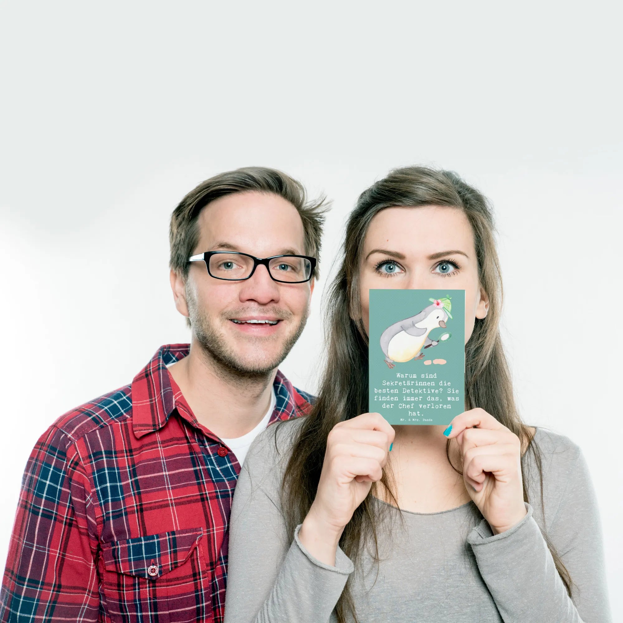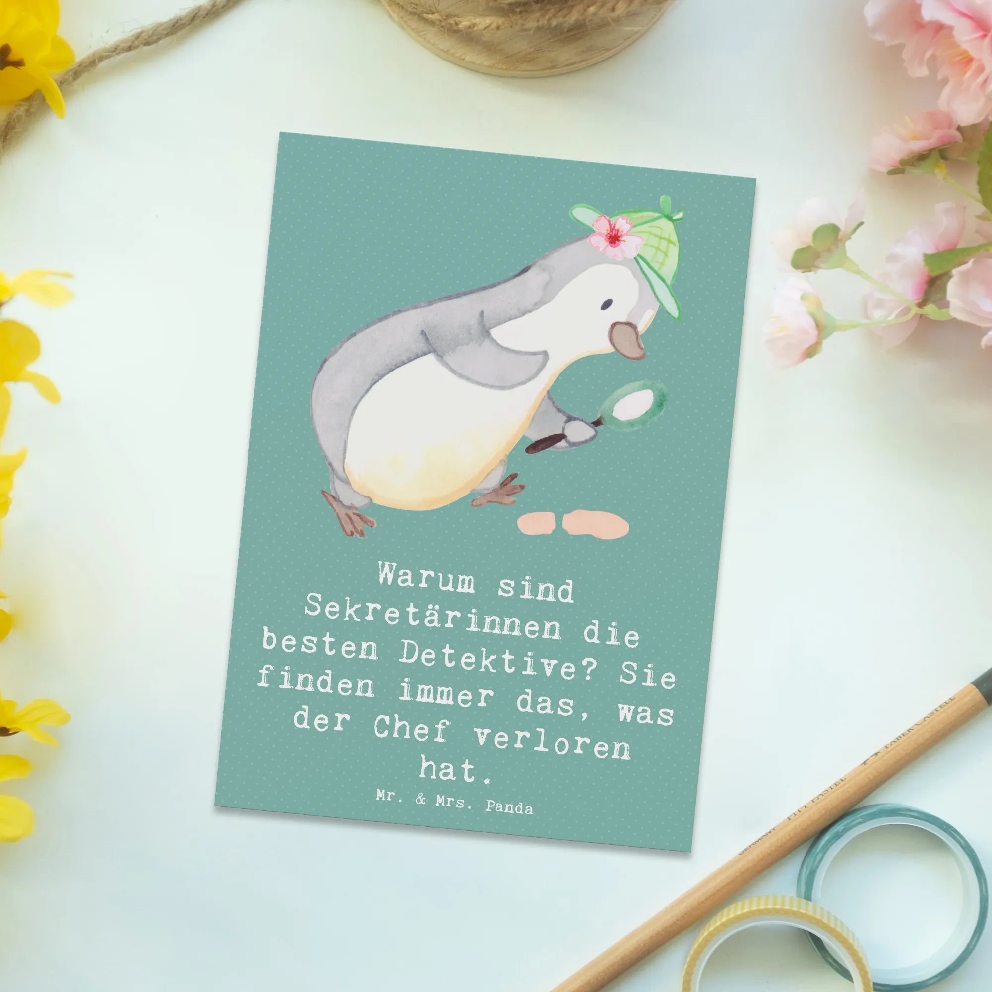 Postcard Warum sind Sekretärinnen die besten Detektive? Sie finden immer das, was der Chef verloren hat. - Grey Pastel