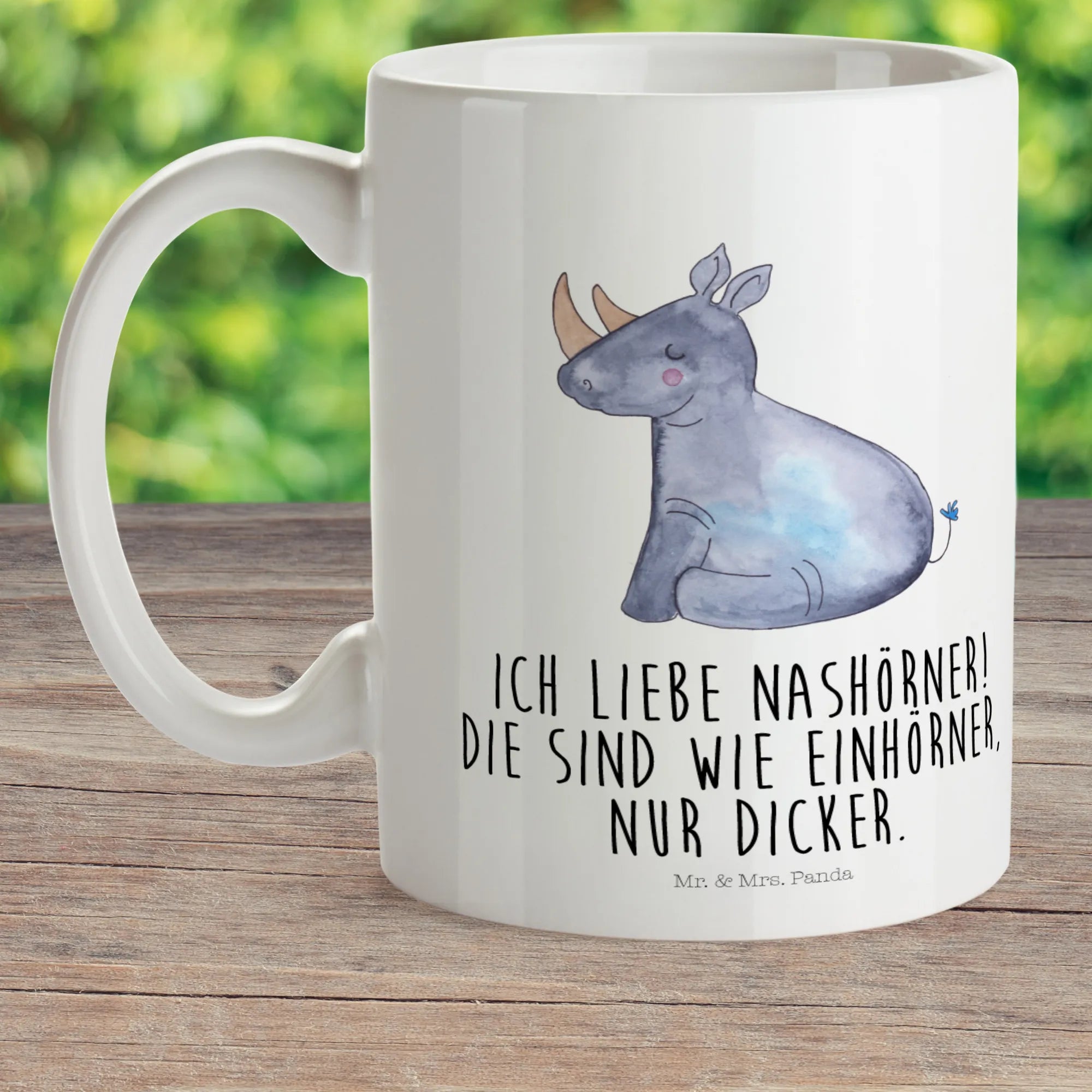 The whimsical design features a happy rhinoceros with a playful twist on unicorn lore. The slogan, "Ich liebe Nashörner. Die sind wie Einhörner, nur dicker," adds a funny touch, showing that unicorns aren't that rare; they just come in all shapes and sizes! This unique charm is sure to elicit smiles and giggles, making mealtime and snack time that much more enjoyable.