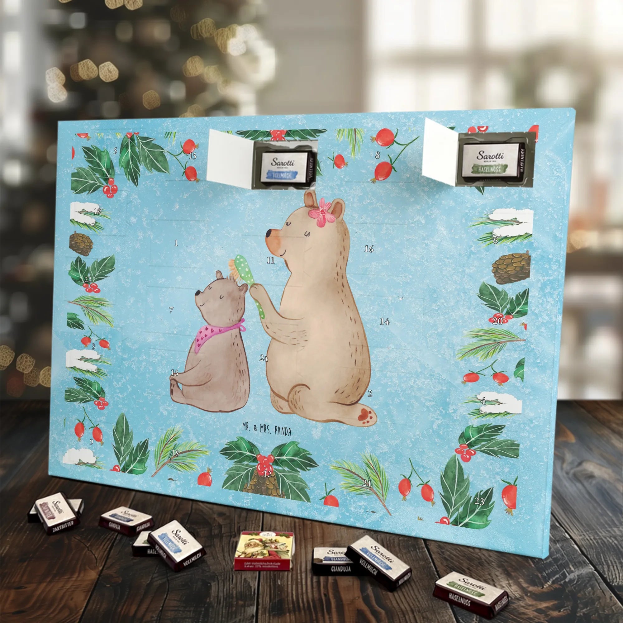 Chocolate advent calendar bear child - Classic - with saying - Ice Blue