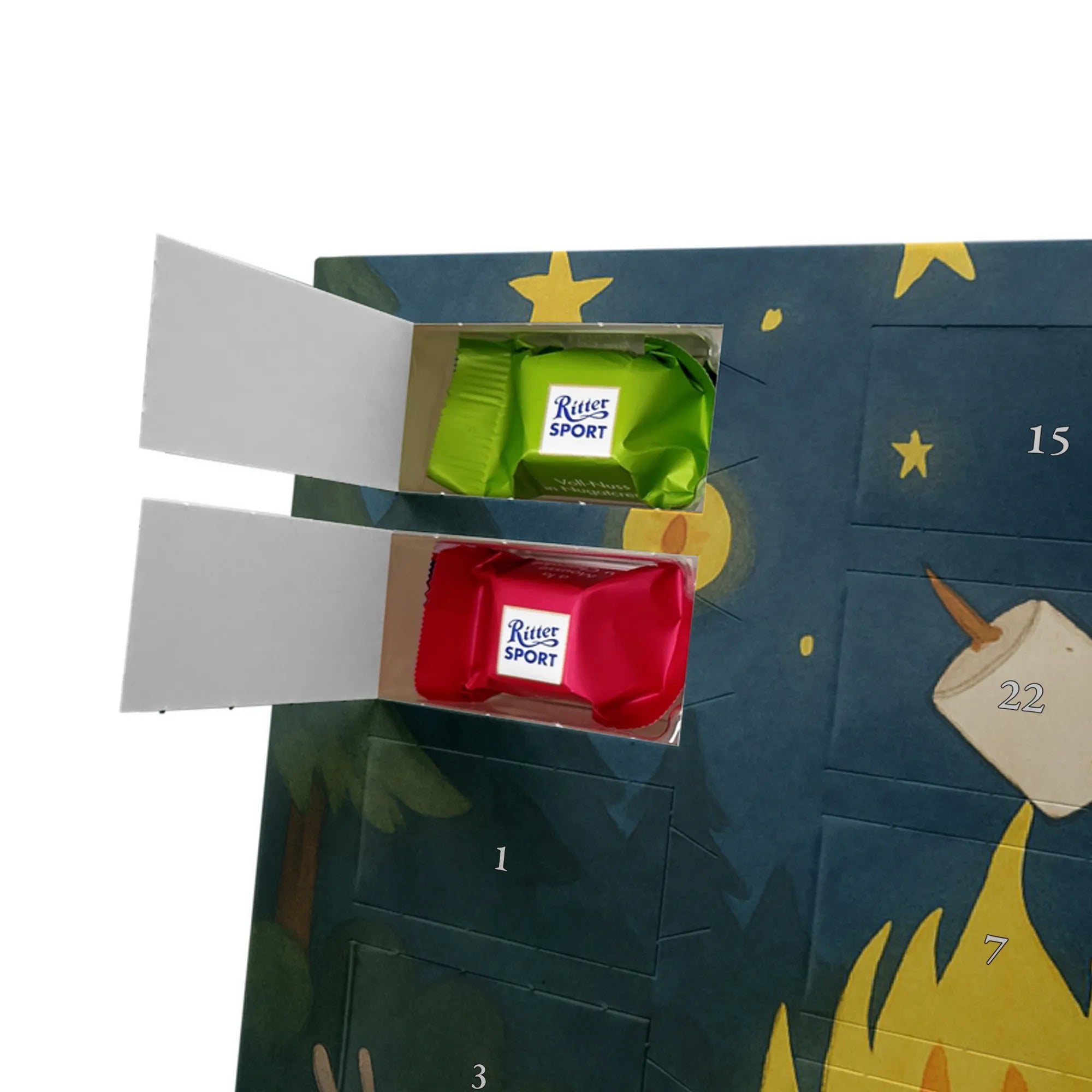Chocolate advent calendar Bear & Ladybird campfire Design - Ritter Sport - with saying