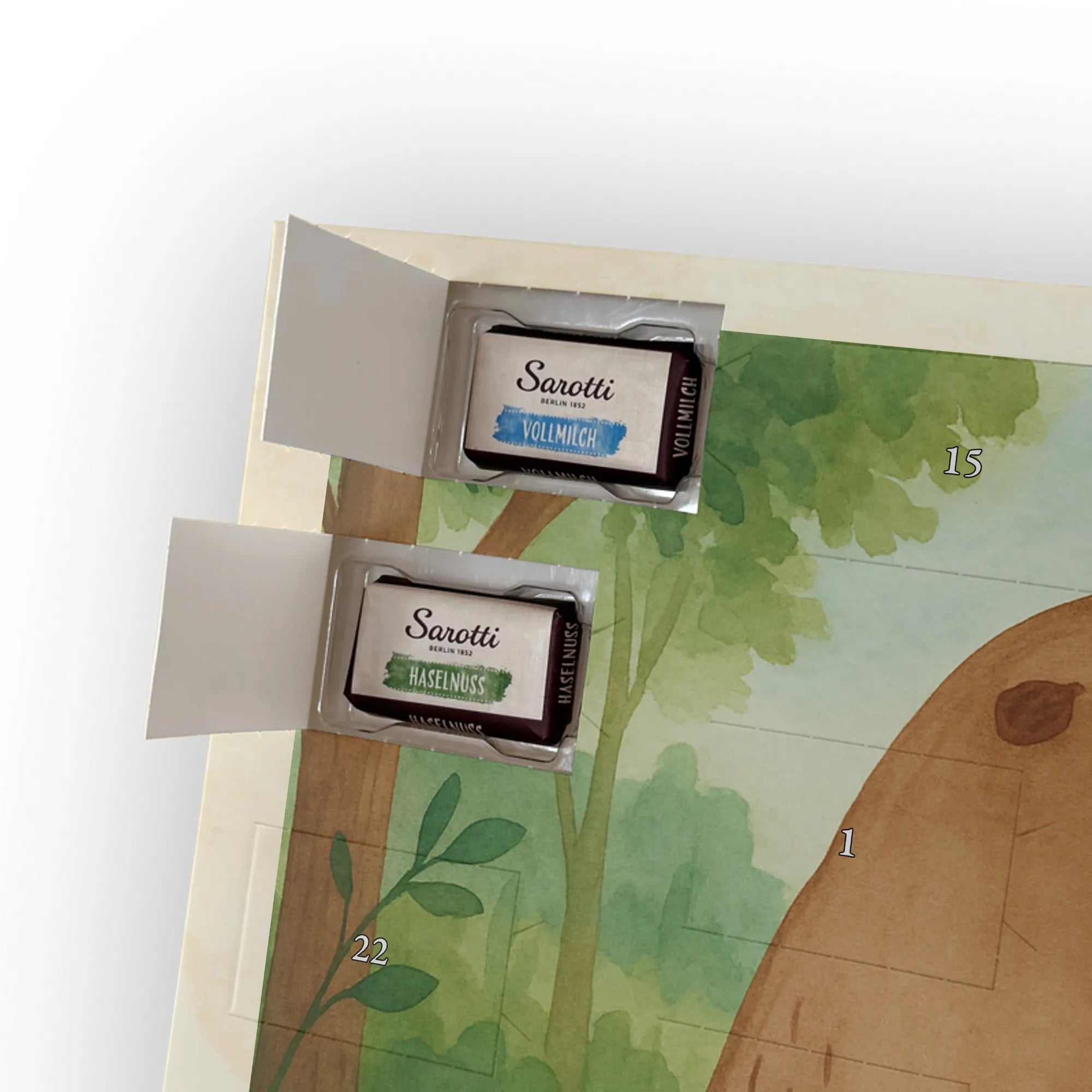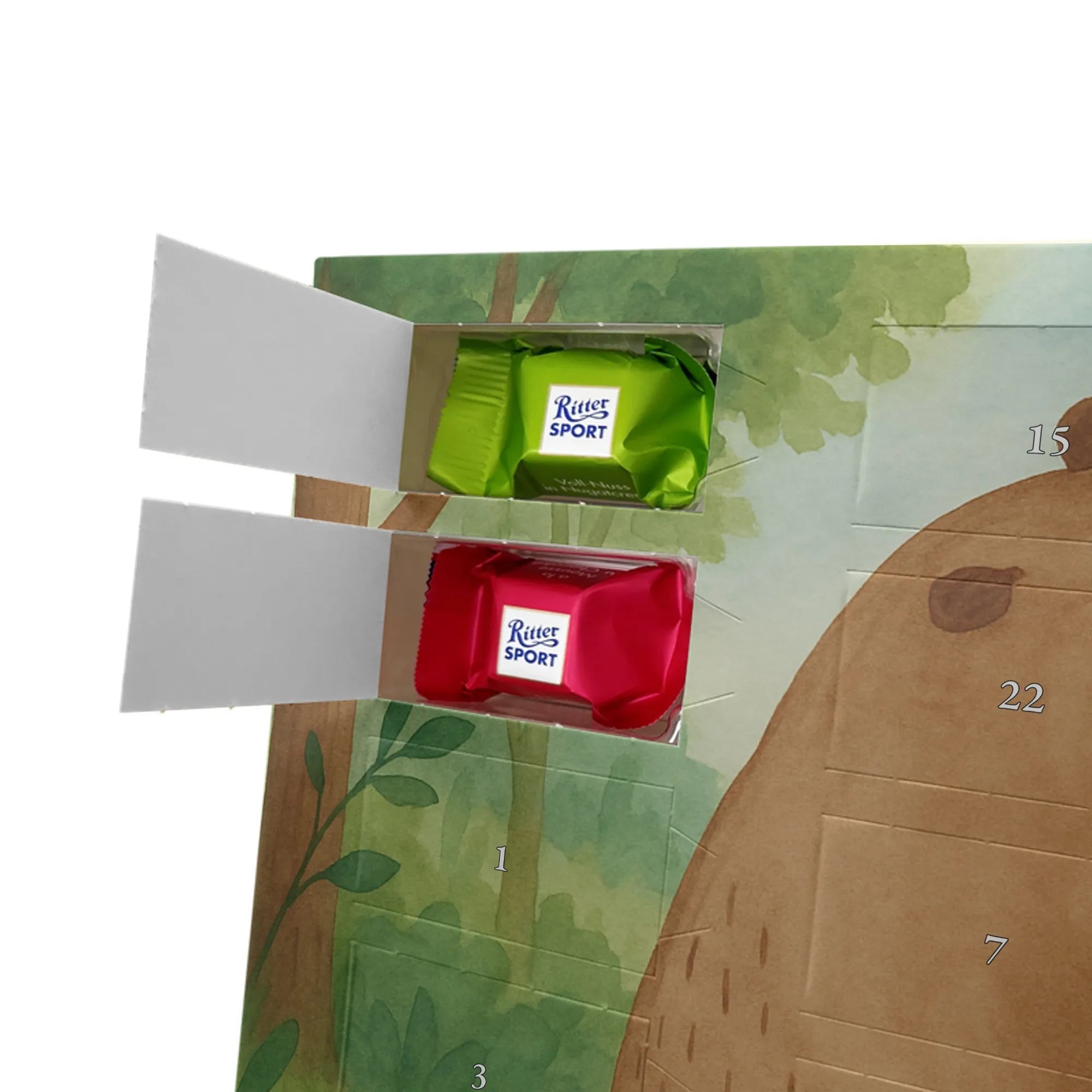 Chocolate advent calendar bear shoulder look Design - Ritter Sport - with saying