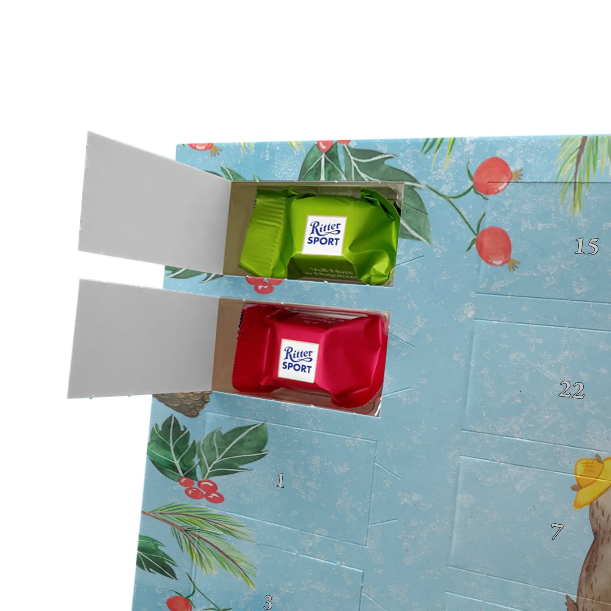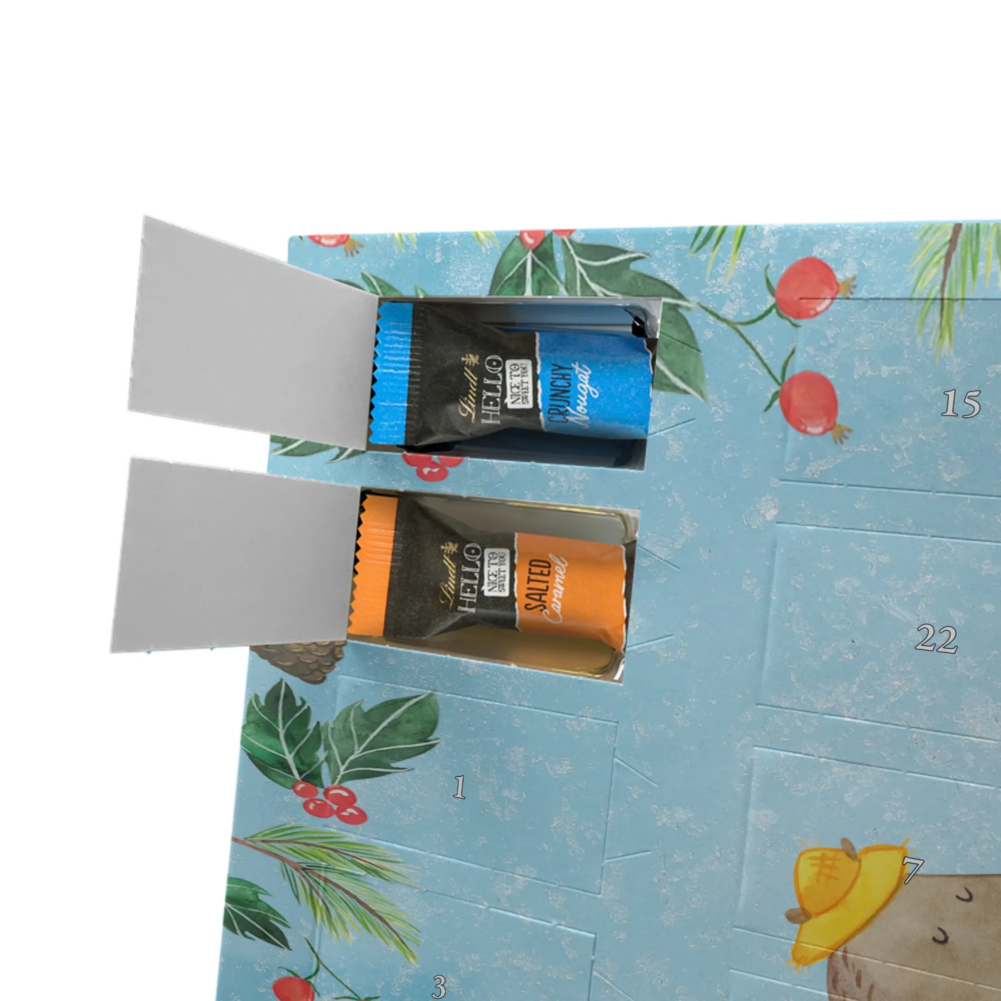 Chocolate advent calendar Bears with hats - Classic - with saying - Ice Blue
