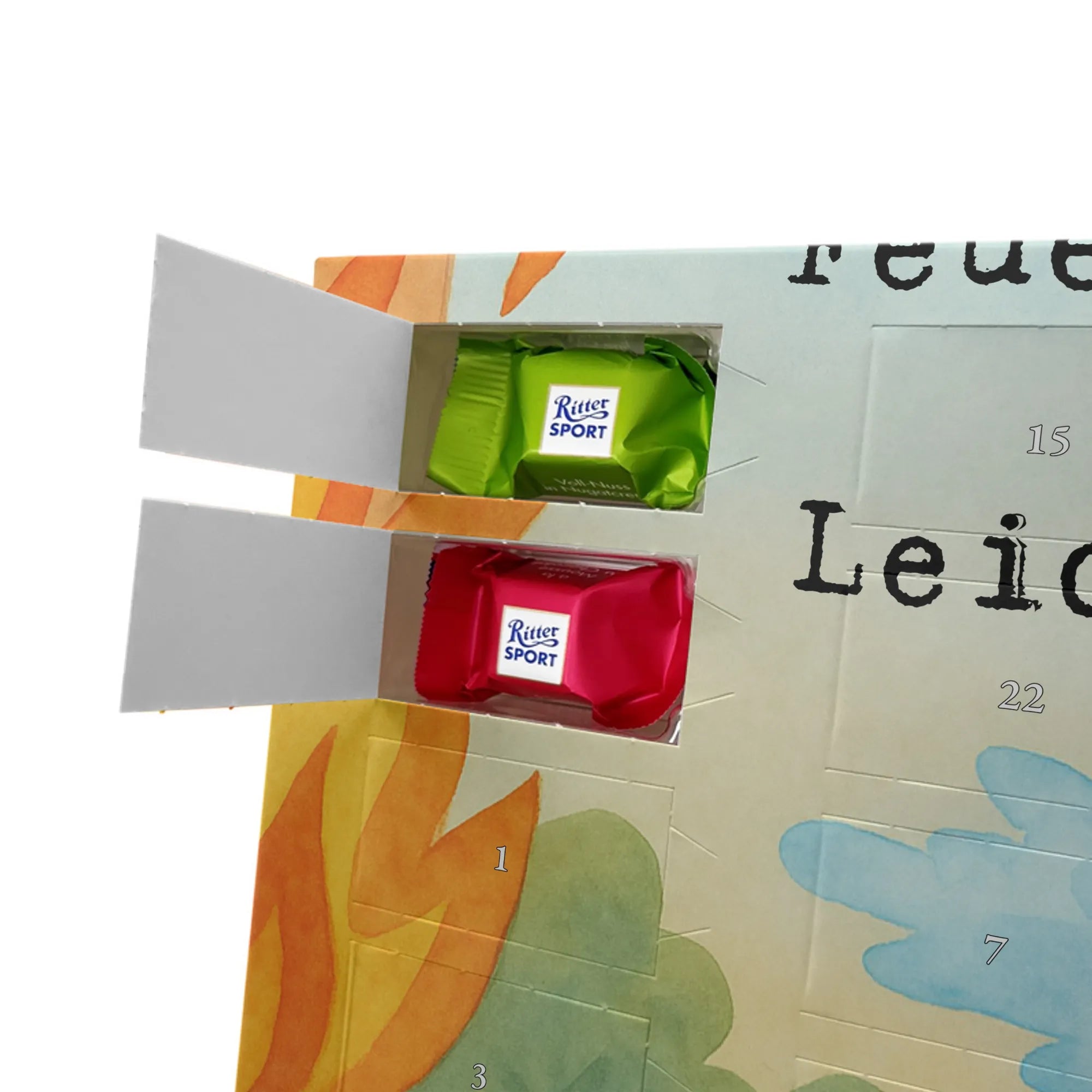This handy advent calendar 2020 from Mr. & Mrs. Panda is really something very special - it is decorated with wonderful motifs and has the size 24m x 18cm x 2,5cm. It is filled with 24 chocolate balls and costs 14,90€ - the calendar can be hung up or set up using the set-up function on the back. Please note that we also have a larger calendar with delicious chocolate from Hello Lindt.