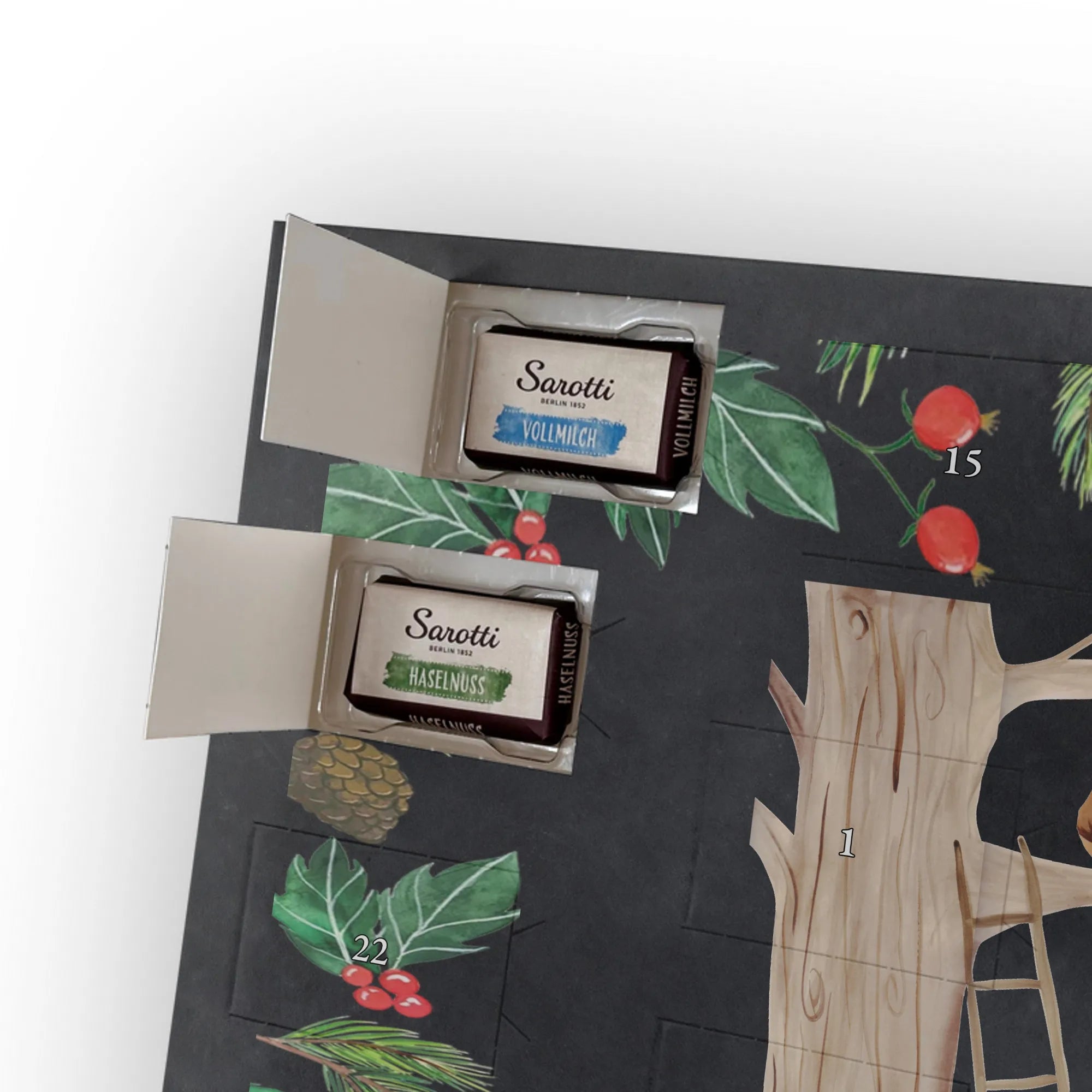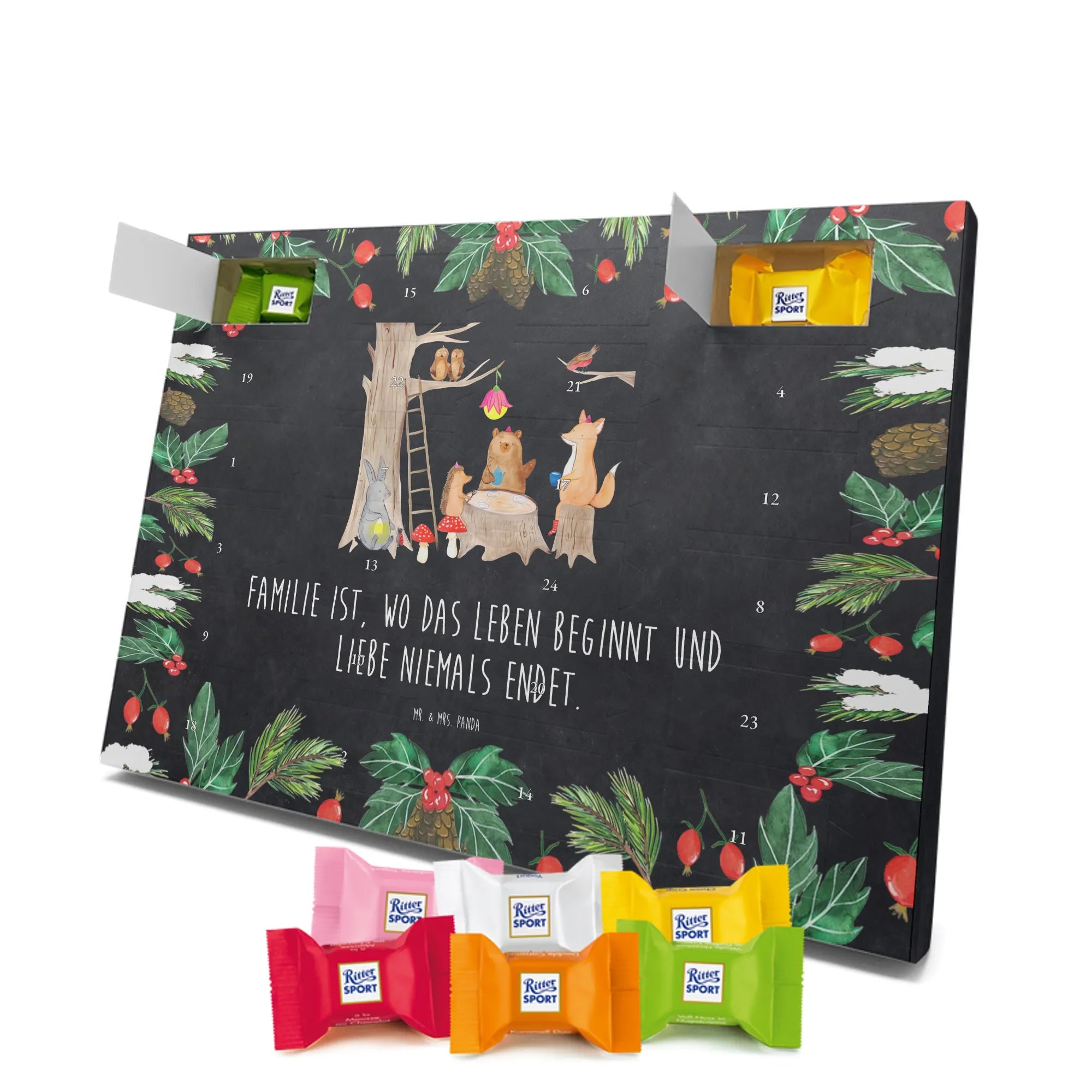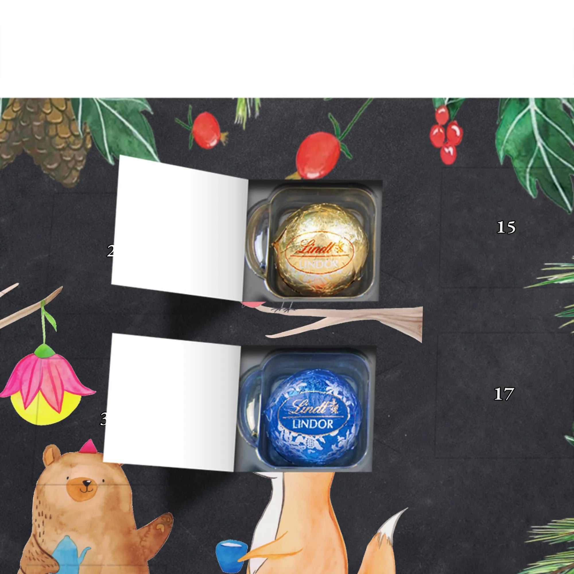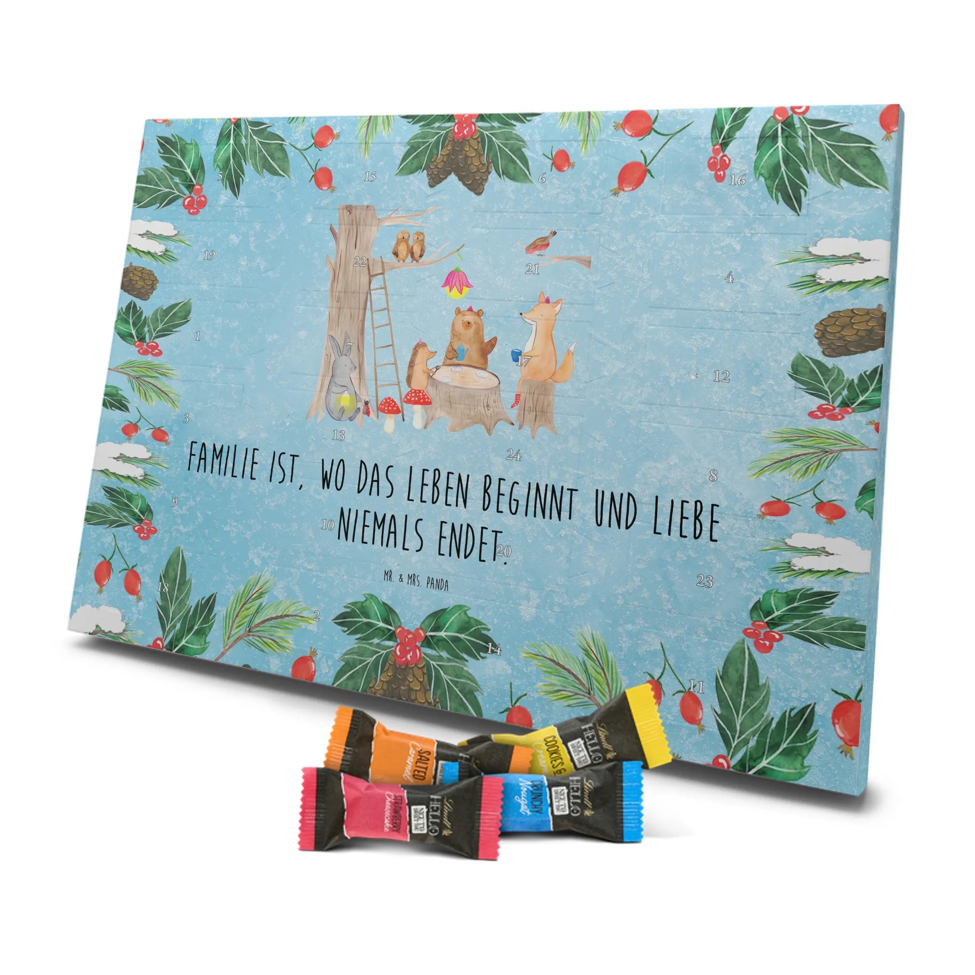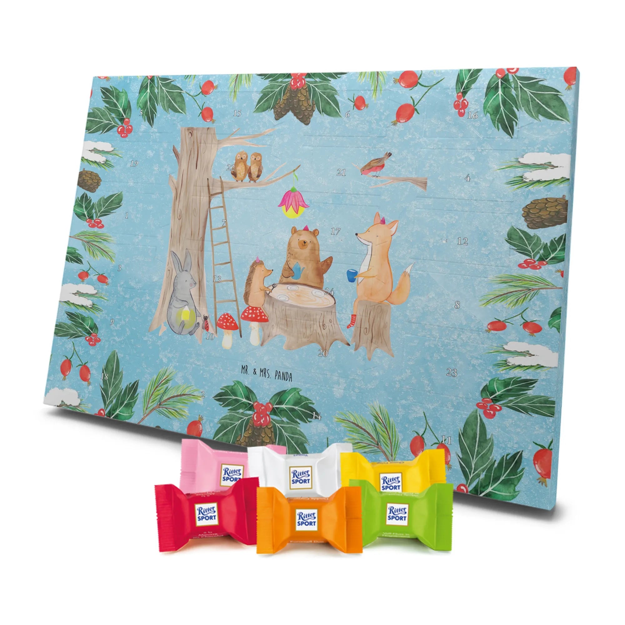 Chocolate advent calendar forest animals picnic - Classic - with saying - Ice Blue