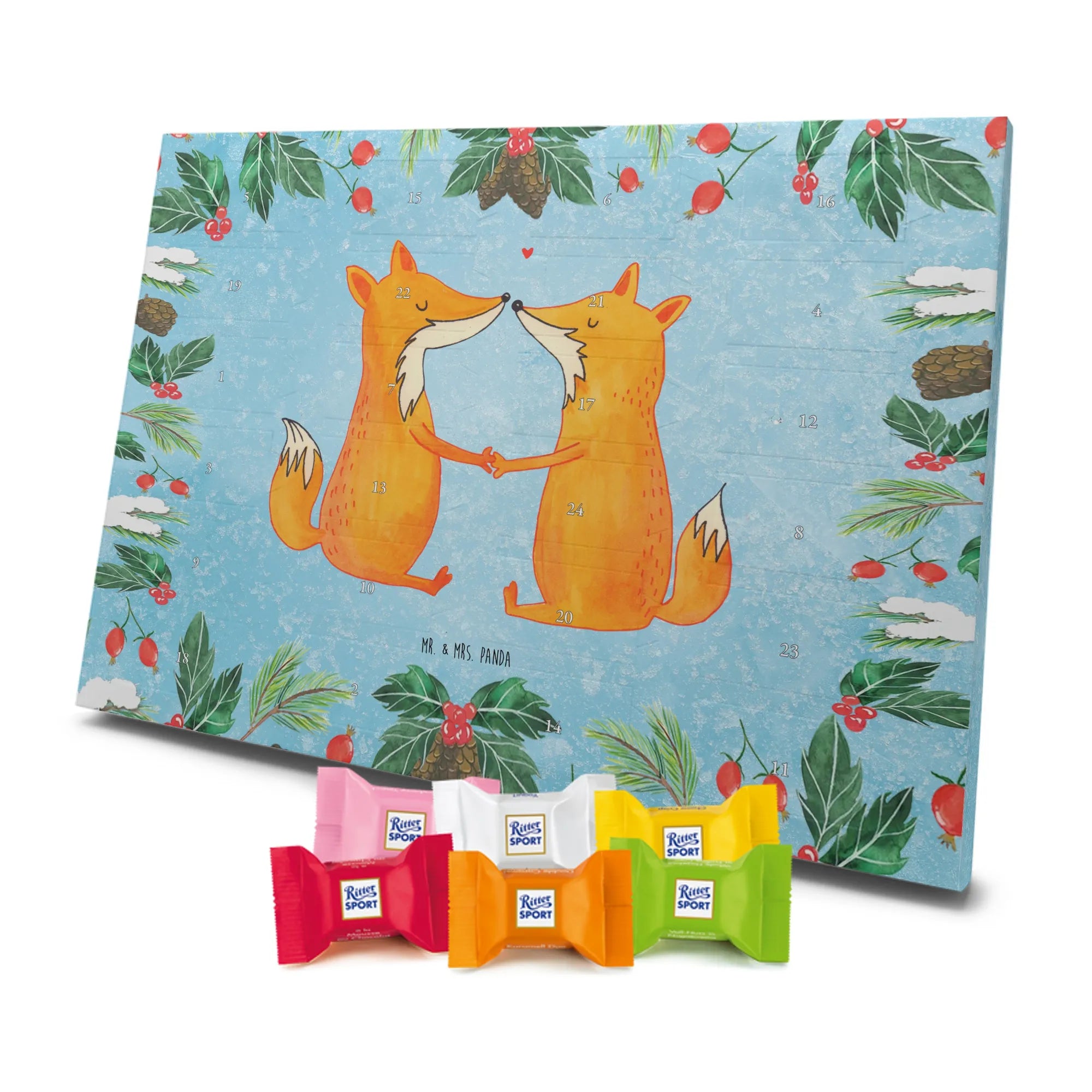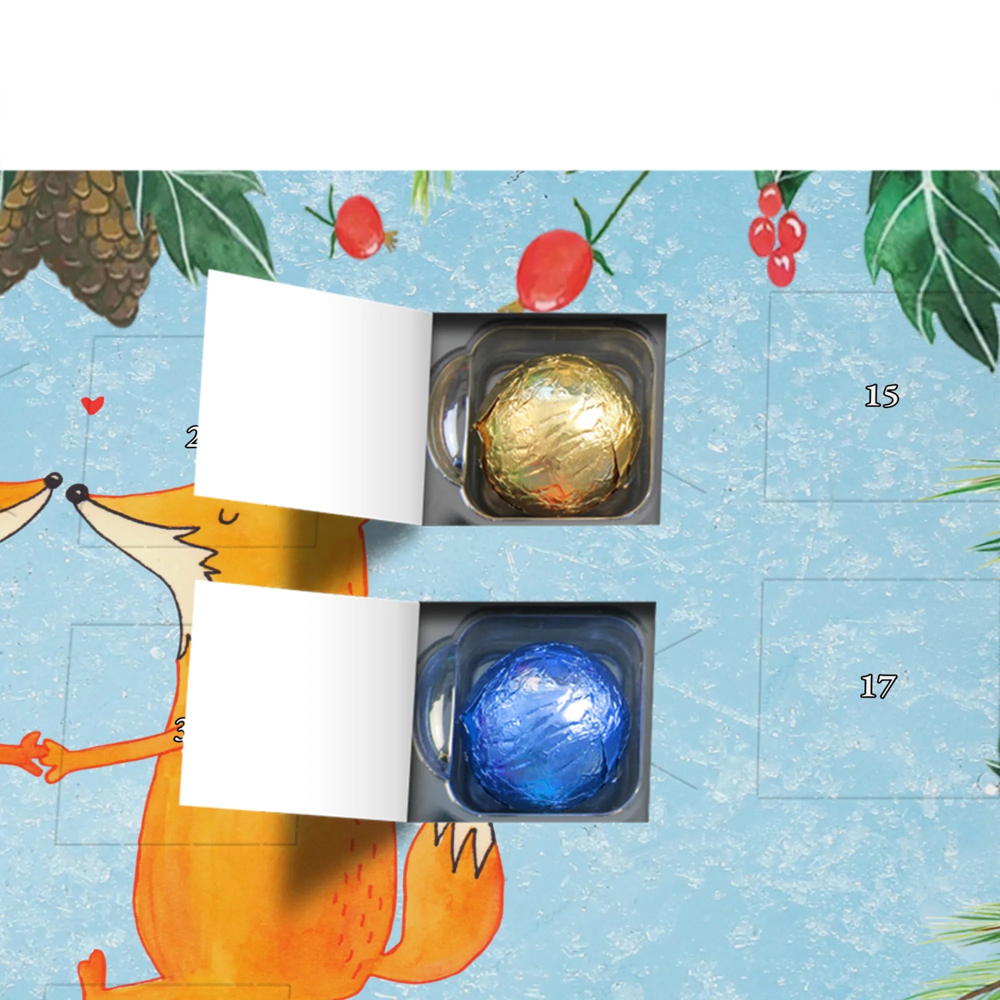 Chocolate advent calendar foxes Love - Classic - with saying - Ice Blue