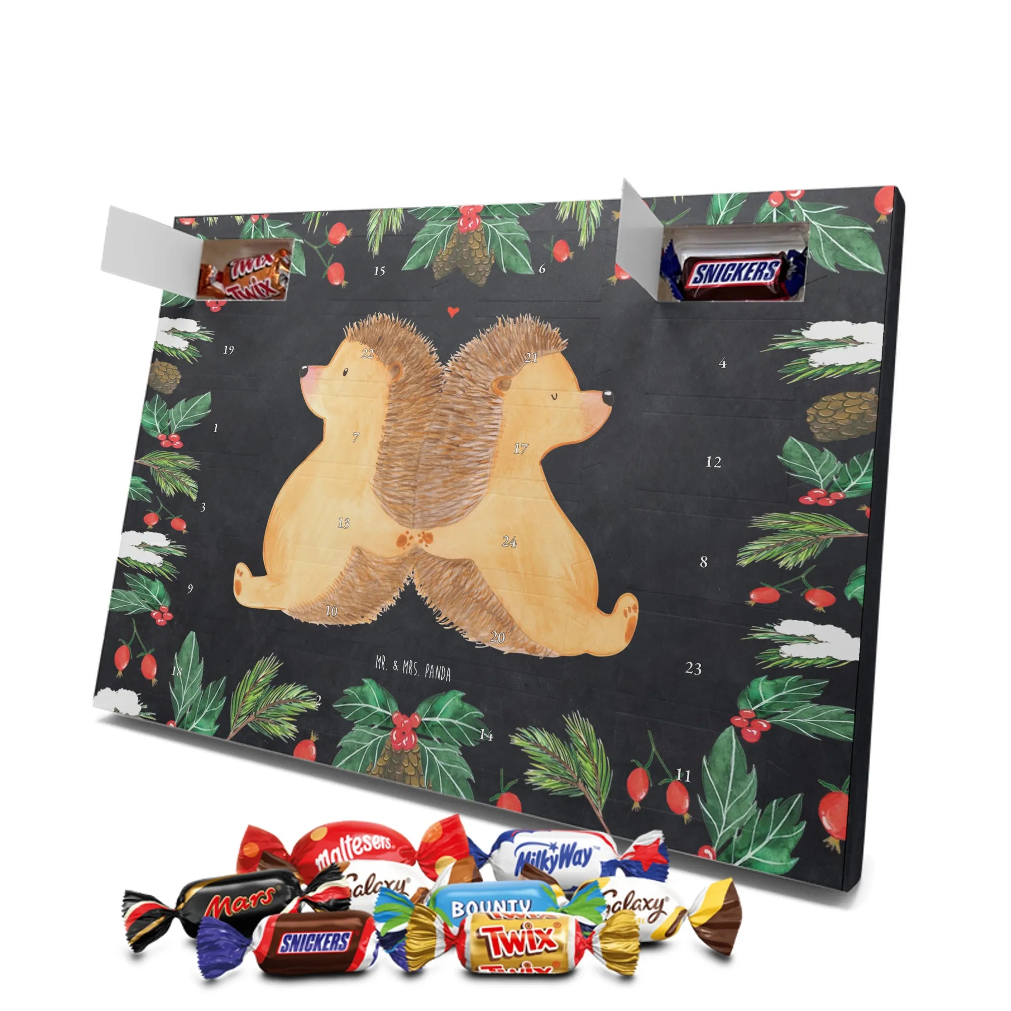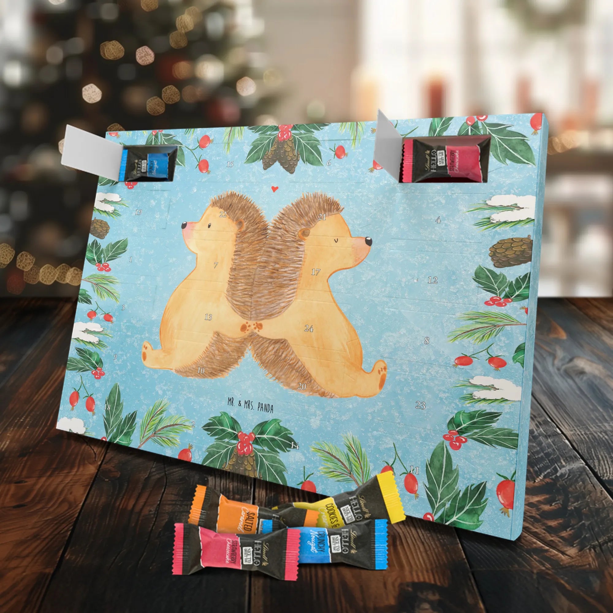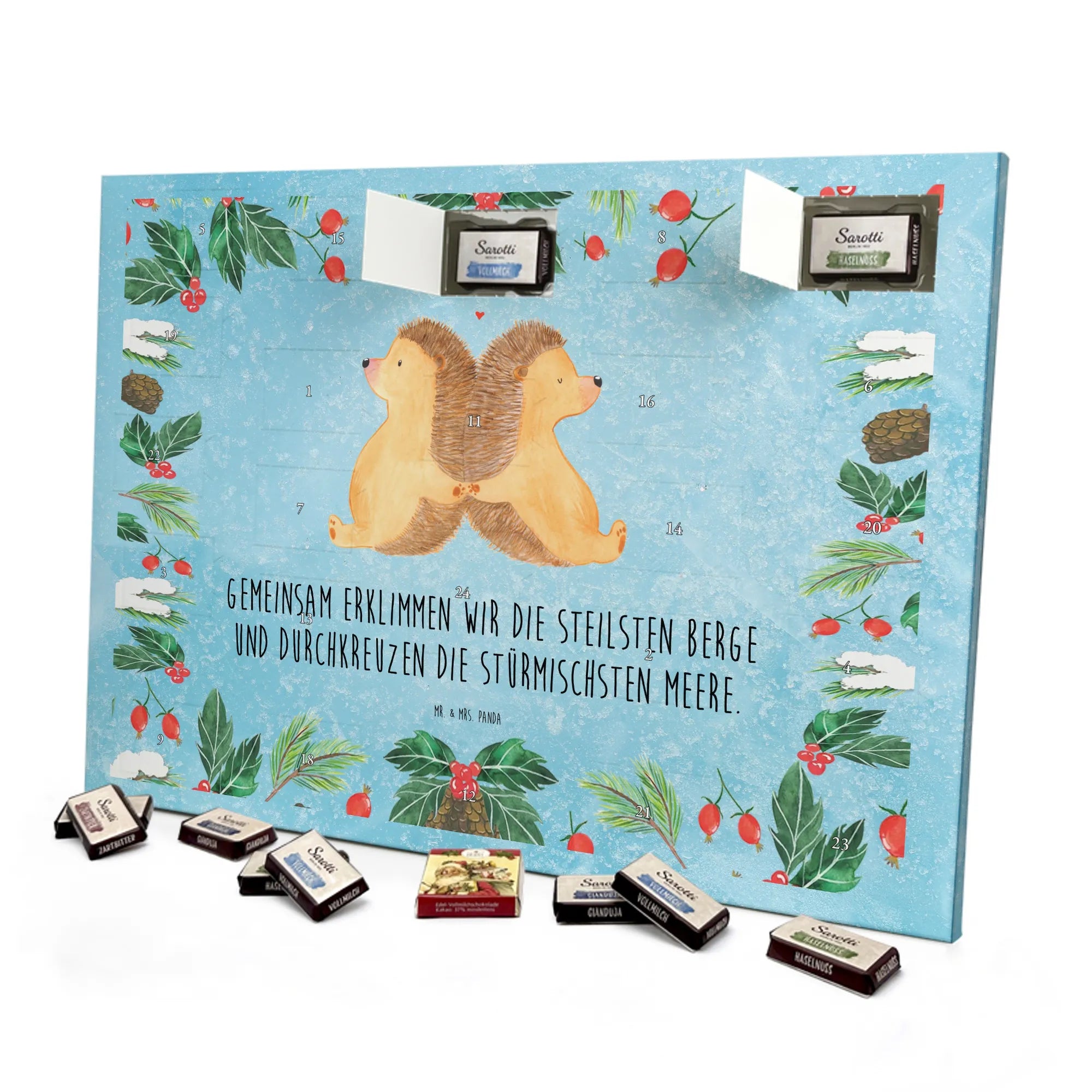 Chocolate advent calendar Hedgehogs holding hands - Classic - with saying - Ice Blue