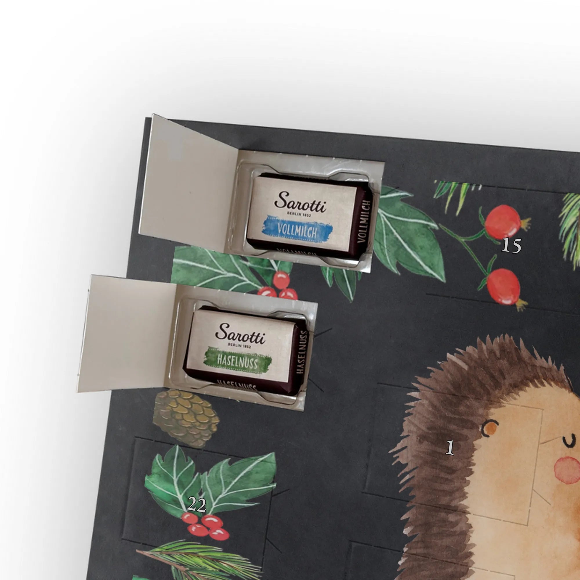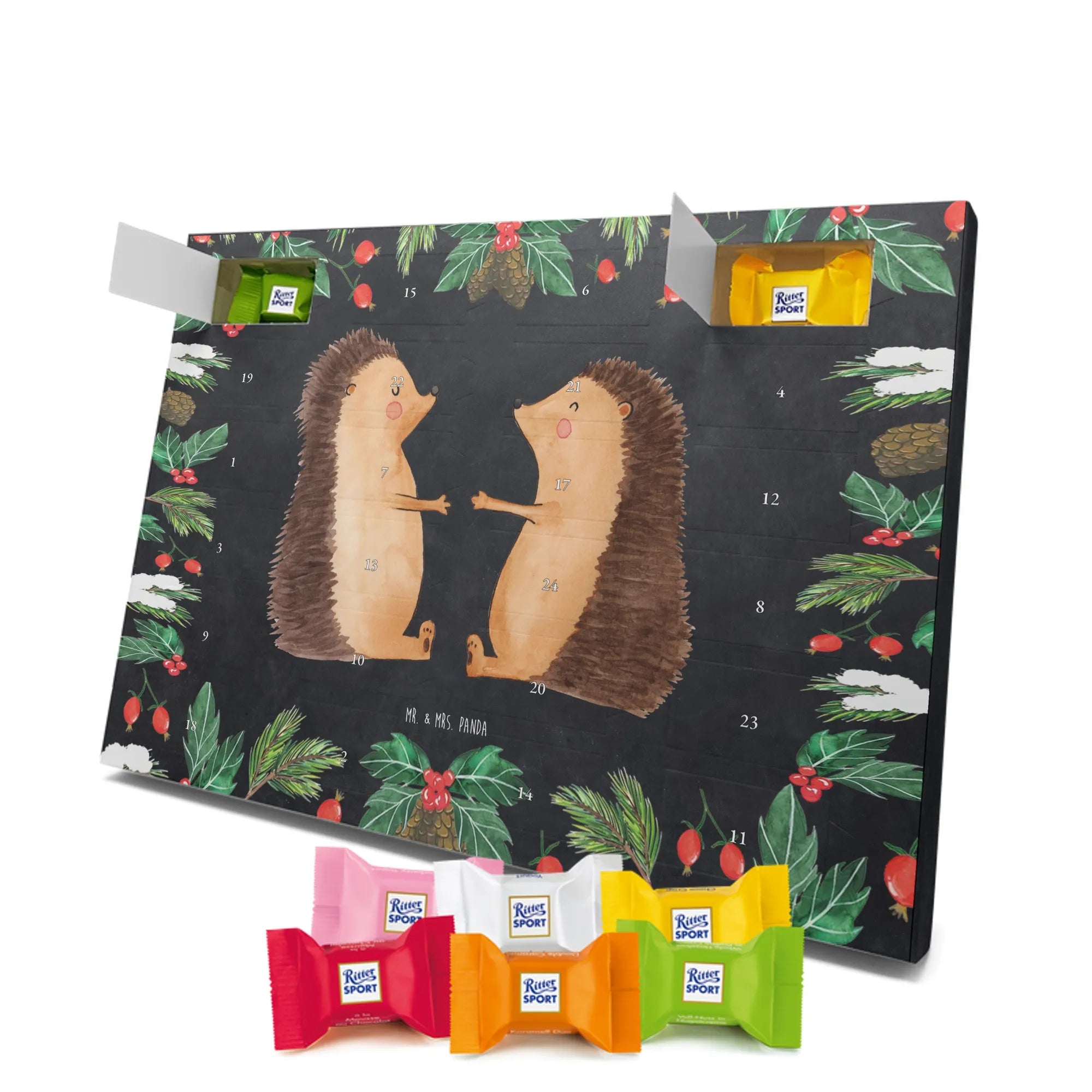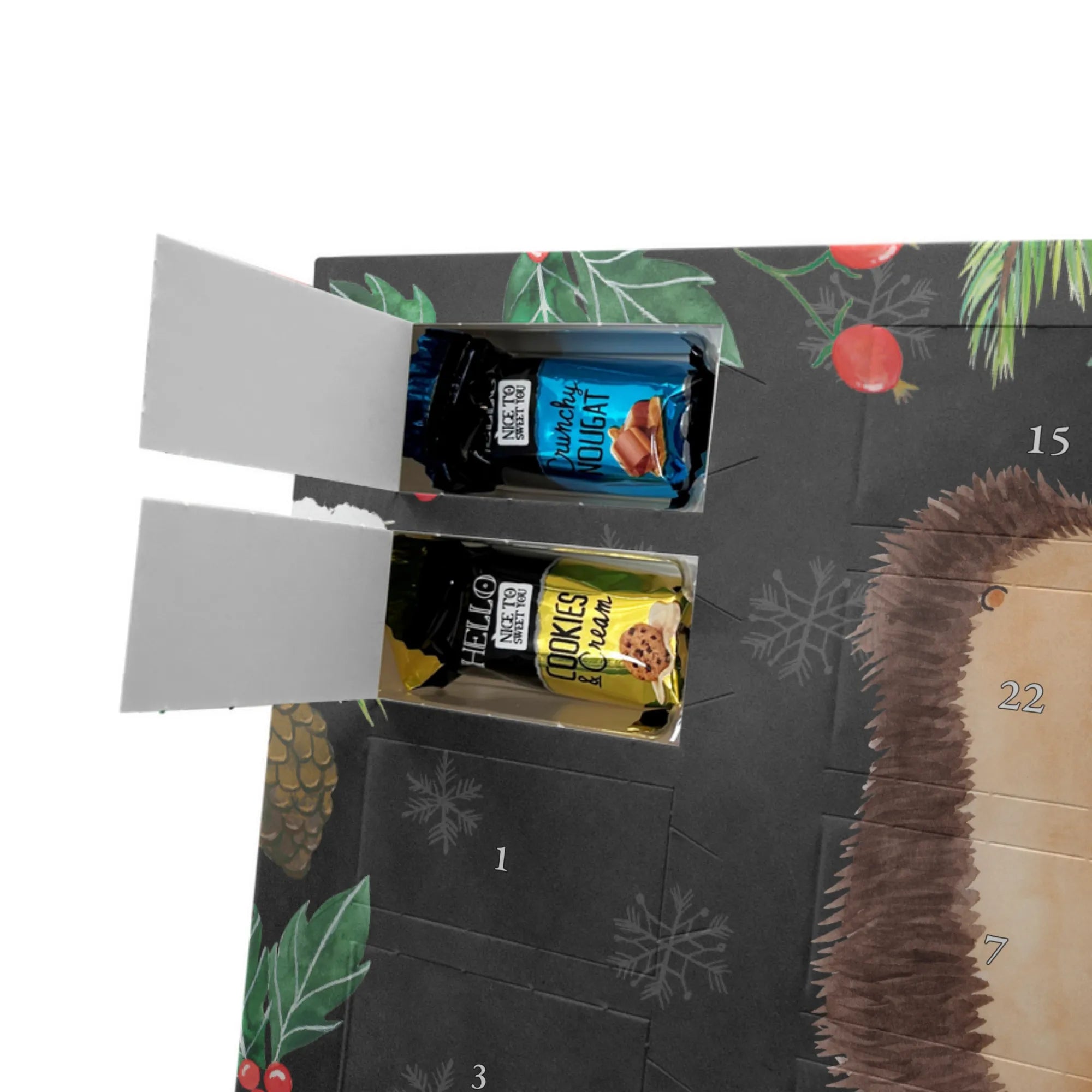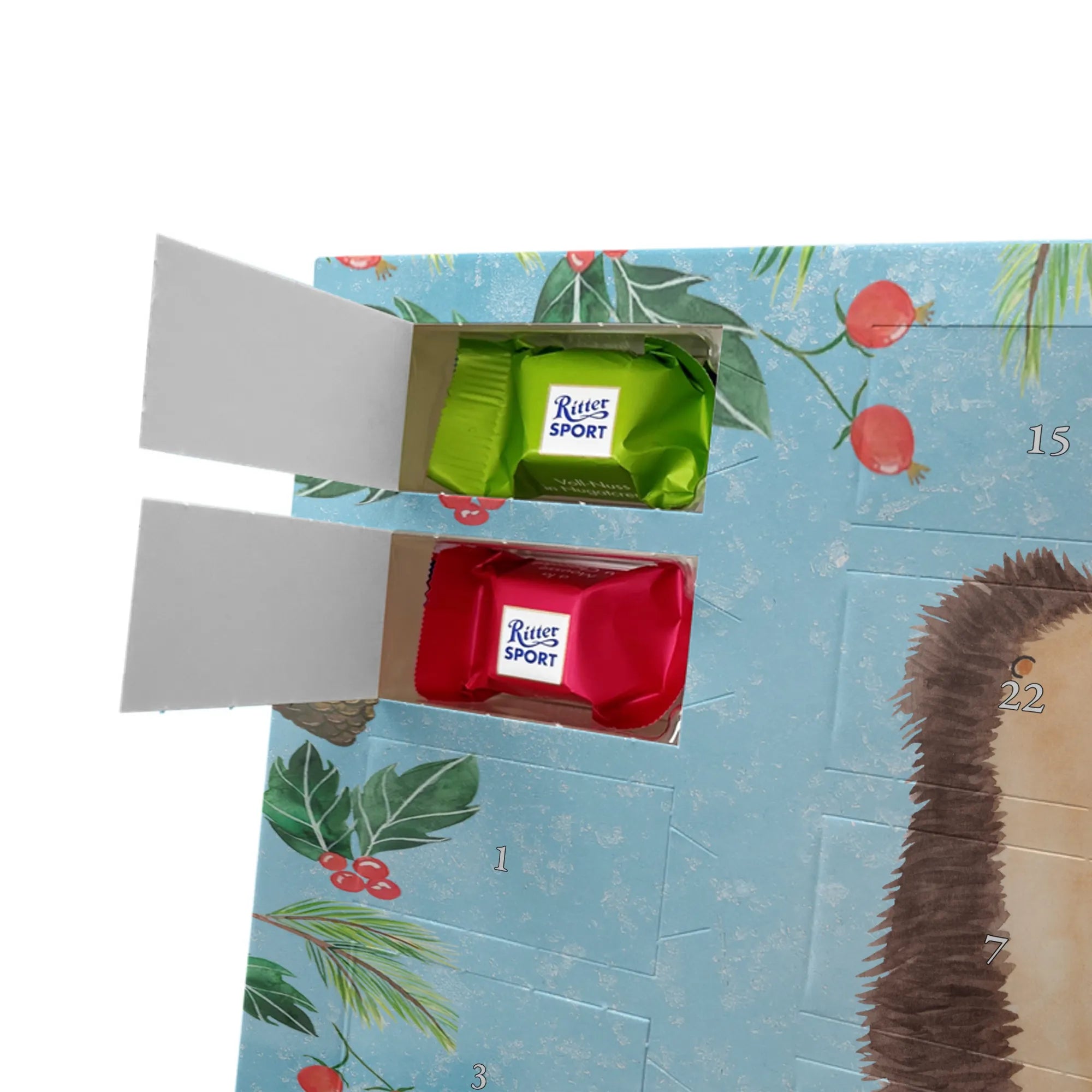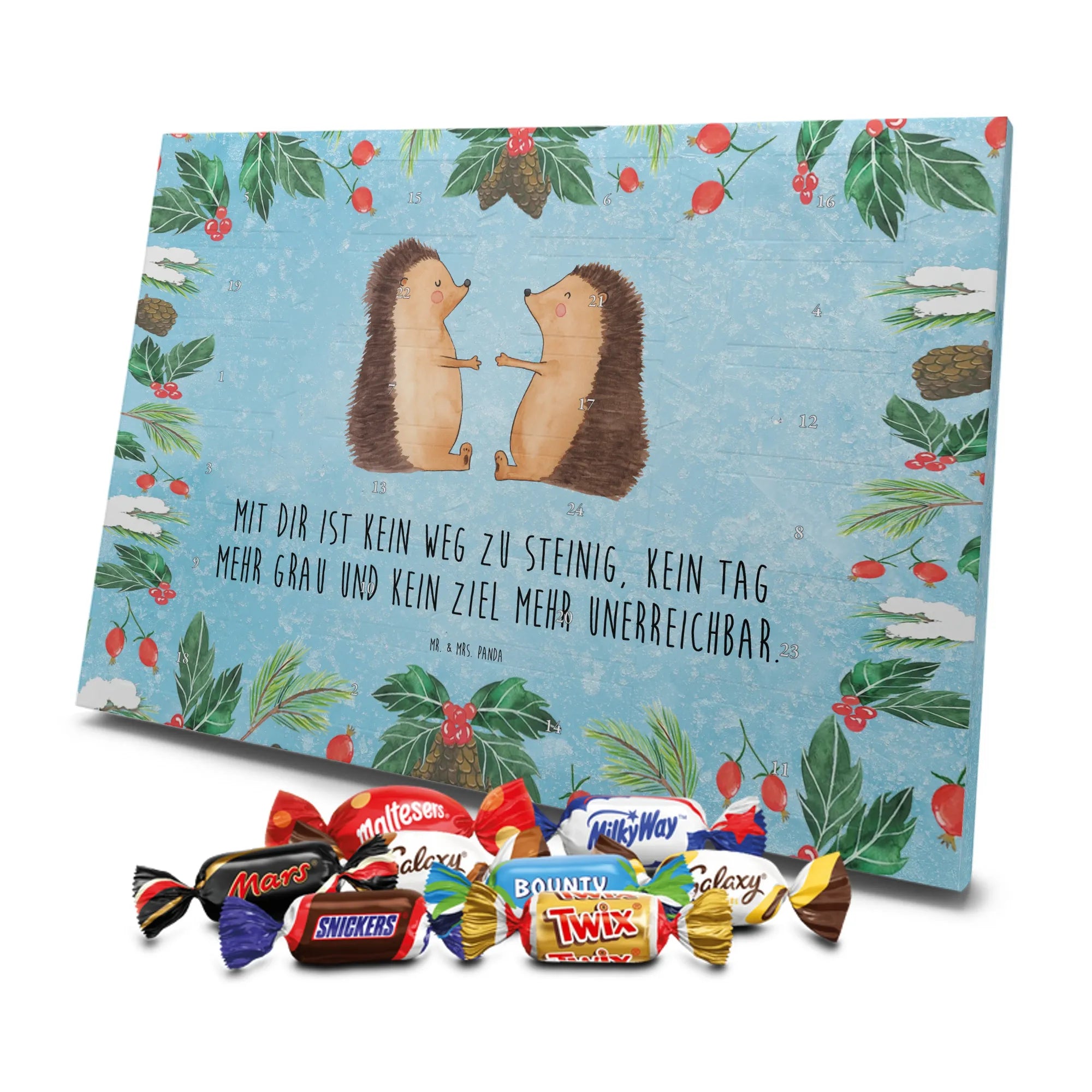 Chocolate advent calendar Hedgehogs in love - Classic - with saying - Ice Blue