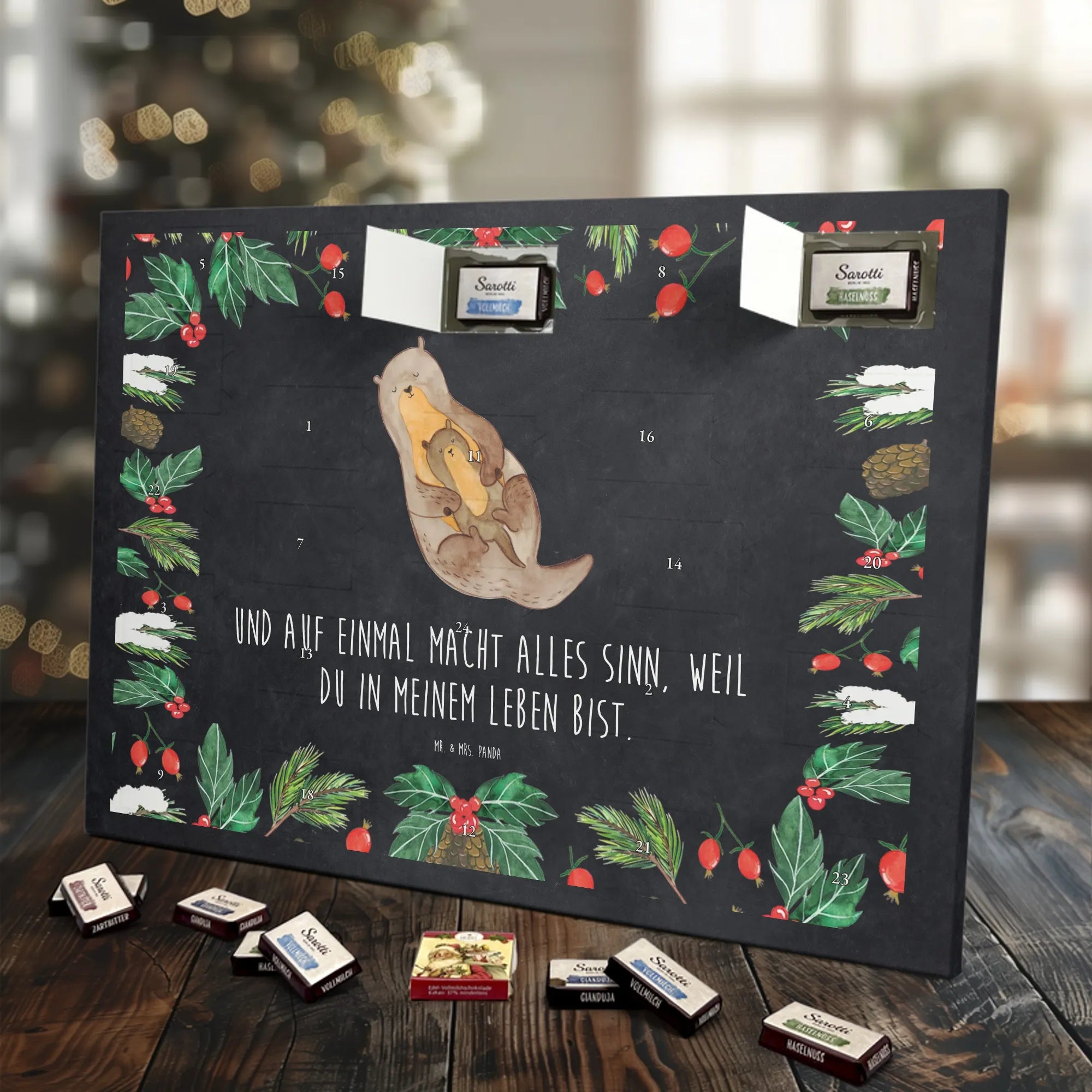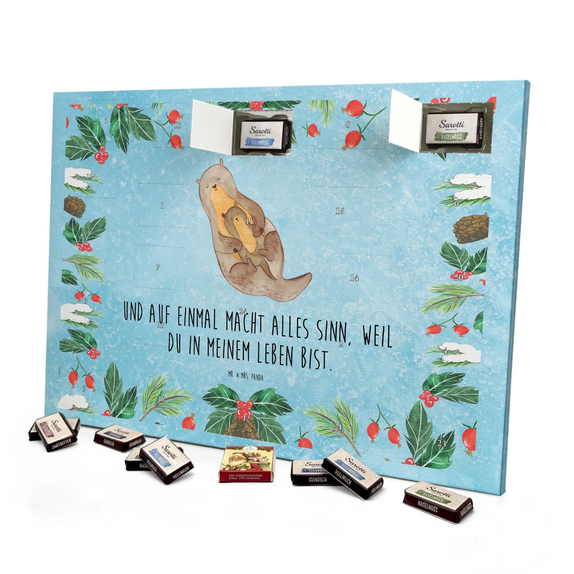 Chocolate advent calendar otter child - Classic - with saying - Ice Blue