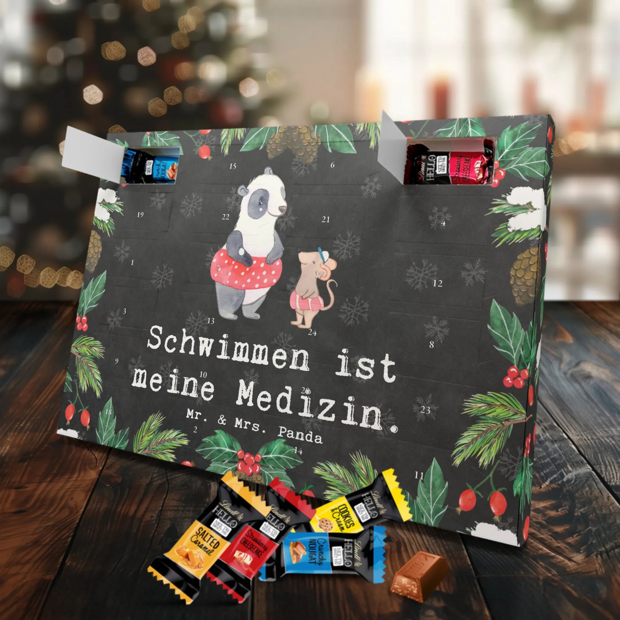 Schoko Adventskalender Otter „Schwimmen ist meine Medizin.“ – liebevoll gestaltet von Mr. & Mrs. Panda. Dieses zauberhafte Motiv aus der Hobby & Sport Kollektion zeigt einen fröhlichen Otter beim Schwimmen, handgezeichnet in Aquarell und kombiniert mit dem herzlichen Spruch „Schwimmen ist meine Medizin.“. Der eisblaue Hintergrund und die seidenmatte Veredelung machen den Adventskalender zu einem echten Blickfang in der Vorweihnachtszeit.