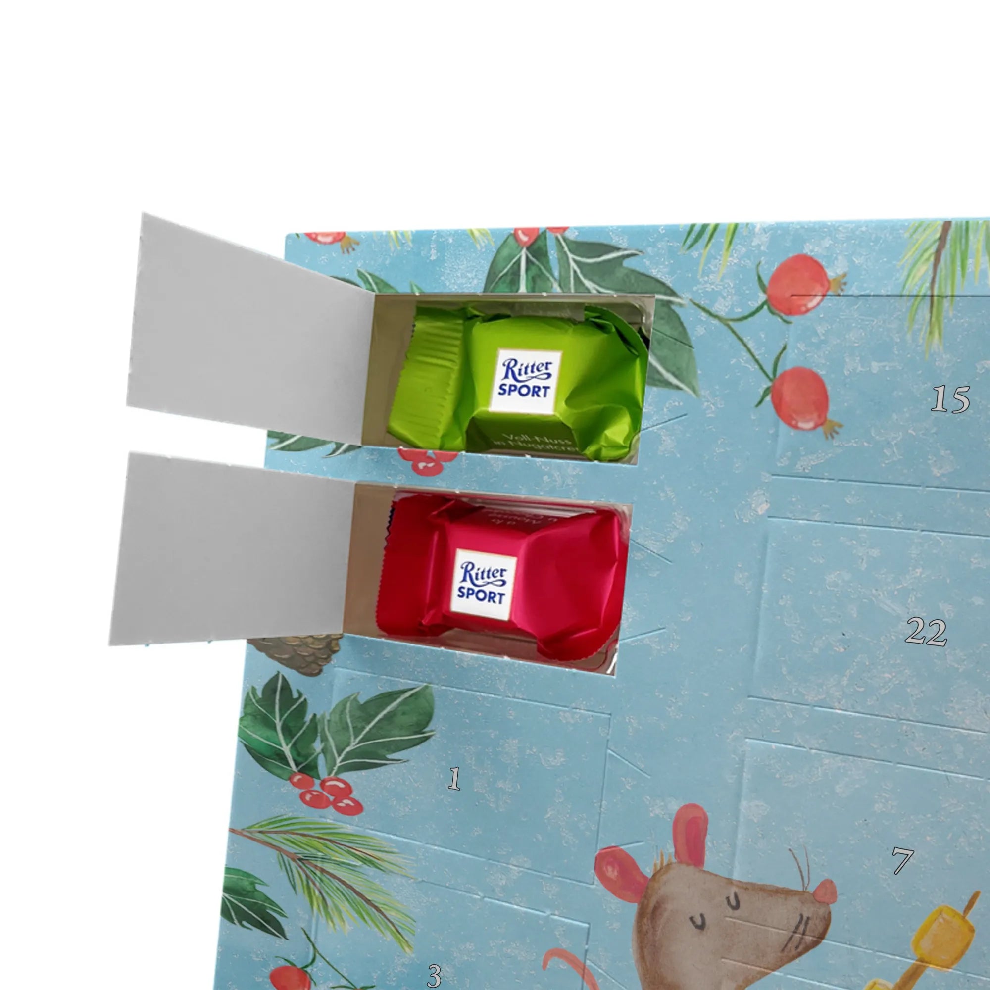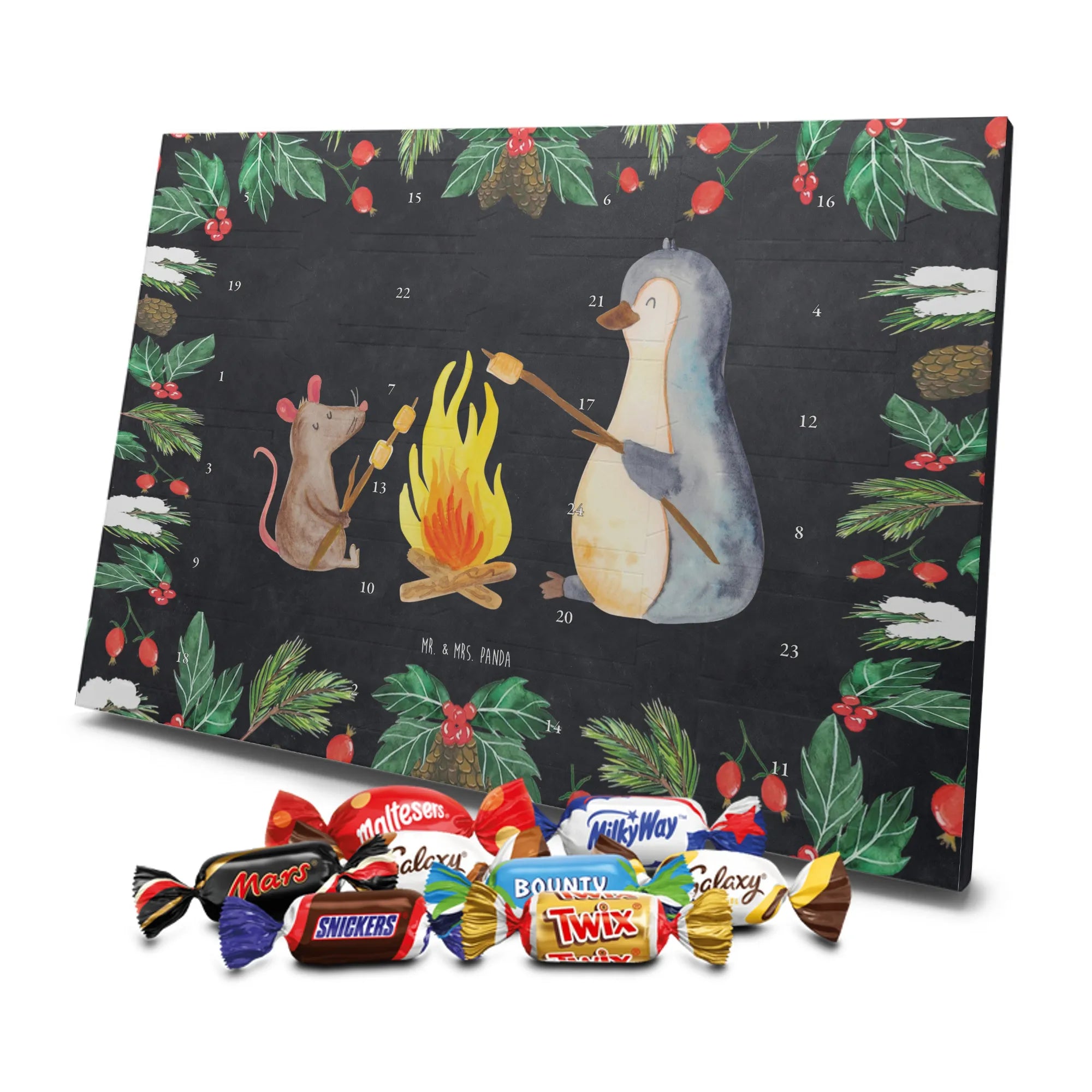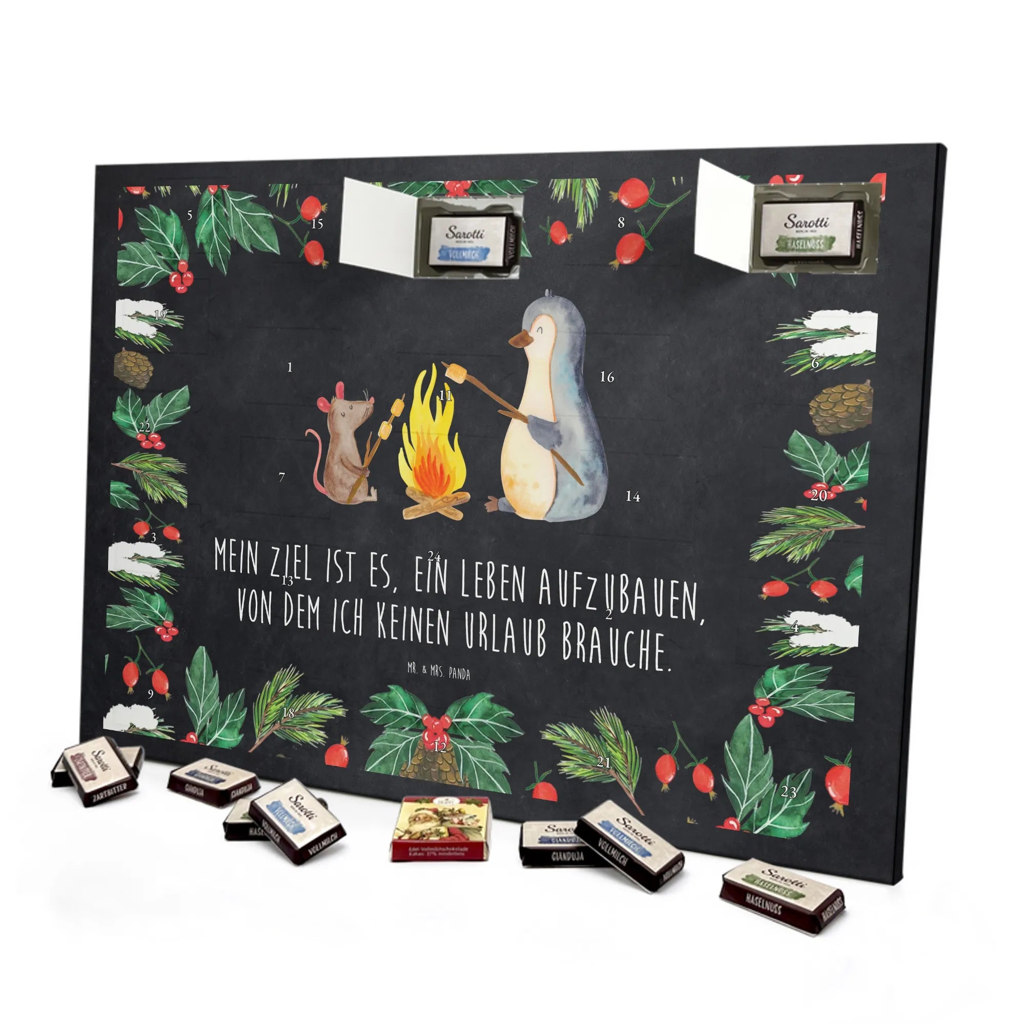 Chocolate advent calendar Penguin campfire - Classic - with saying - Ice Blue