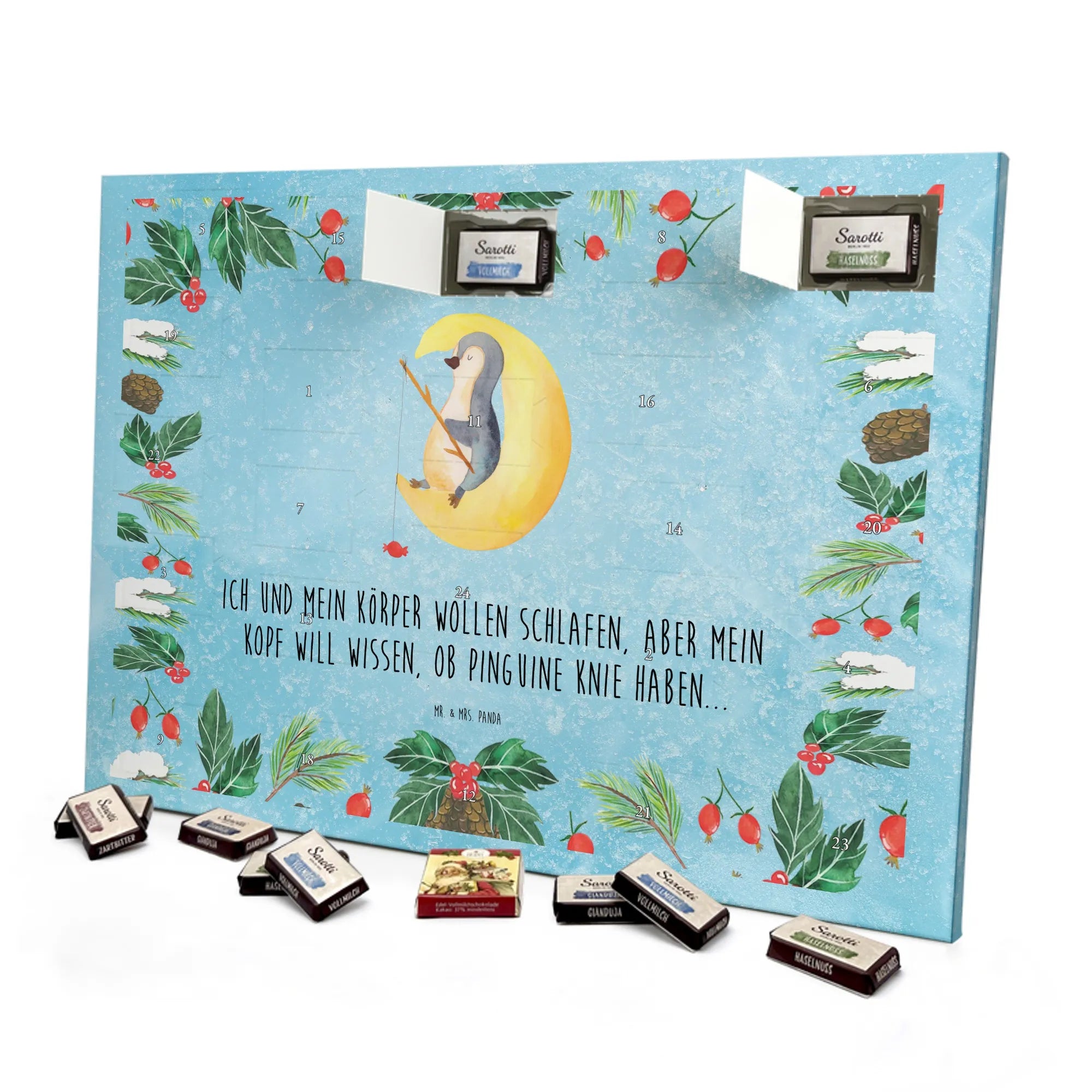 Chocolate advent calendar Penguin moon - Classic - with saying - Ice Blue