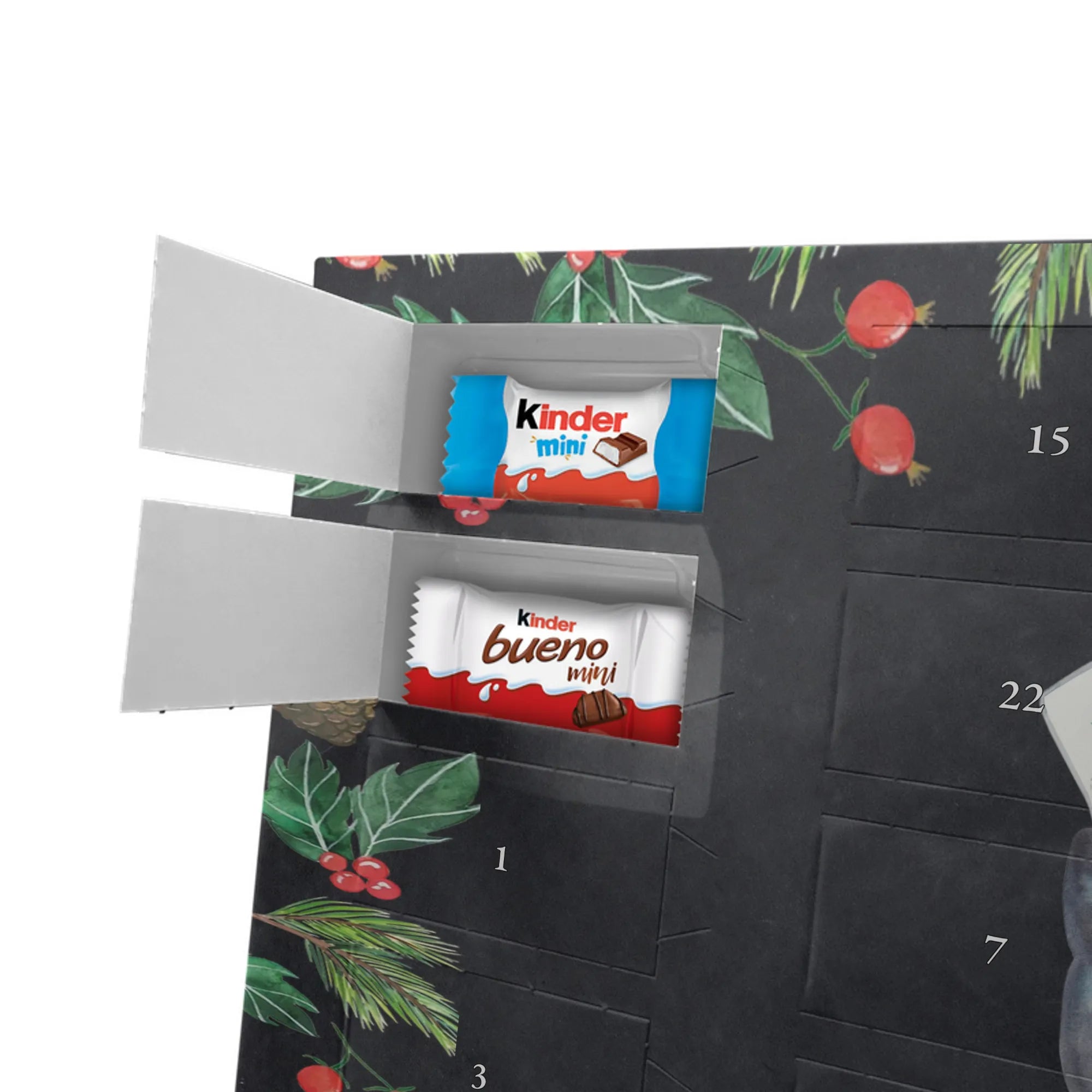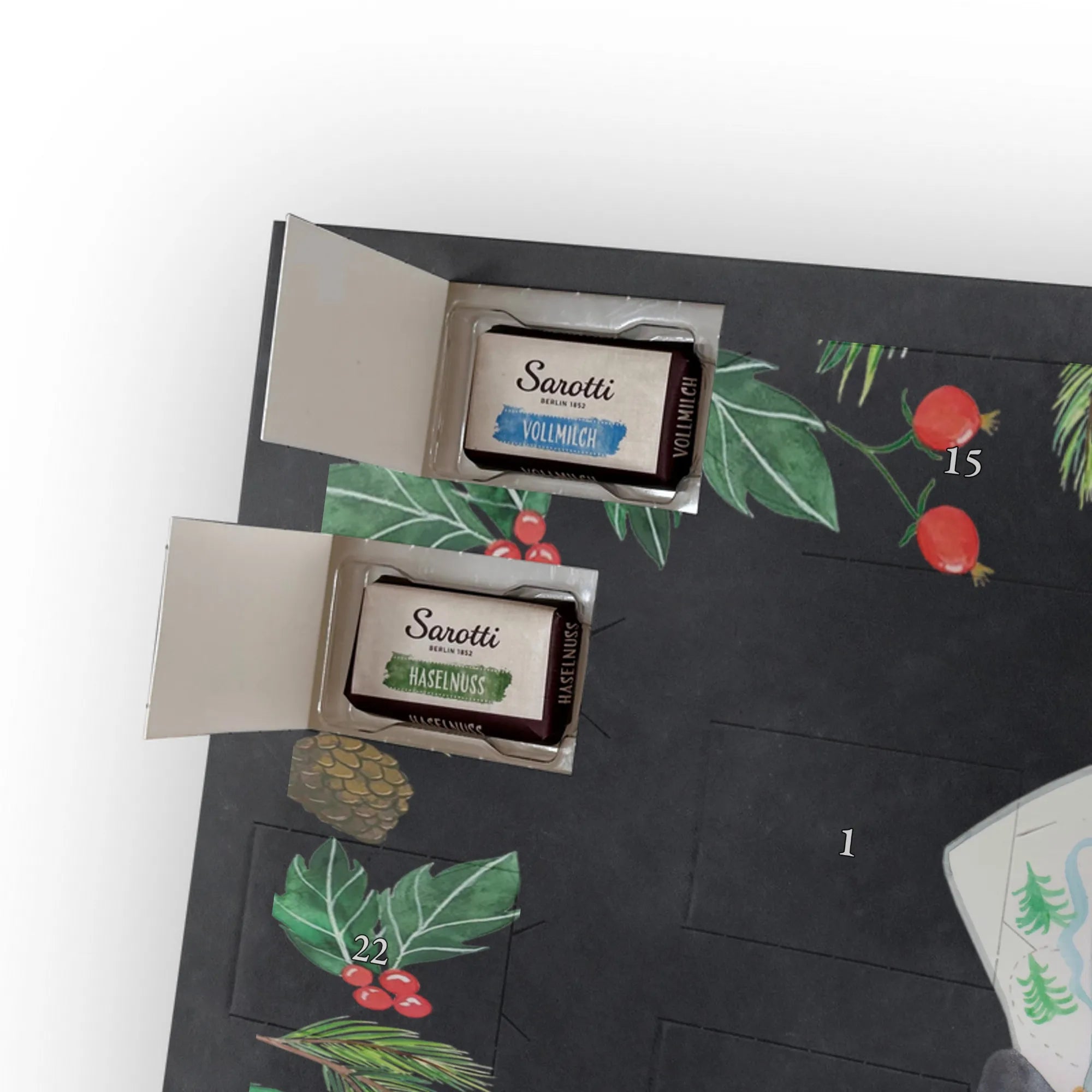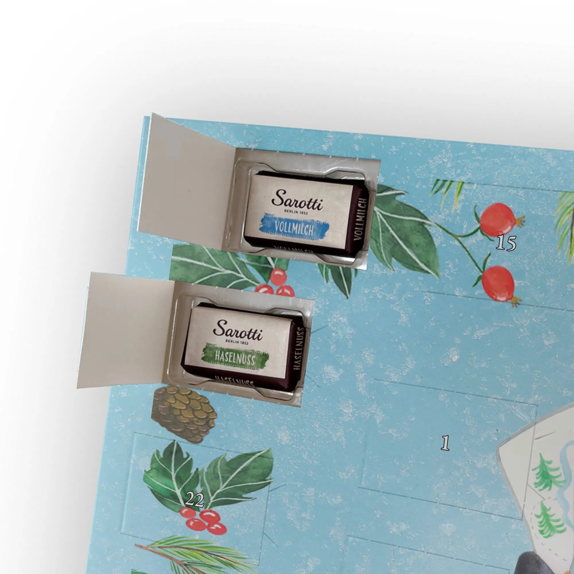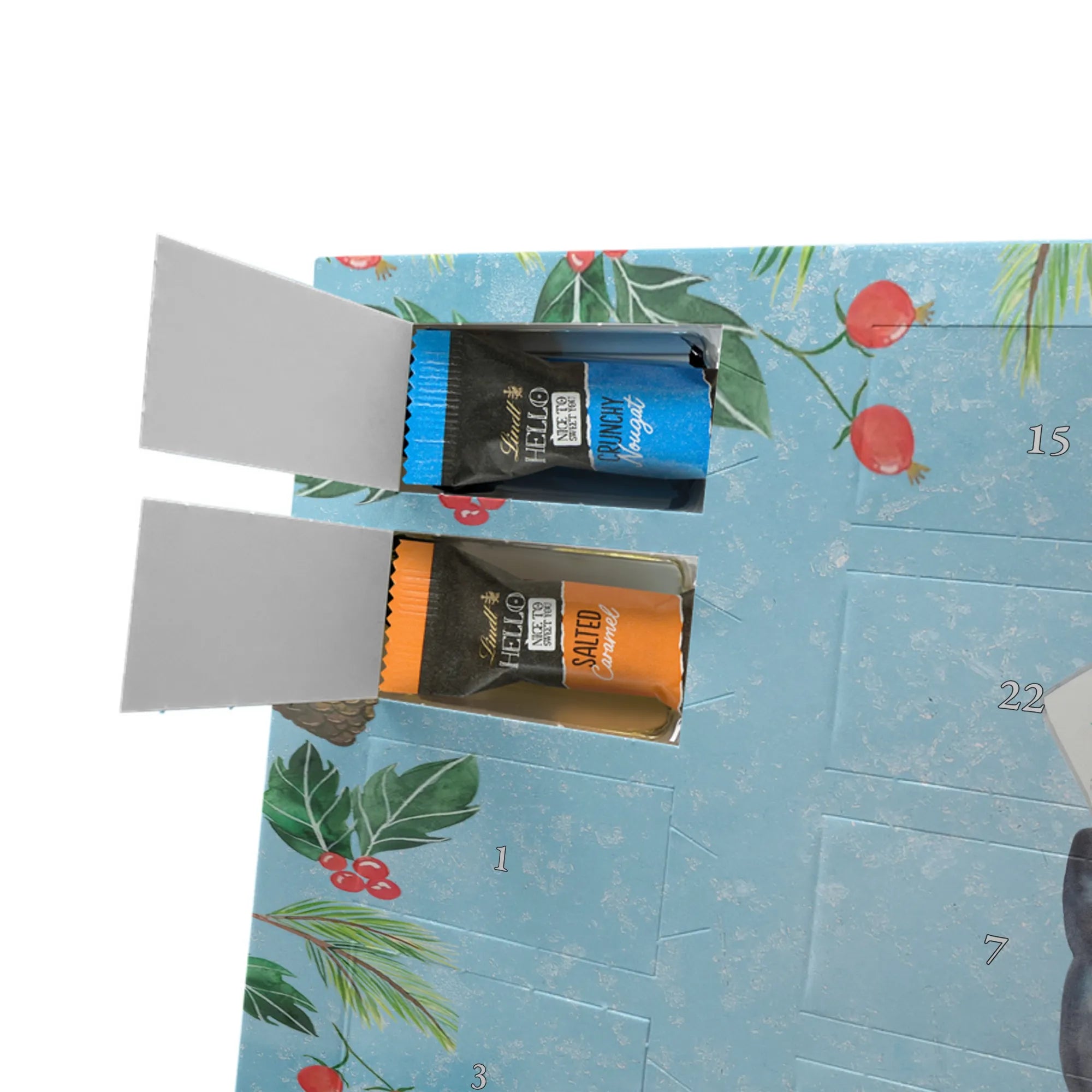 This handy advent calendar 2020 from Mr. & Mrs. Panda is really something very special - it is decorated with wonderful motifs and has the size 24m x 18cm x 2,5cm. It is filled with 24 chocolate balls and costs 14,90€ - the calendar can be hung up or set up using the set-up function on the back. Please note that we also have a larger calendar with delicious chocolate from Hello Lindt.