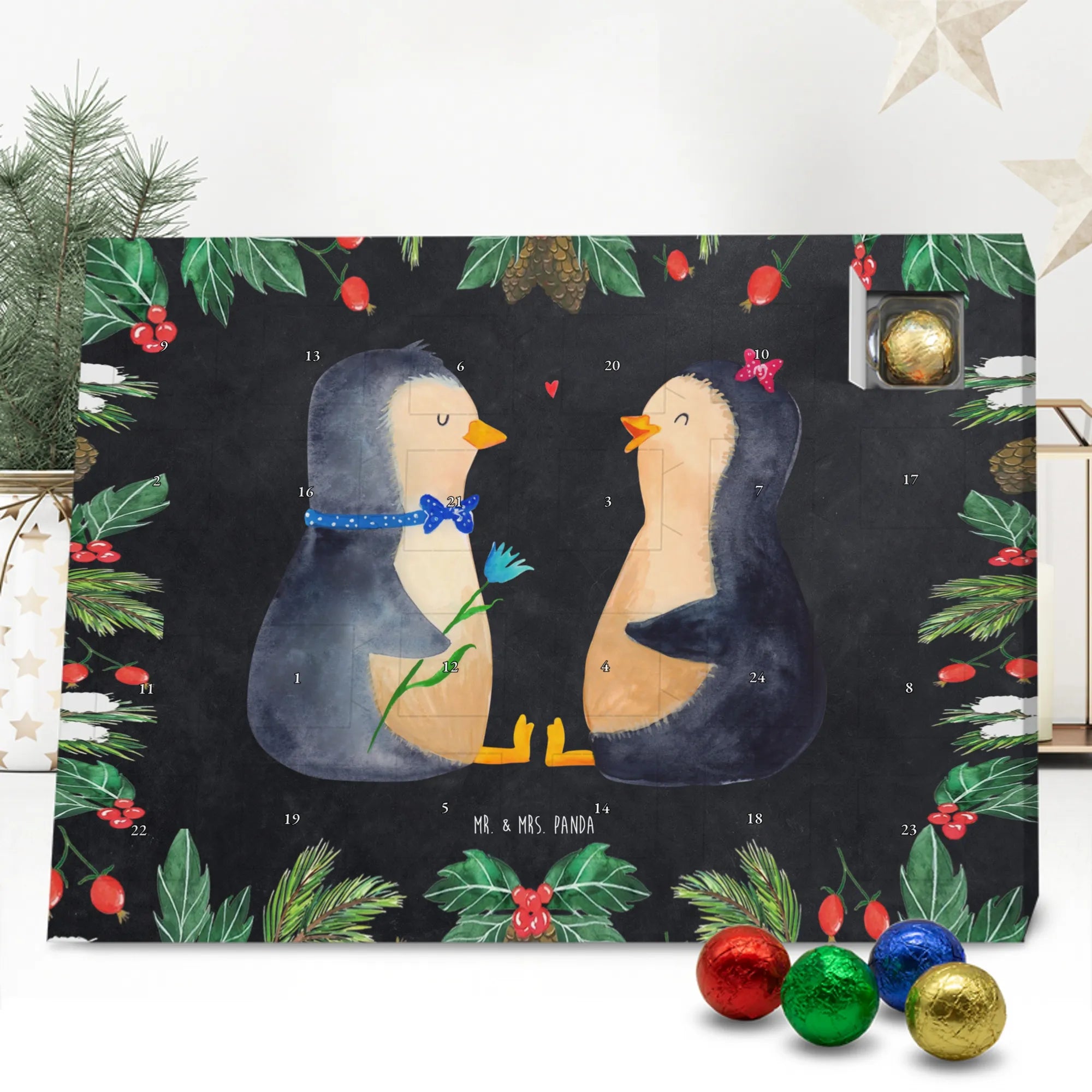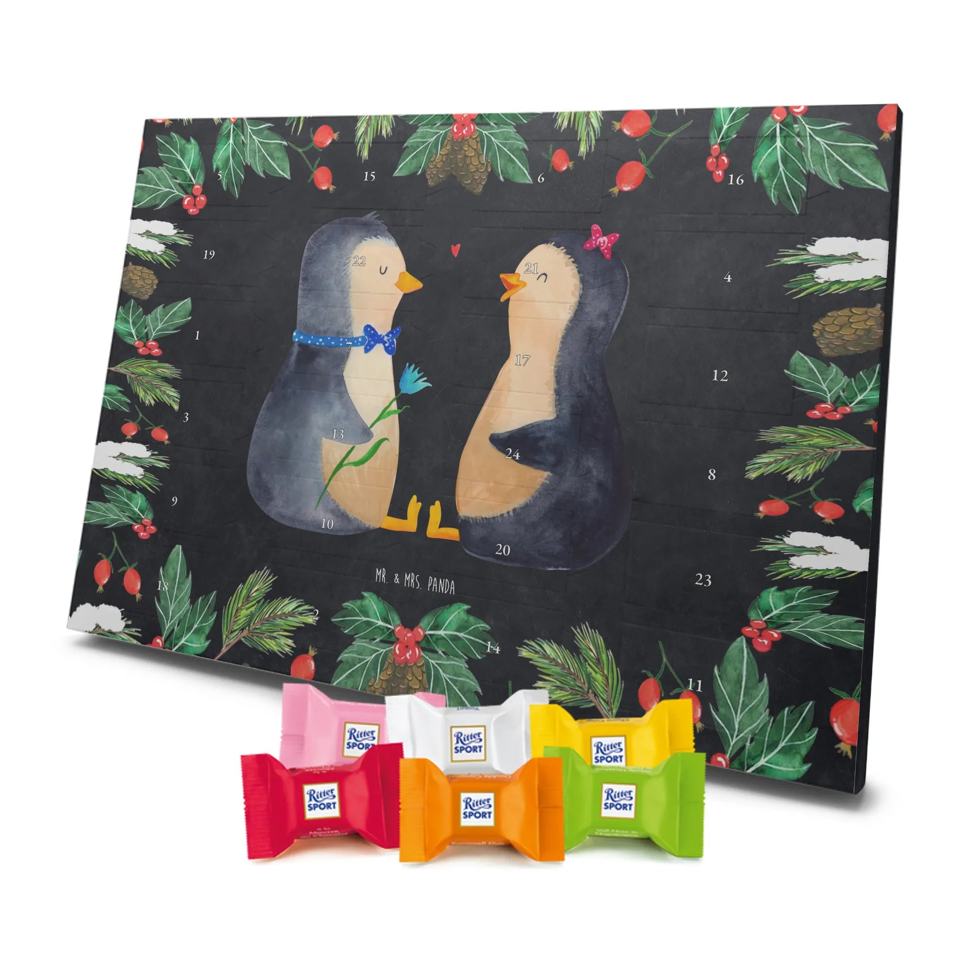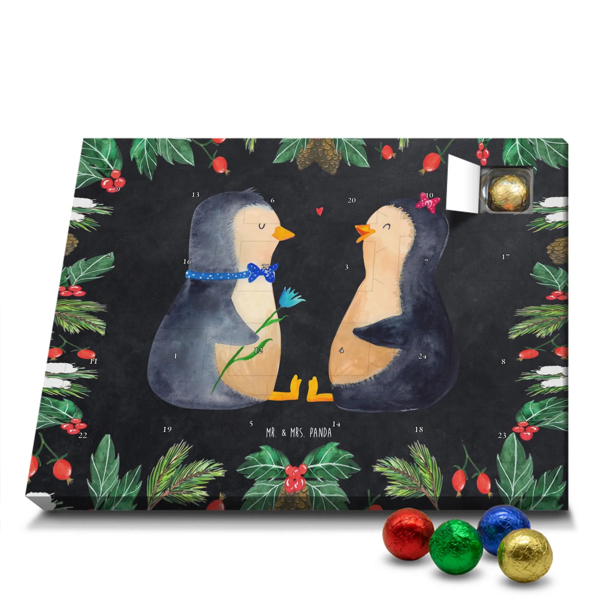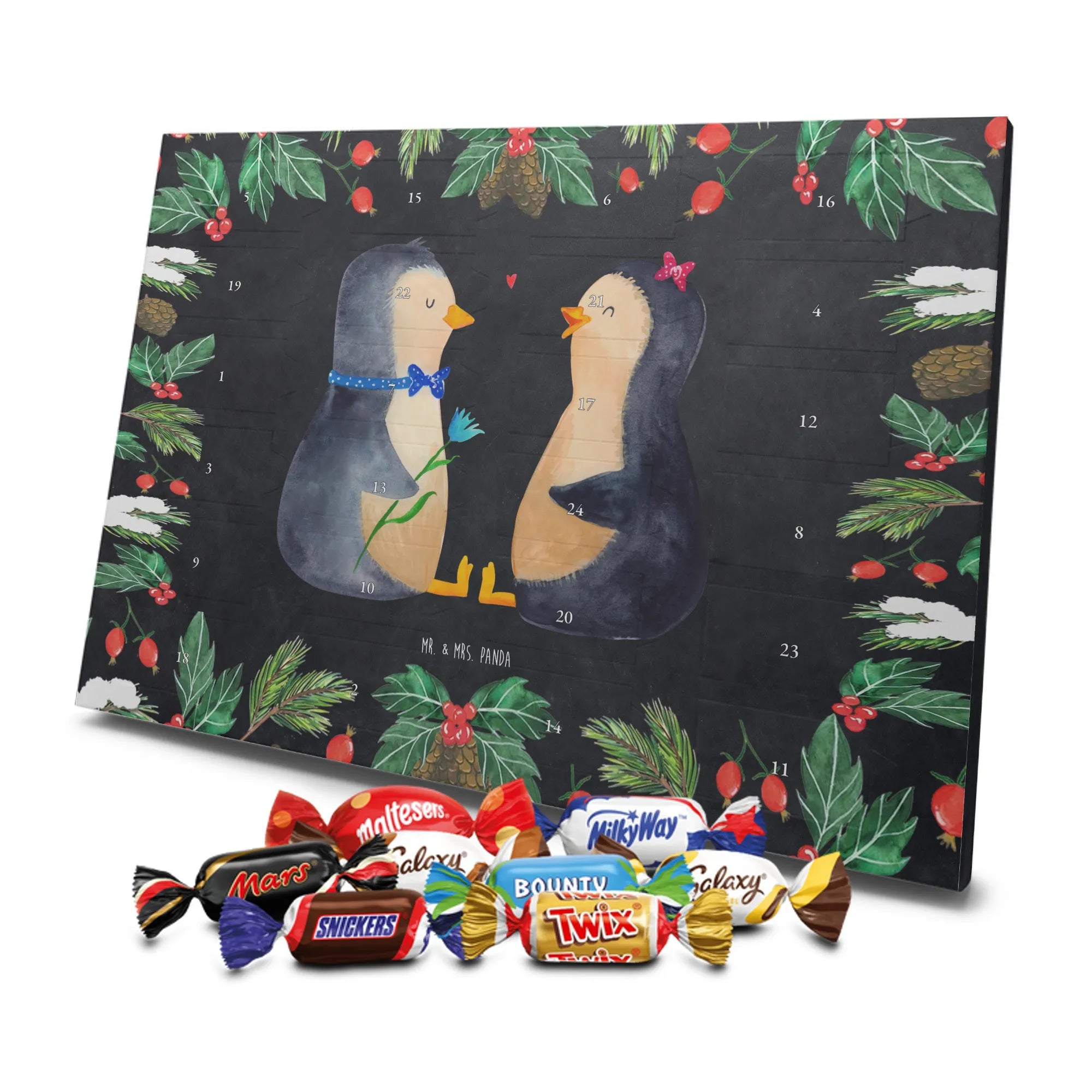 Chocolate advent calendar Penguin pair - Classic - with saying - Chalkboard