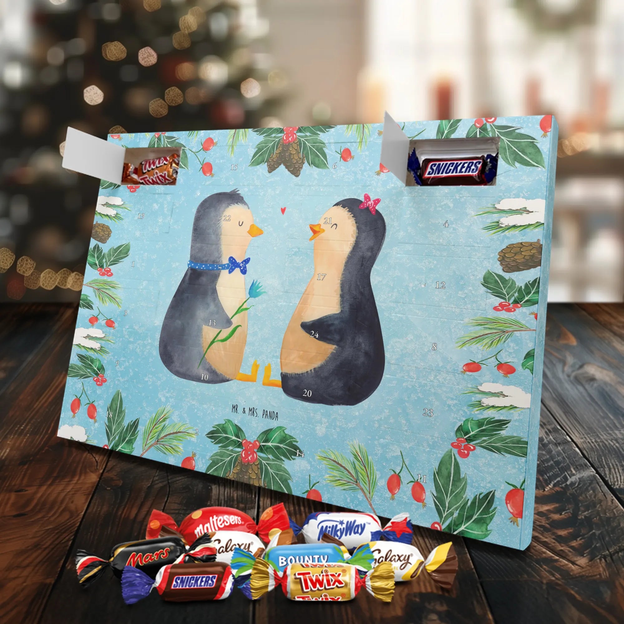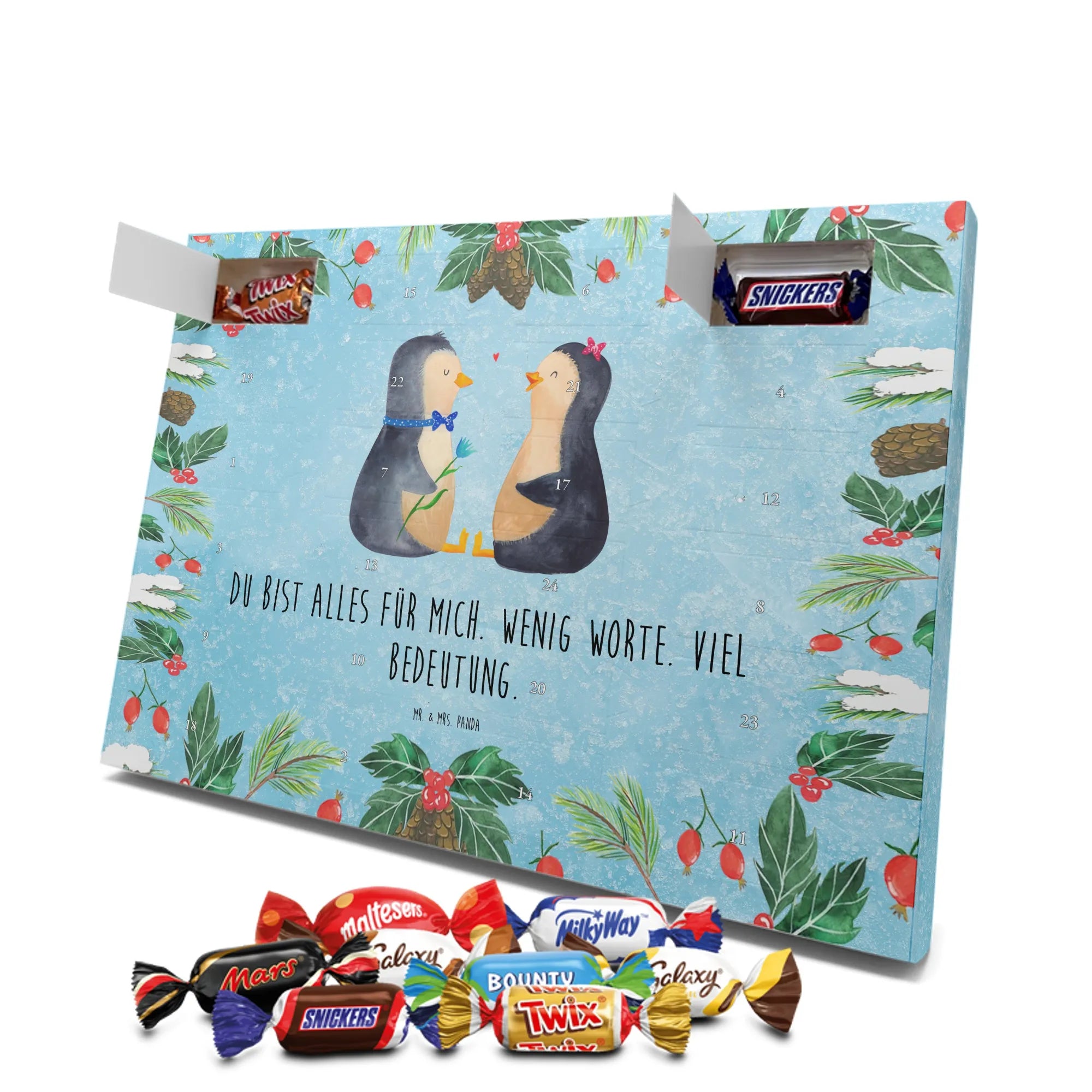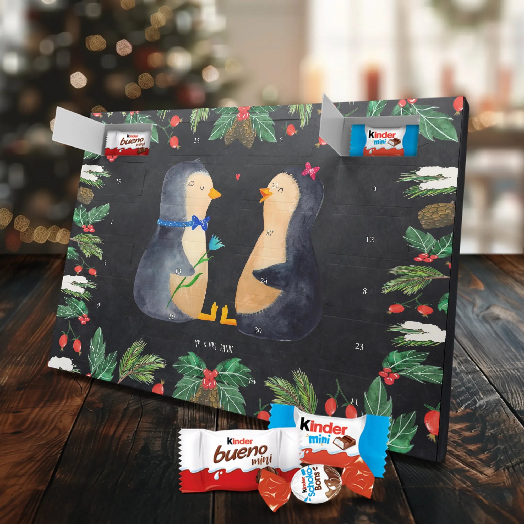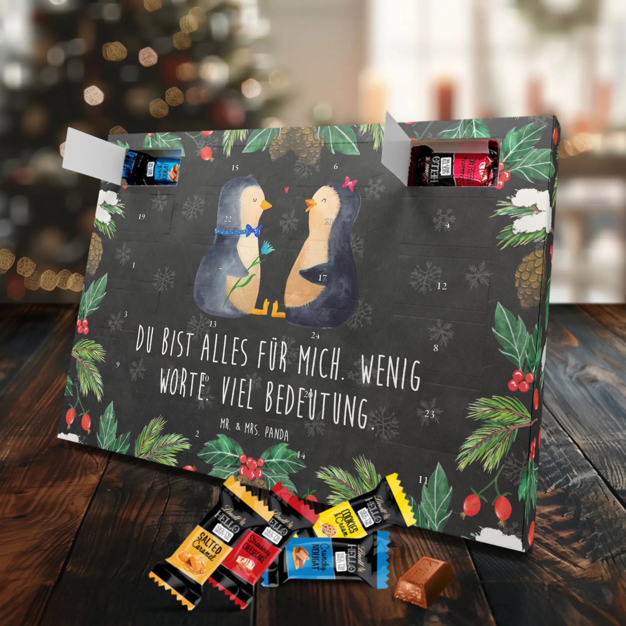 Chocolate advent calendar Penguin pair - Classic - with saying - Chalkboard