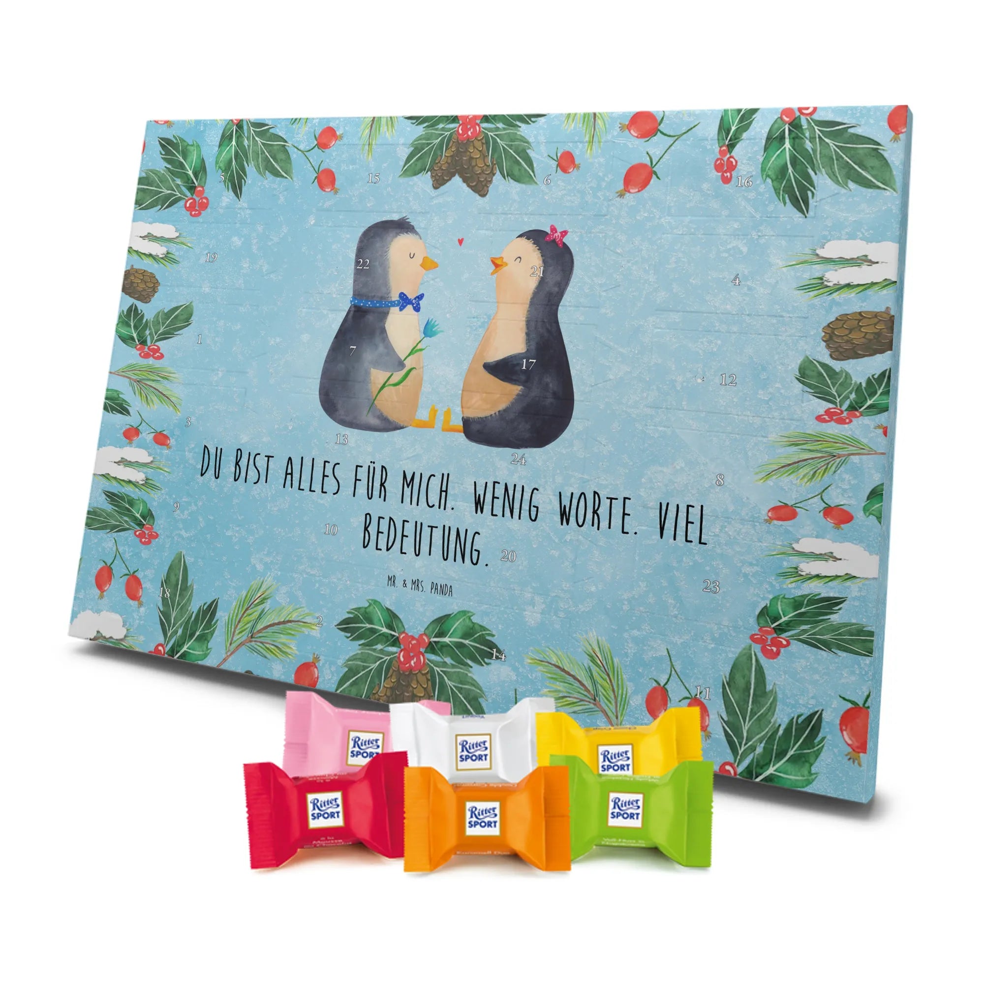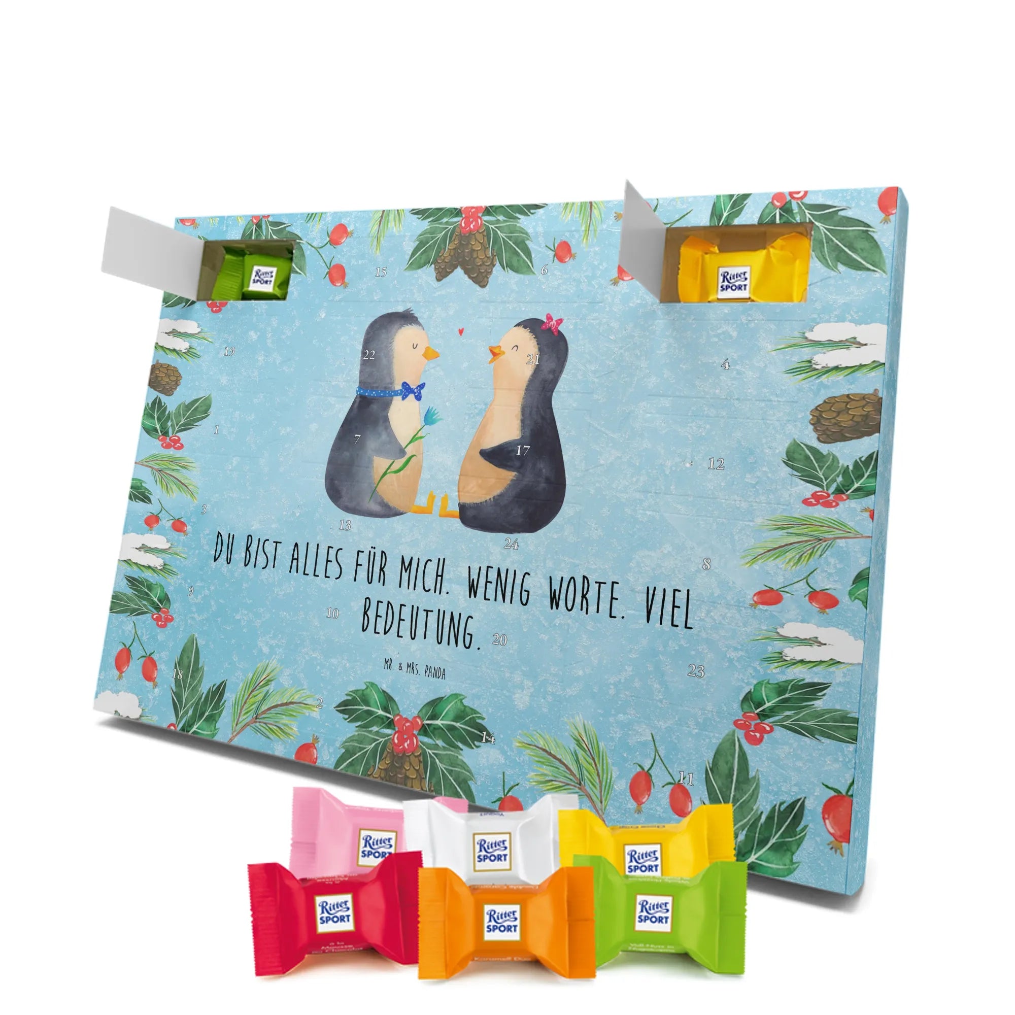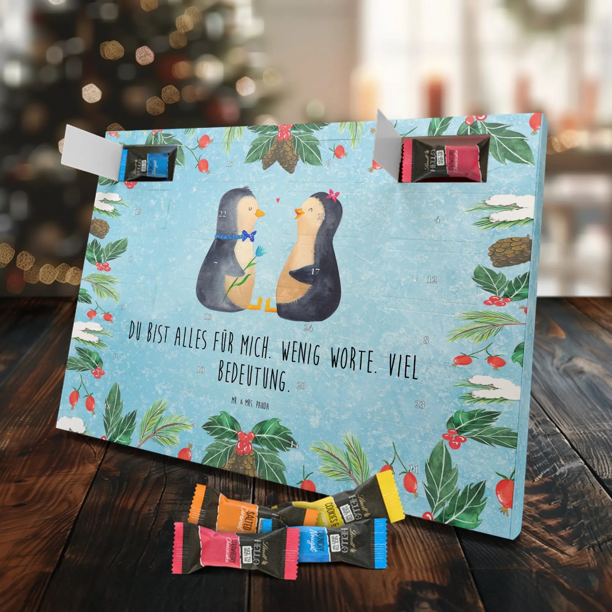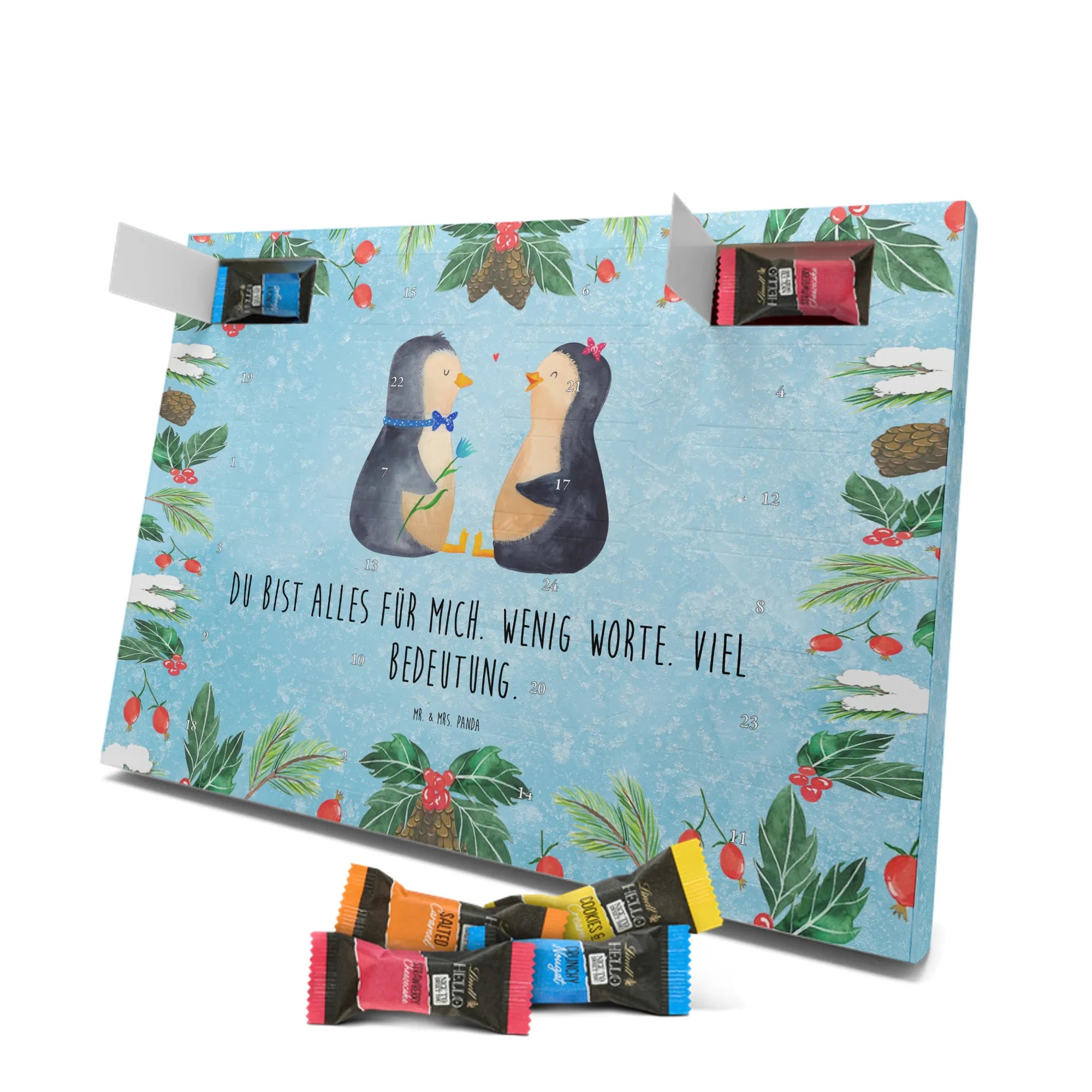 Chocolate advent calendar Penguin pair - Classic - with saying - Chalkboard