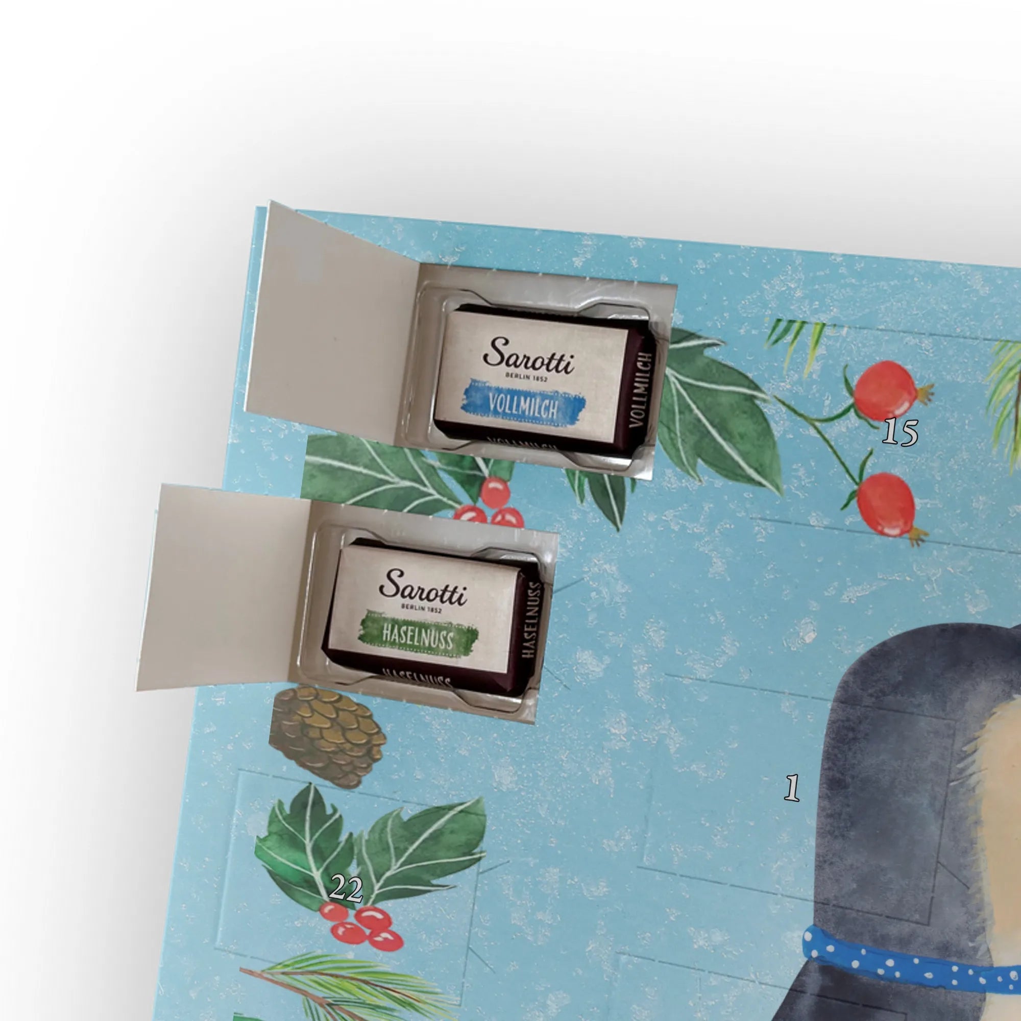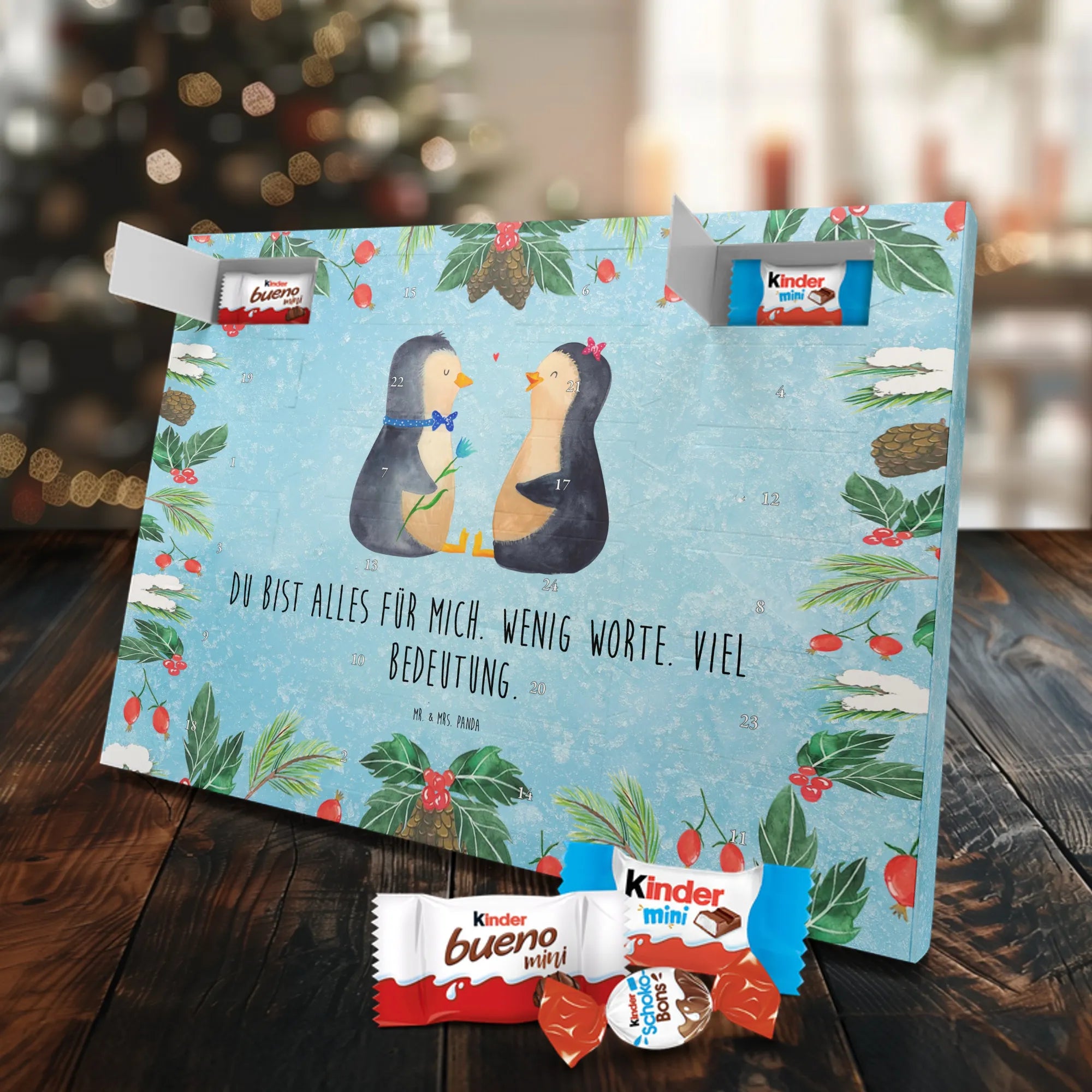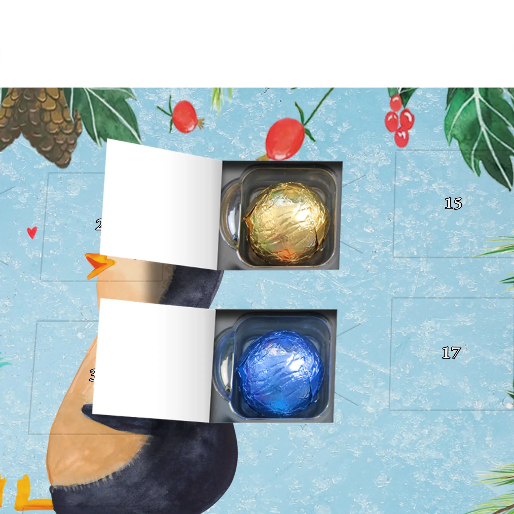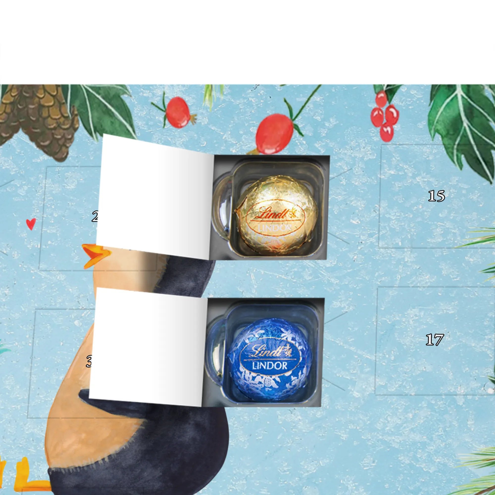 Chocolate advent calendar Penguin pair - Classic - with saying - Chalkboard