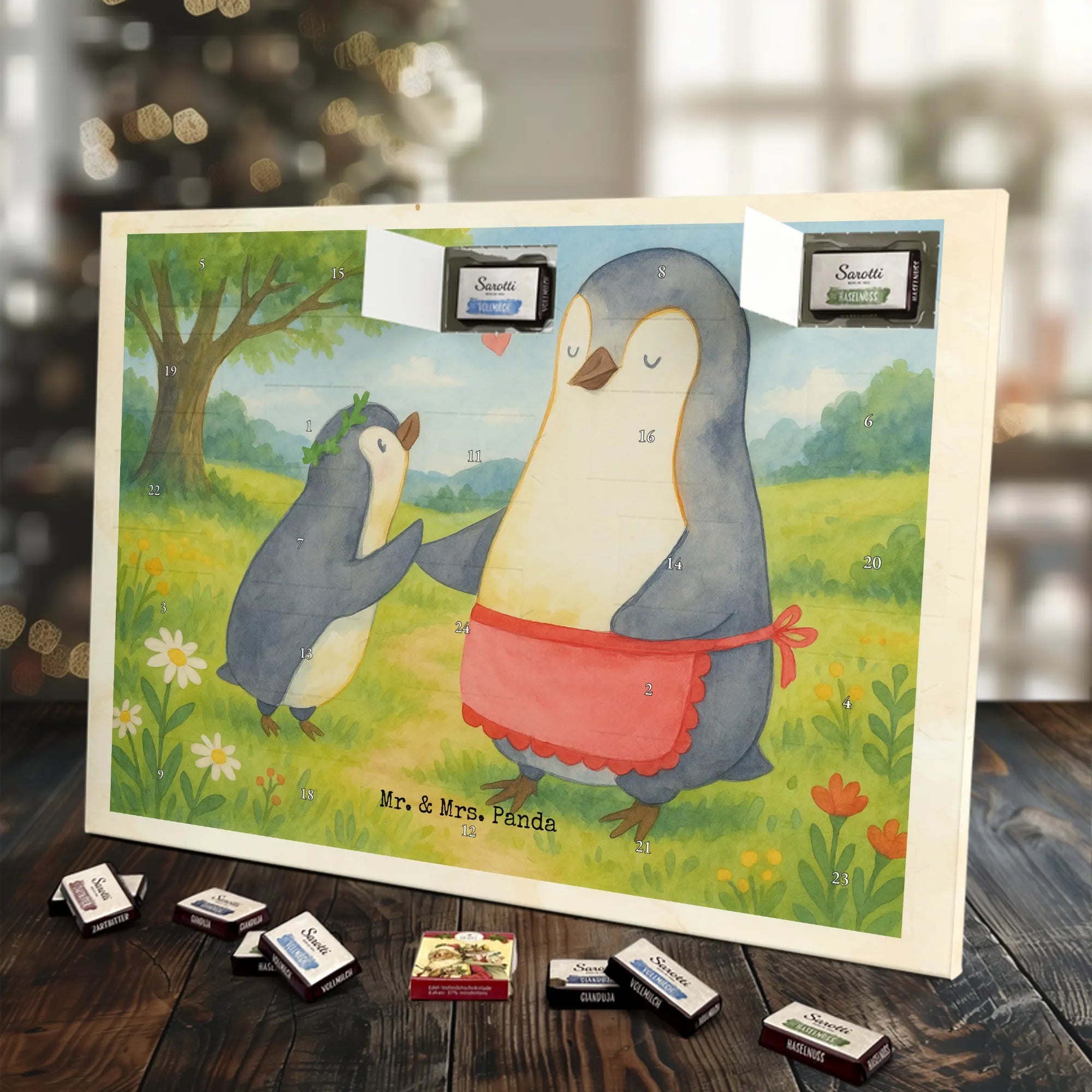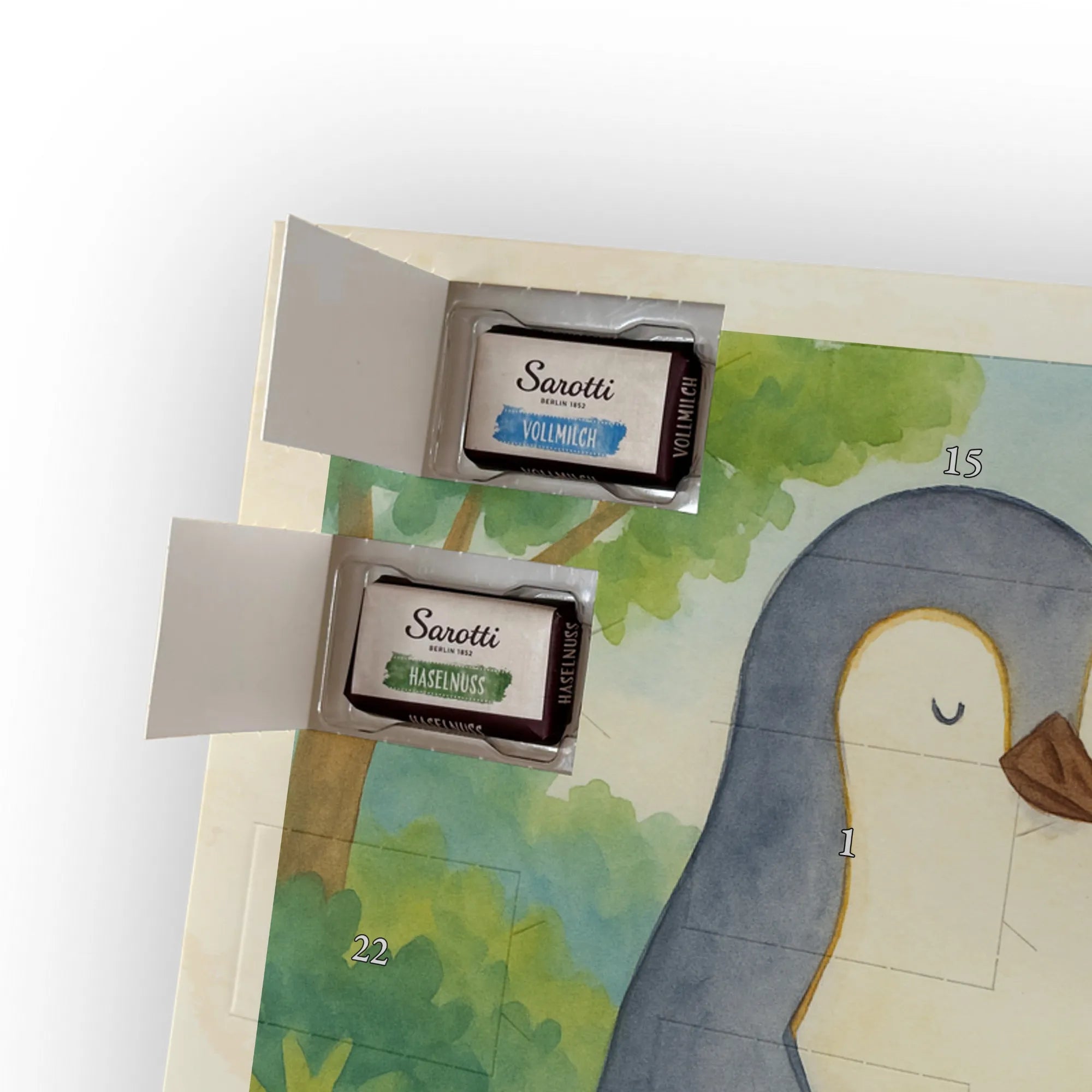 Chocolate advent calendar Penguin with child Design - Classic - with saying
