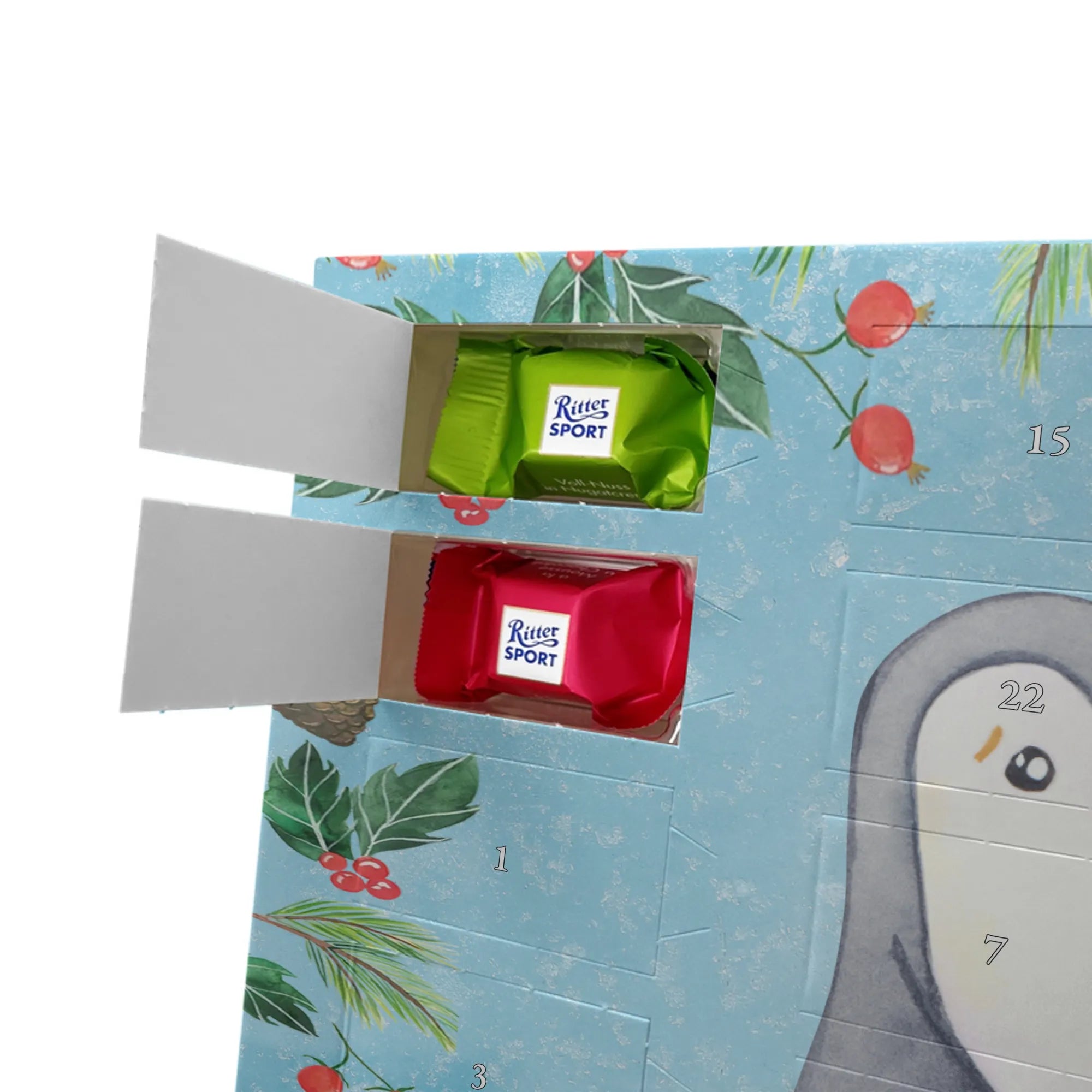 Chocolate advent calendar penguins console - Classic - with saying - Ice Blue