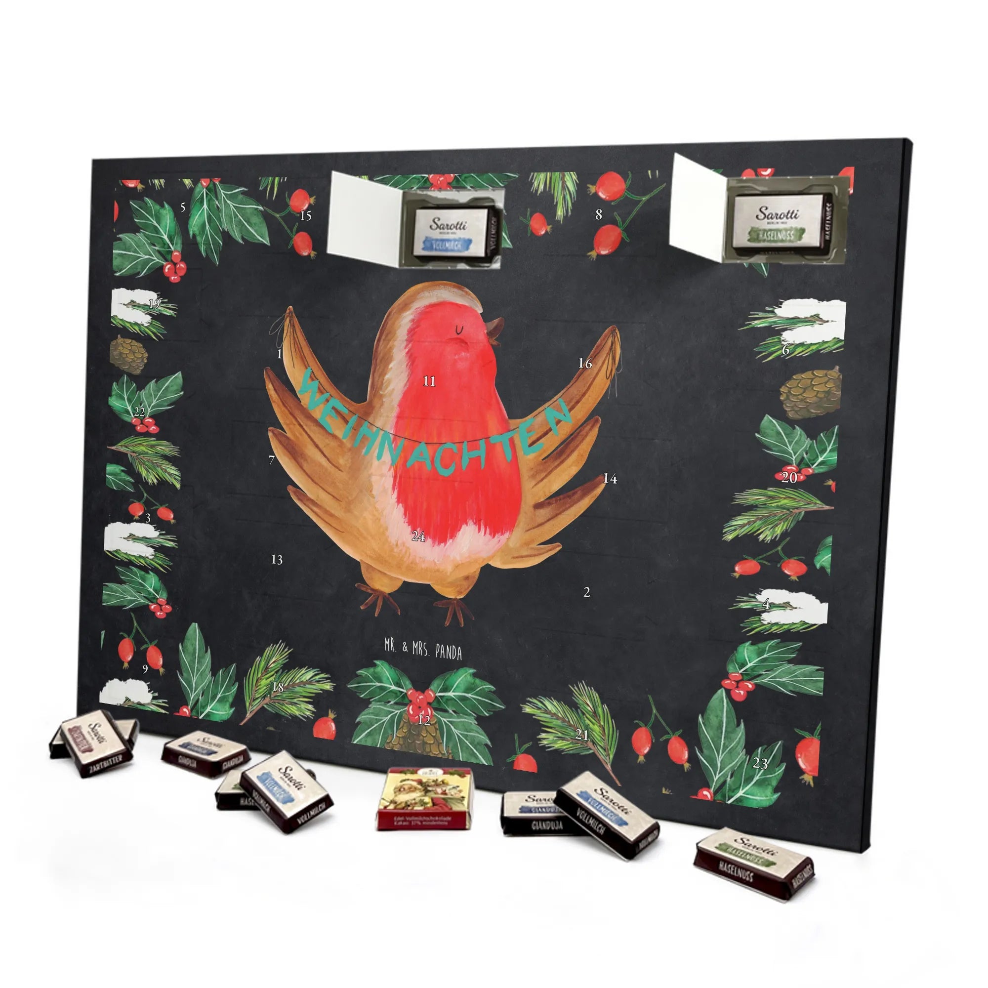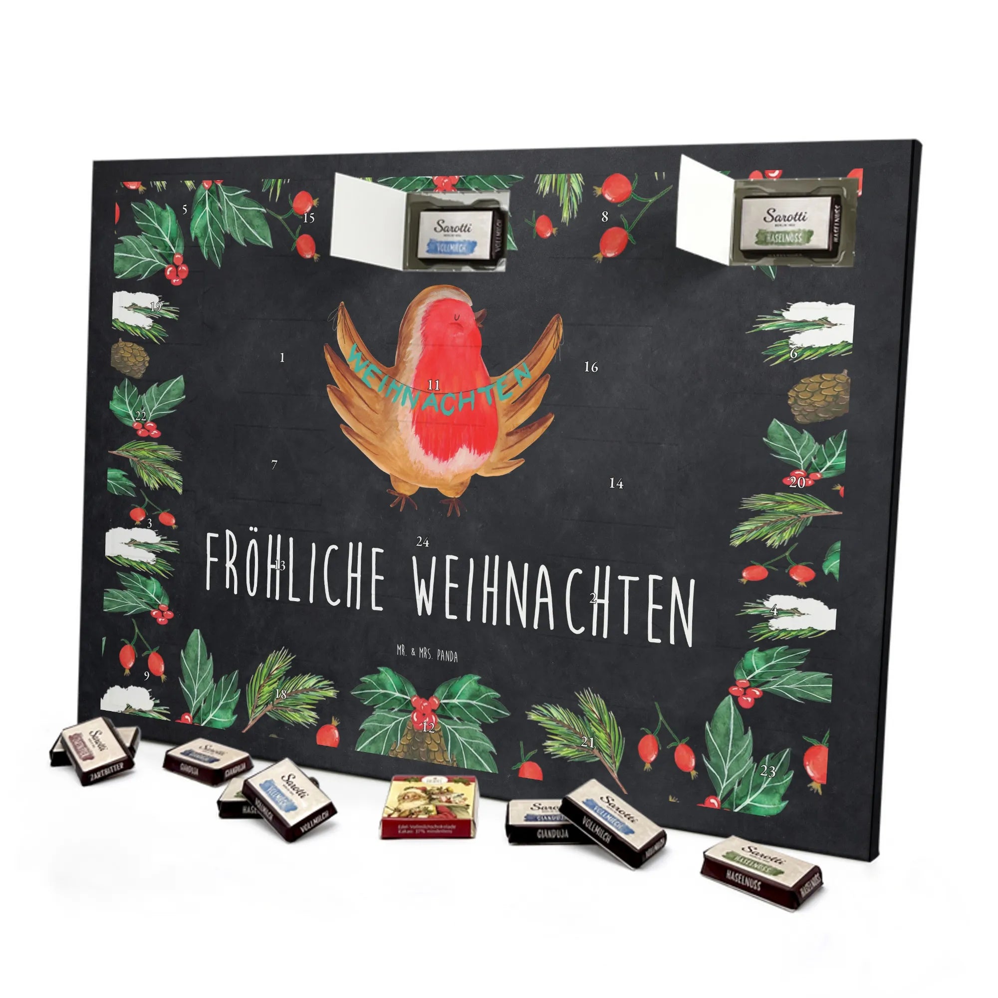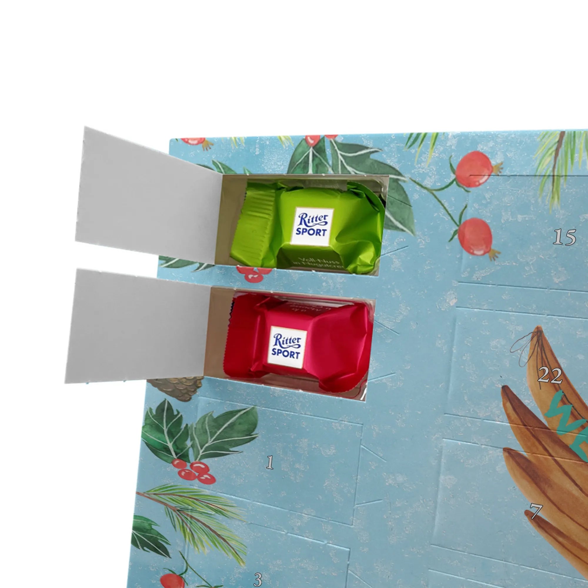 Chocolate advent calendar robin Christmas - Classic - with saying - Ice Blue