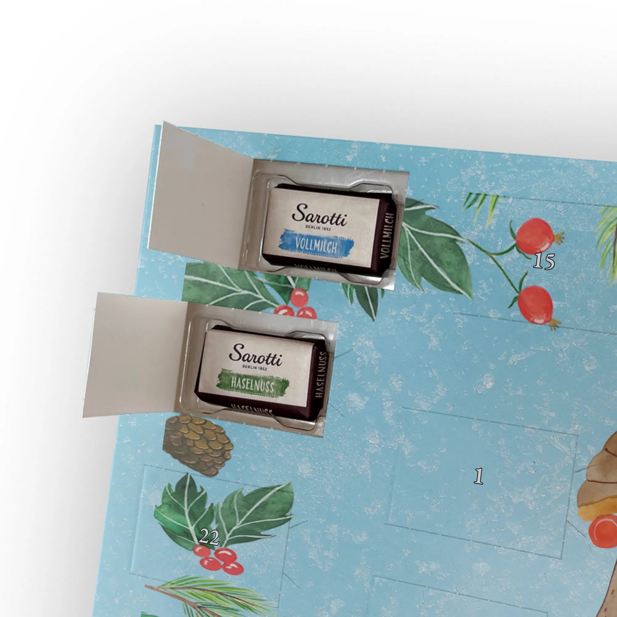 Chocolate advent calendar tortoise Mouse - Classic - with saying - Ice Blue
