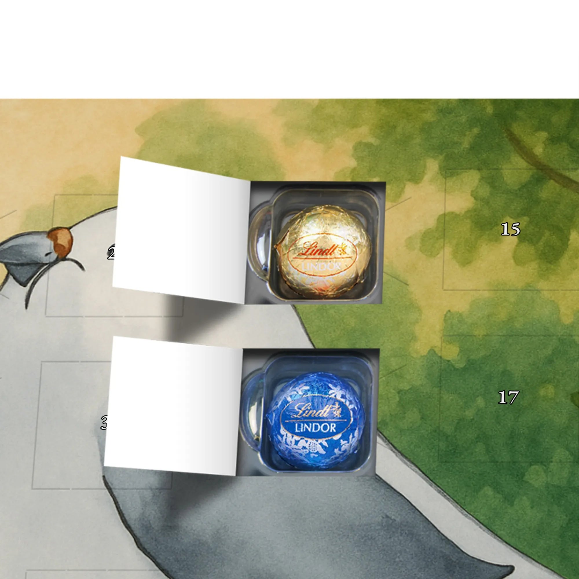 Gefüllt mit 24 einzeln verpackten Markenschokoladen-Kugeln von Lindt LINDOR in den Sorten Vollmilch, Feinherb und Weiße Schokolade. Jeder Tag im Advent wird so zu einem kleinen Geschmackserlebnis und zu einem gemeinsamen Moment der Zweisamkeit.