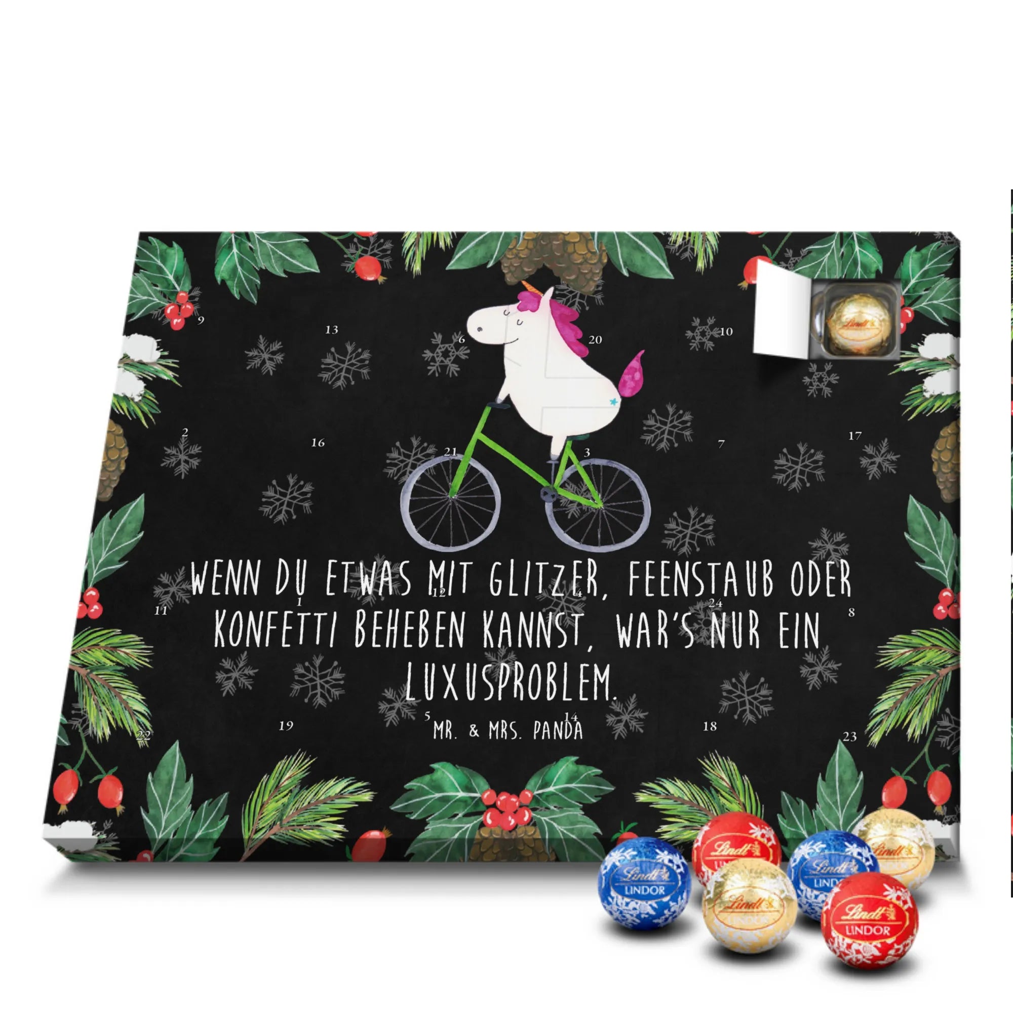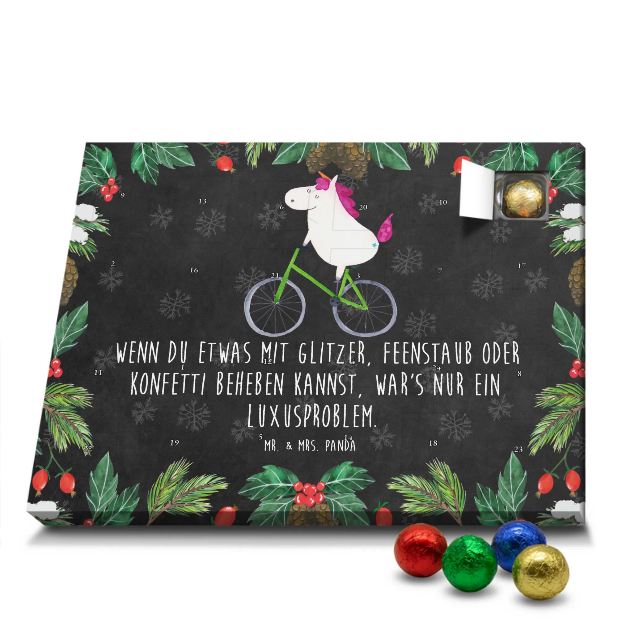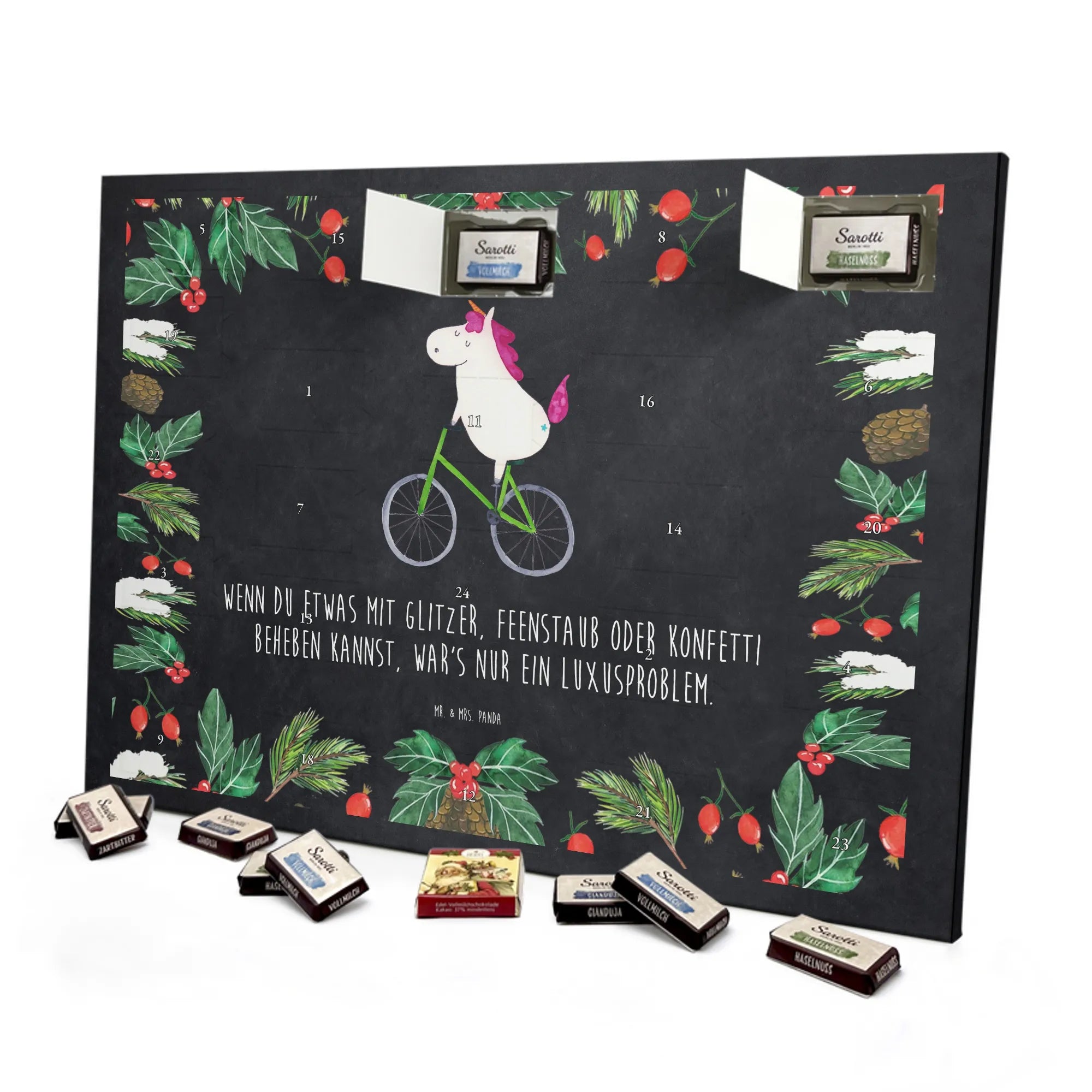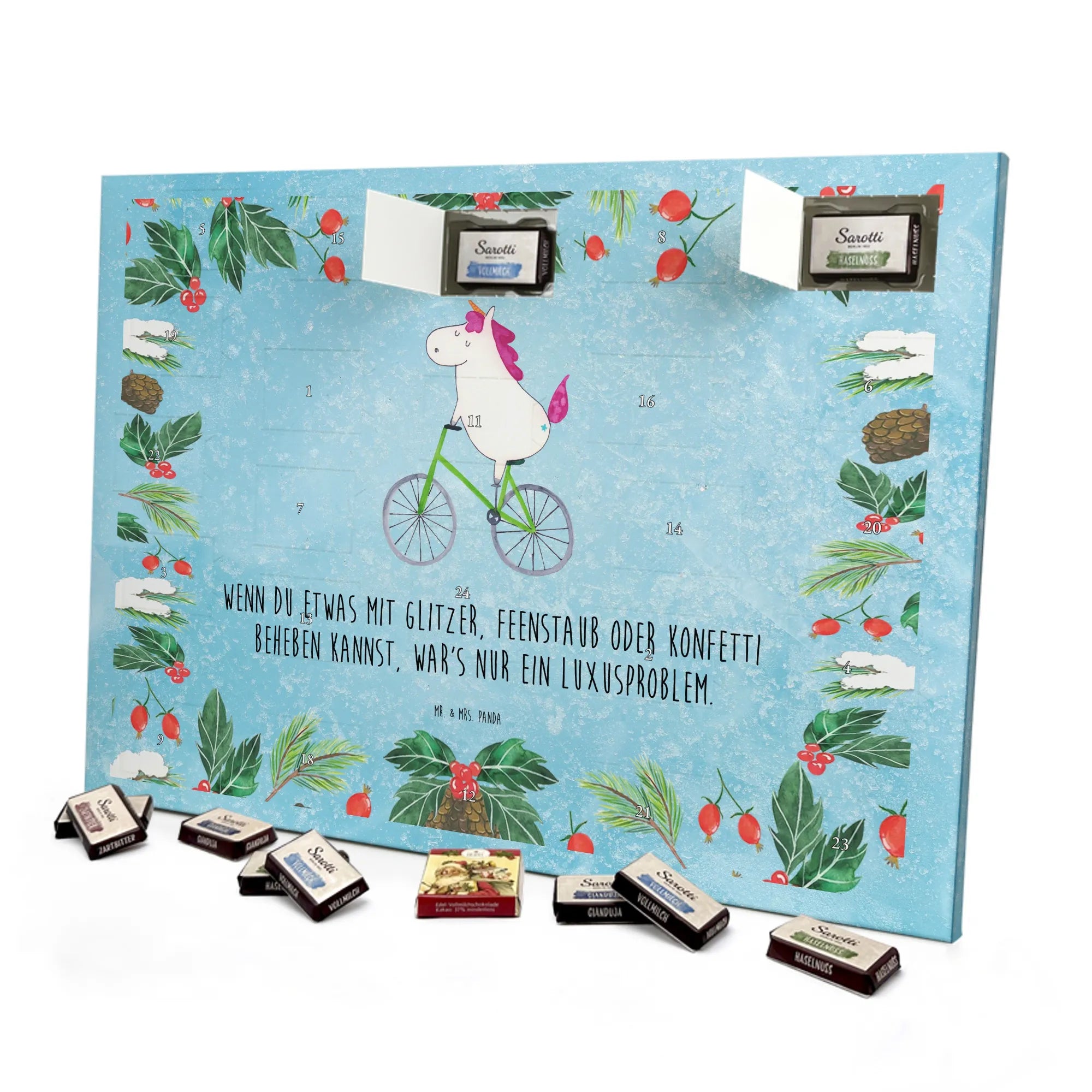 Chocolate advent calendar unicorn cyclist - Classic - with saying - Ice Blue