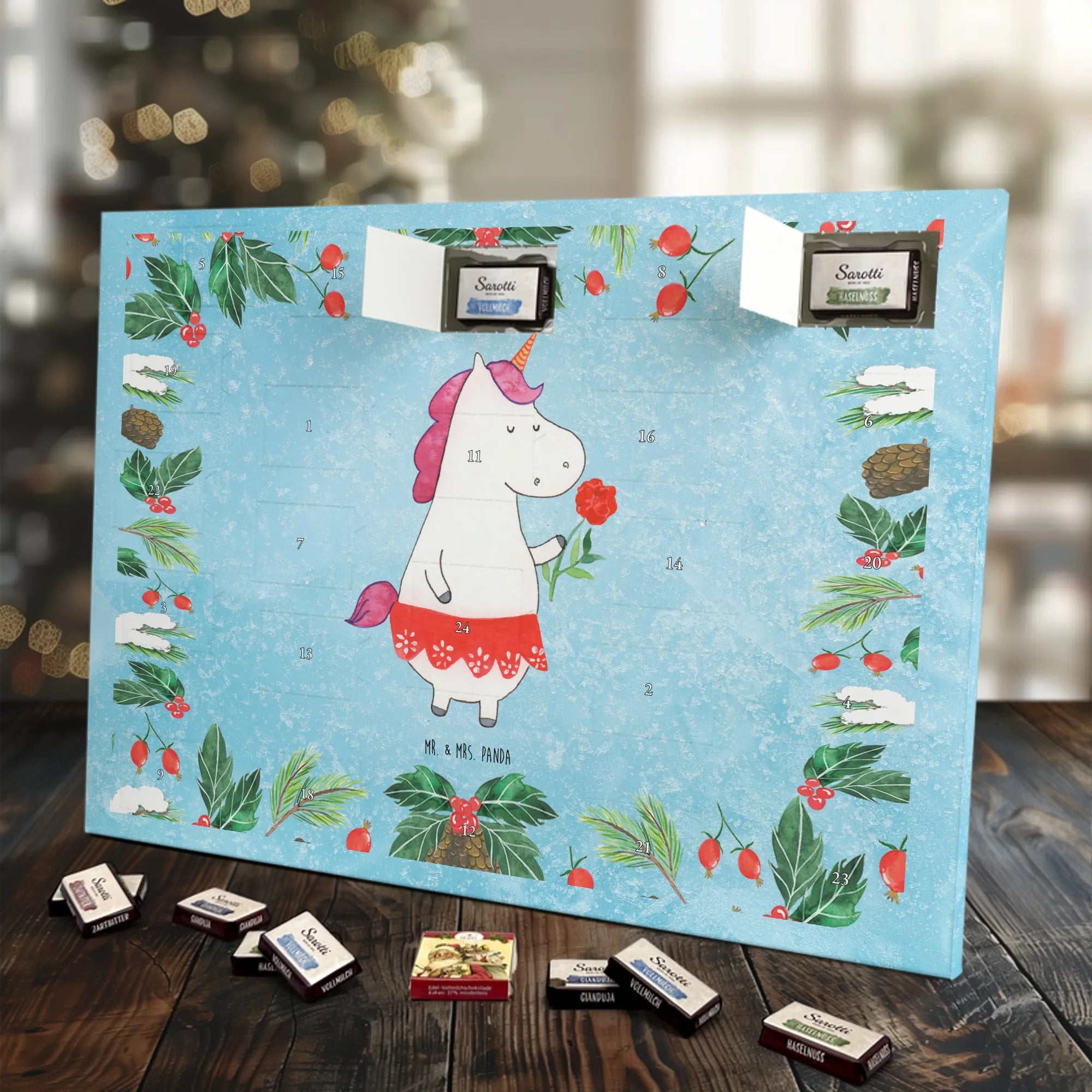 Chocolate advent calendar unicorn lady - Classic - with saying - Ice Blue