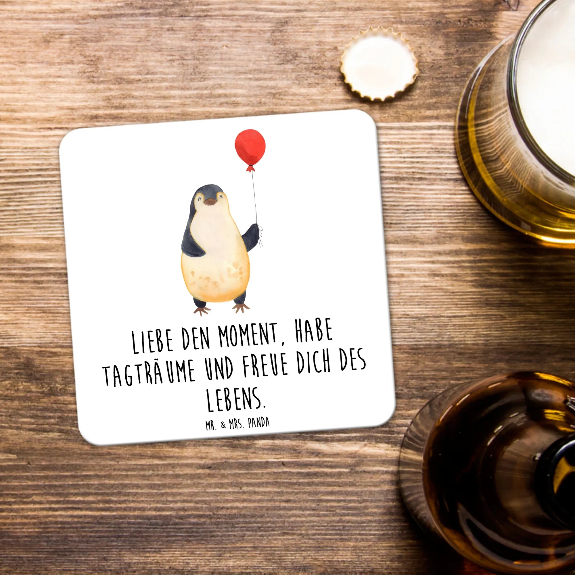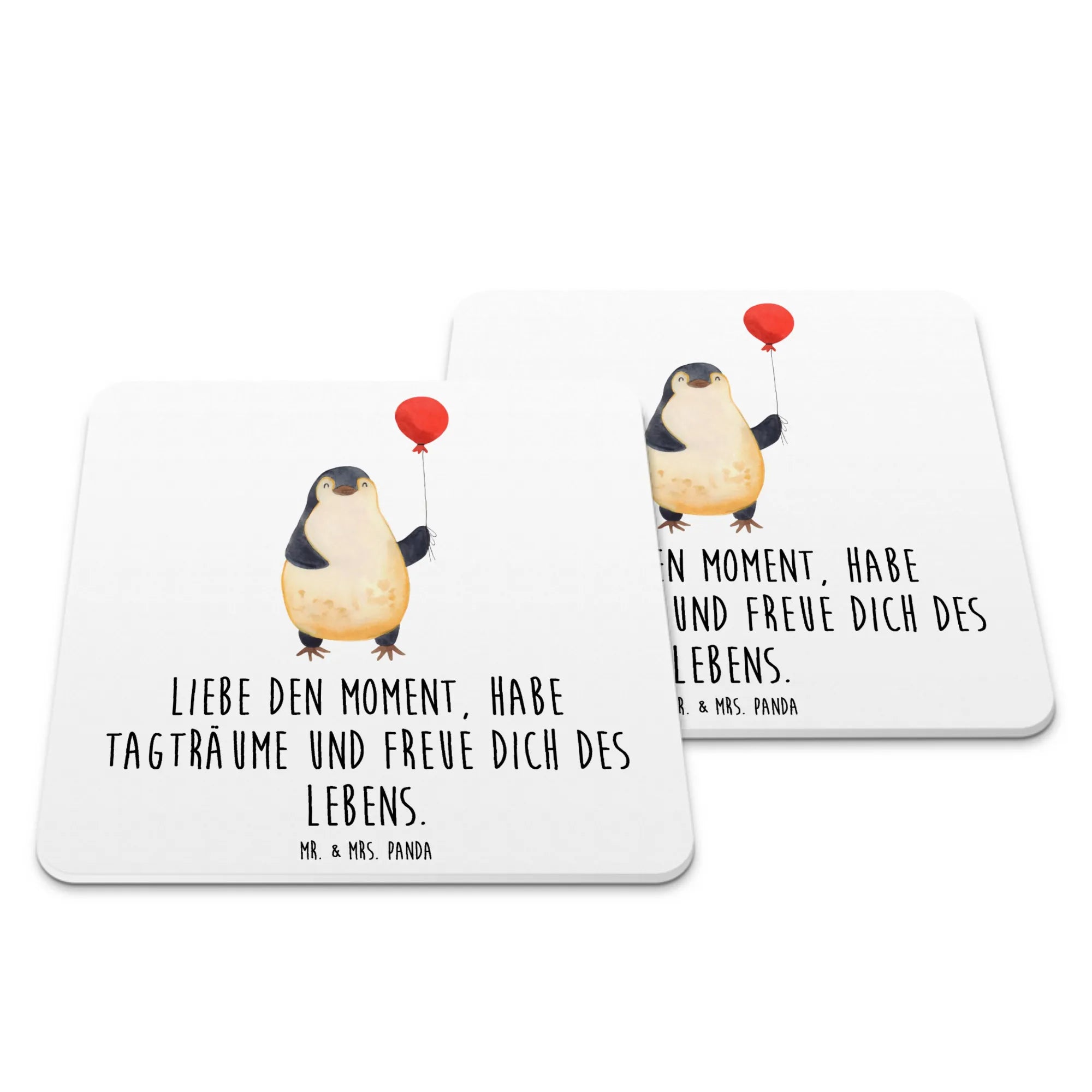 Verschenke Lebensfreude, Motivation und ein kleines Stück Alltagspoesie – mit dem Untersetzer Set „Pinguin Luftballon" von Mr. & Mrs. Panda. Ein schönes Geschenk für Freundinnen, Familie und alle, die das Leben genießen möchten.