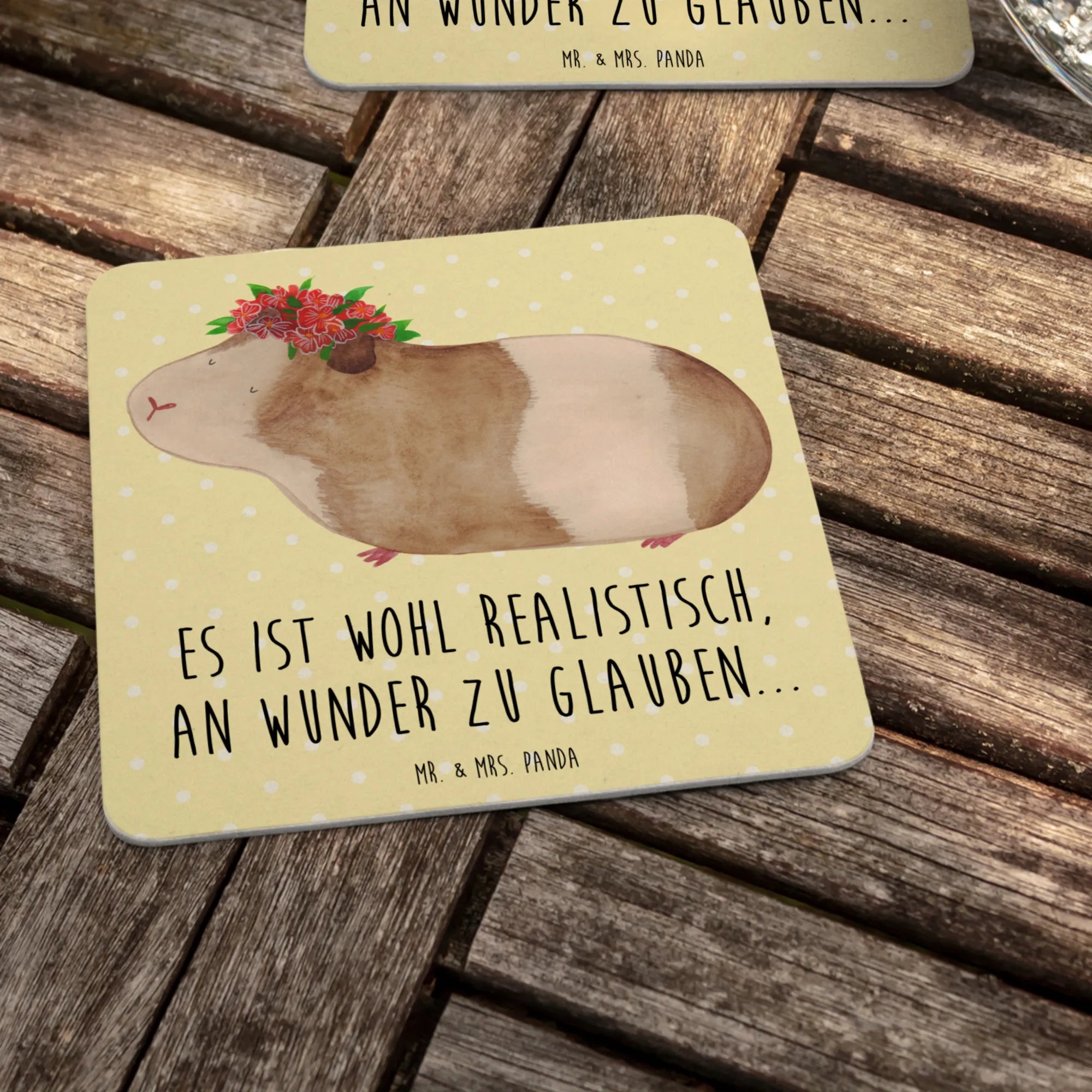 Entdecke die wunderbare Welt der Meerschweinchen mit unserem einzigartigen Bierdeckel aus der Small World Kollektion von Mr. & Mrs. Panda! Dieser Bierdeckel ist nicht nur ein praktisches Accessoire, um deinen Tisch vor unschönen Abdrücken und Kratzern zu schützen, sondern auch ein besonders liebevolles Gastgeschenk, das bei Hochzeiten, Geburtstagsfeiern oder anderen bedeutenden Anlässen zum Einsatz kommt. Die Weisheit des Meerschweinchens ist unbestreitbar. Lass dich von dem charmanten Motiv und dem treffenden Spruch: