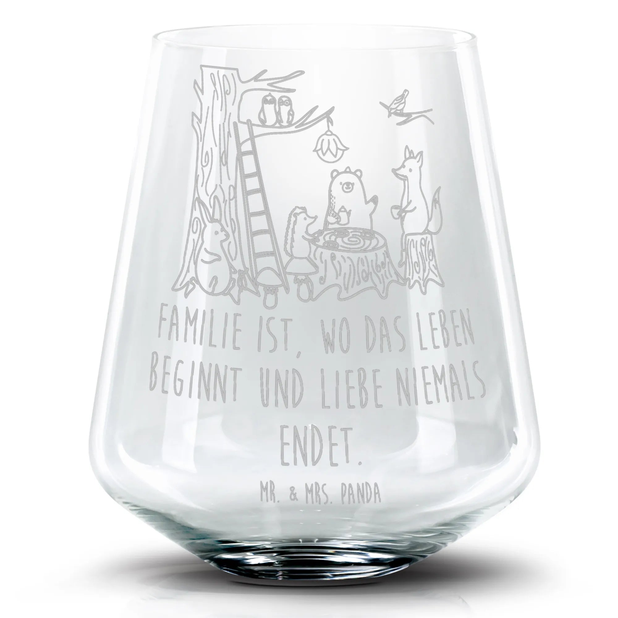 Discover the beautiful cocktail glass with a great engraving by Mr. & Mrs. Panda! Refined with inspiring quotes and enchanting designs by Mr. & Mrs. Panda, this cocktail glass is the perfect addition to your cocktail evenings. Product Features: Perfect as a stylish cocktail glass for your favorite cocktails, whether it's Mojito, Margarita, or a classic Martini. High-quality laser engraving: Material is removed through precise heating, creating an elegant matte effect. - Material: Robust glass for durability and style. - Dimensions: Height 103 mm, Diameter 88 mm, with a capacity of 400 ml. - Care Instructions: Dishwasher safe for effortless cleaning and more time to enjoy. This cocktail glass combines quality, style, and the unique designs of Mr. & Mrs. Panda. Whether for private celebrations or as a gift for cocktail lovers, it gives each drink a special touch. Discover the magic of an exquisite cocktail glass with this special engraving!