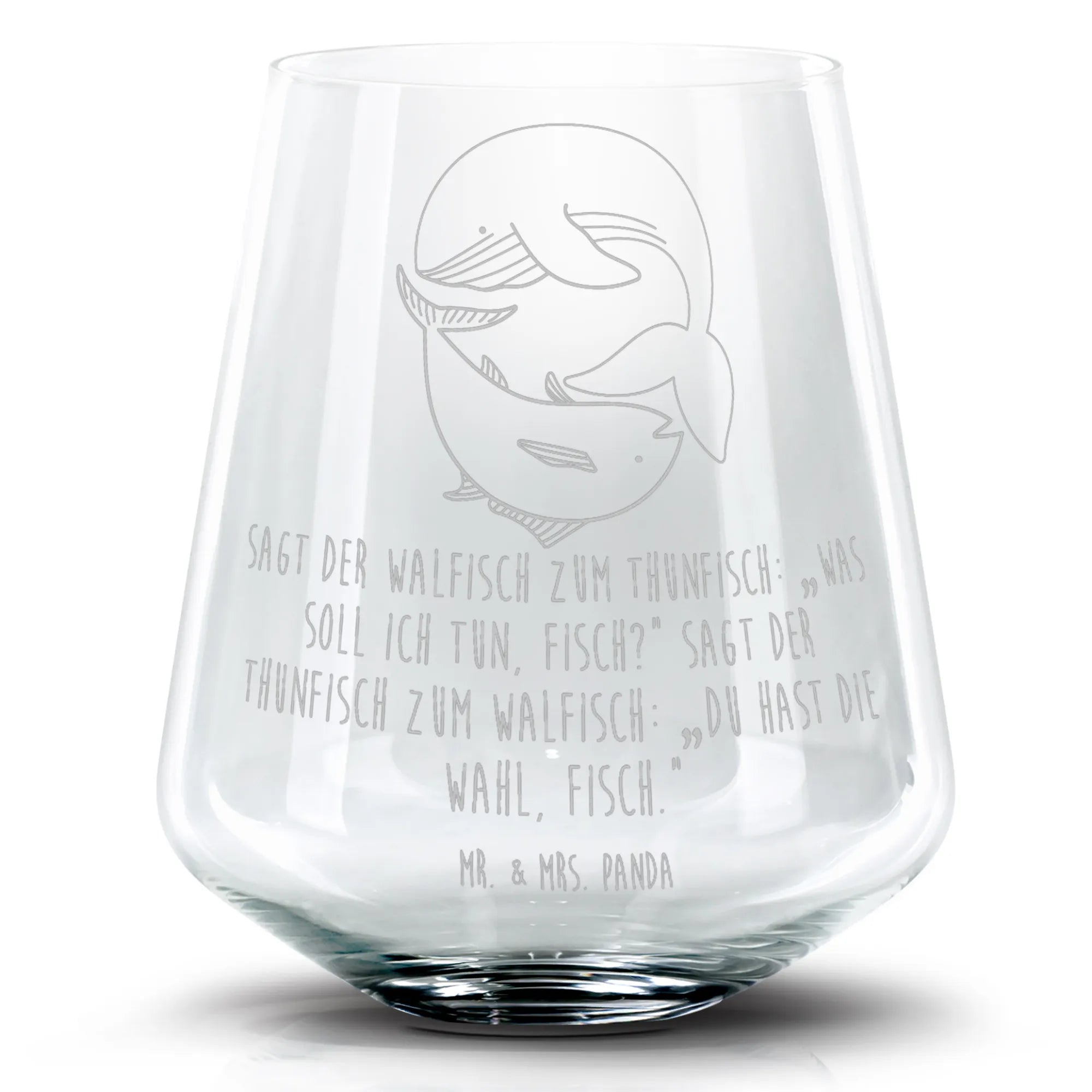 Die Small World Kollektion von Mr. & Mrs. Panda bietet kreative und fröhliche Designs, die das Leben bunt machen. Der Spruch "Sagt der Walfisch zum Thunfisch: ‚Was soll ich tun, Fisch?‘ Sagt der Thunfisch zum Walfisch: ‚Du hast die Wahl, Fisch.‘" bringt dich zum Schmunzeln und ist ideal für alle, die einen Sinn für Humor haben. So ist dieses Glas nicht nur ein praktisches Trinkgefäß, sondern auch ein lustiges Gesprächsstück, das bei jeder Feier für Lacher sorgt.