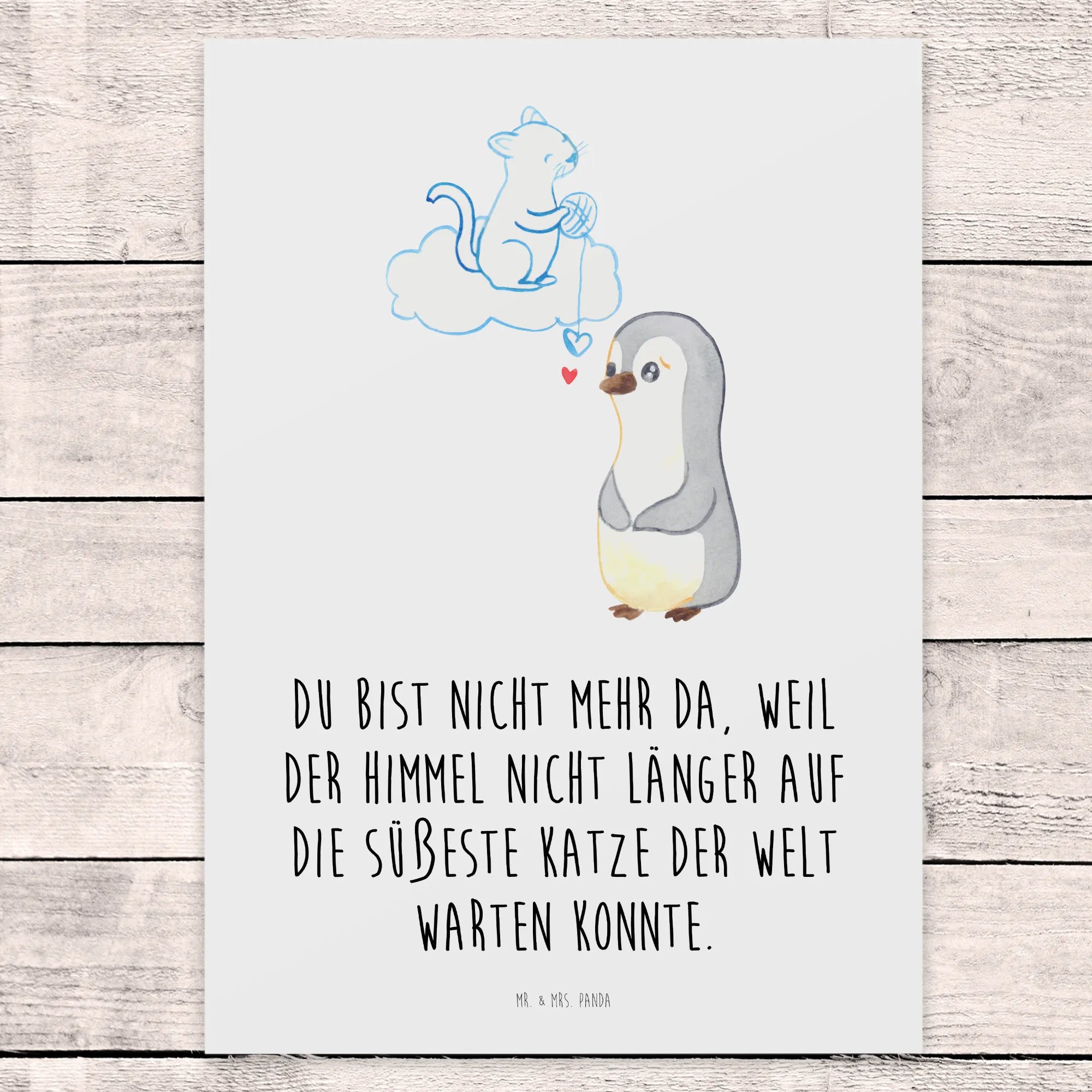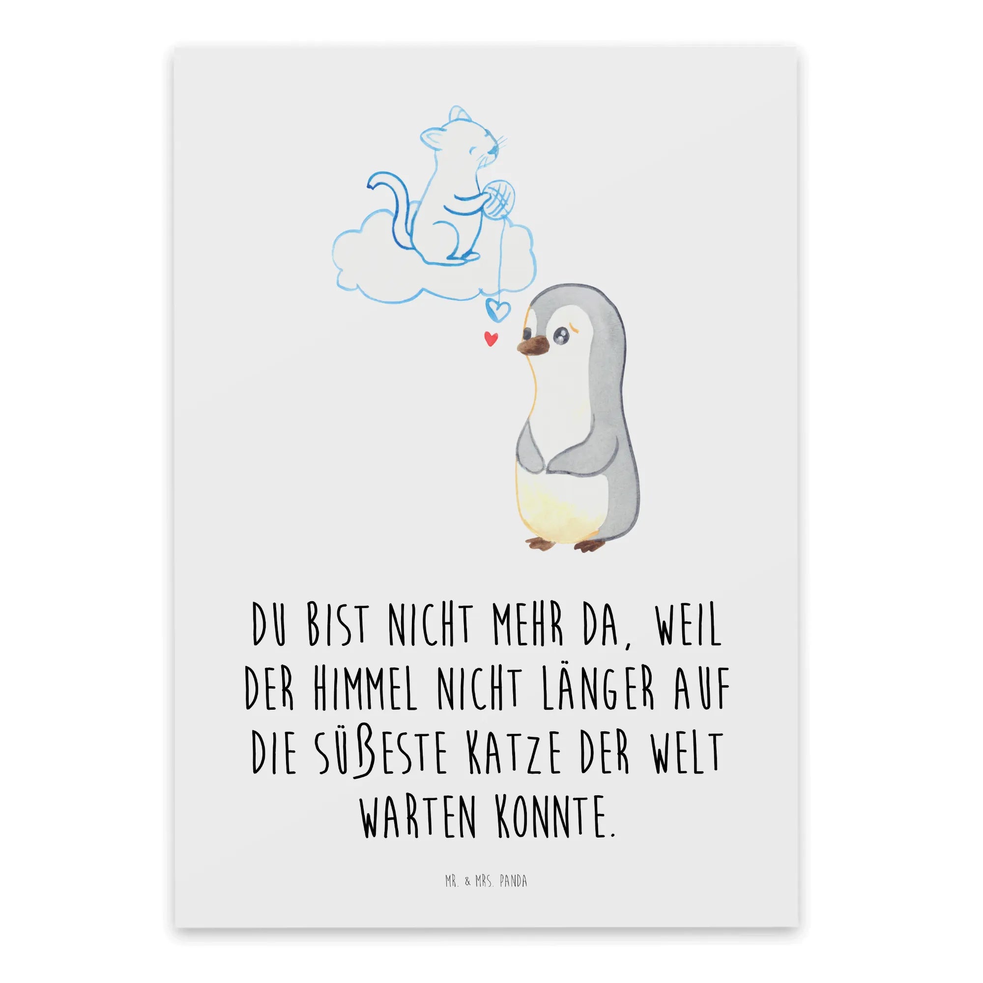 This poignant motif captures the essence of love and loss with a tender touch. A sad little penguin, tears rolling down its cheeks, gazes up at a cloud where its cherished cat rests peacefully. The saying, 'Du bist nicht mehr da, weil der Himmel nicht länger auf die süßeste Katze der Welt warten konnte,' beautifully encapsulates the idea that some souls are too sweet to remain on earth. In this creation, we are reminded that every beloved pet leaves a legacy of laughter, joy, and unforgettable memories. Grief may linger, but so does the happiness they gave us daily. This artwork serves as a comforting embrace during difficult times, inviting us to remember the joy they brought while allowing us to grieve.