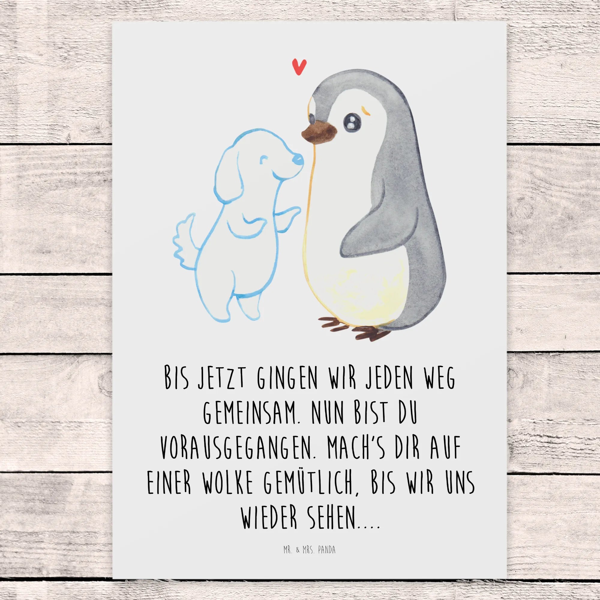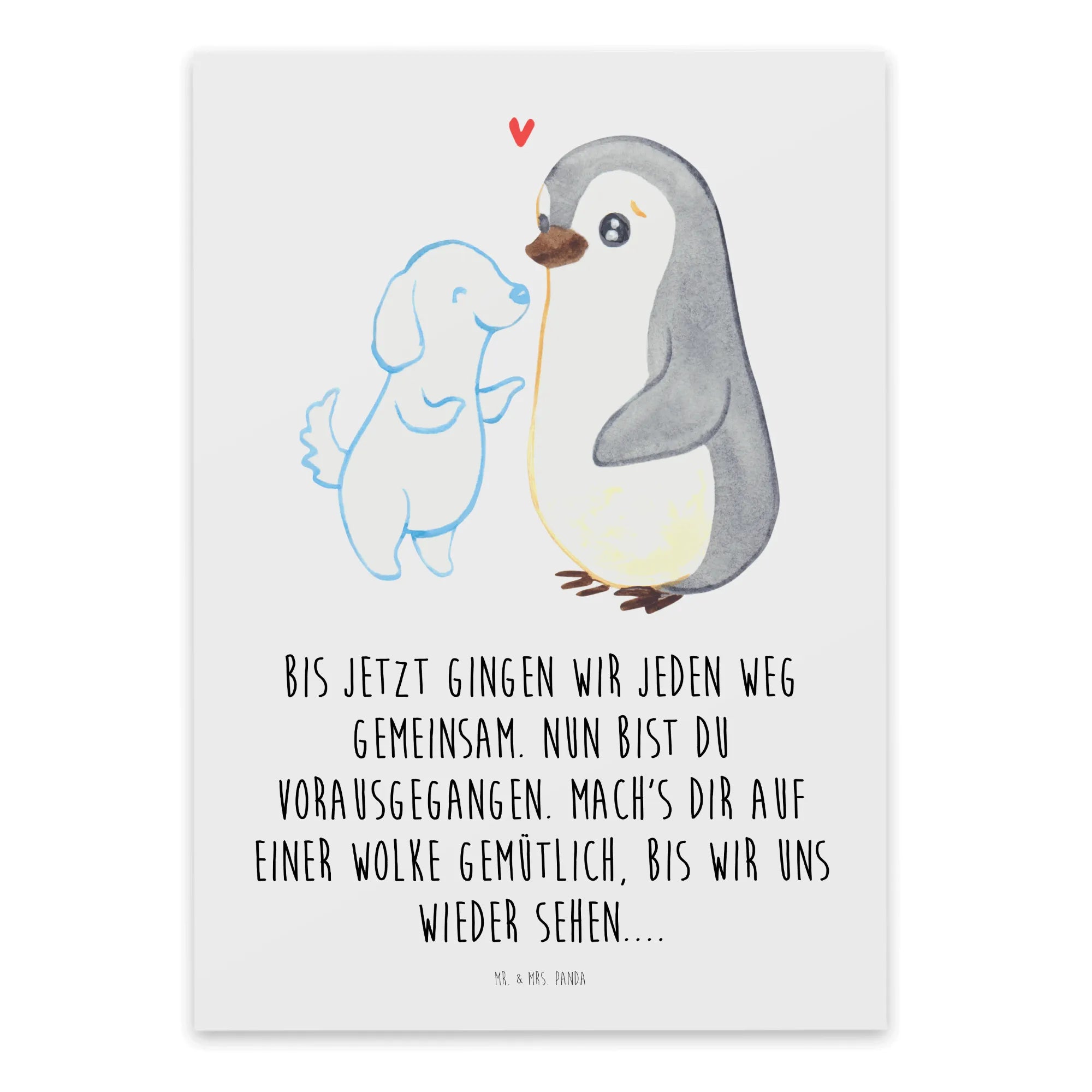 In this touching motif, we see a sad little penguin missing his beloved dog, who has now become a cloud in the sky. The gentle blue outline of the dog lovingly gazes down at the penguin, reminding us of the deep connection shared between pets and their humans. The heart floating between them symbolizes lasting love and fond memories. Every glance, every memory between them is captured, wrapping the viewer in a warm blanket of nostalgia. The saying 'Until now, we walked every path together. Now you have gone ahead. Make yourself cozy on a cloud until we meet again...' beautifully encapsulates this bond, reassuring us that love transcends even the toughest of farewells.