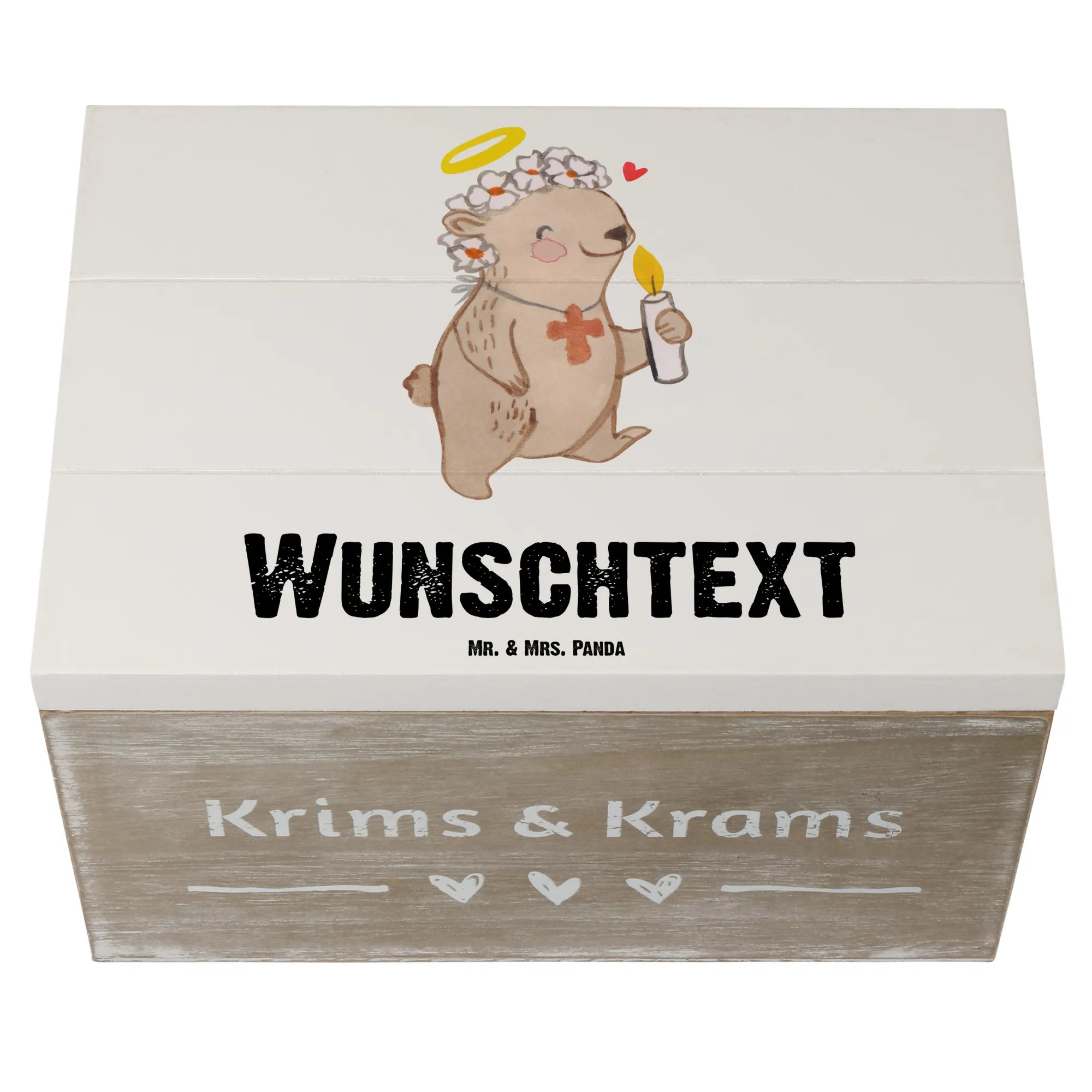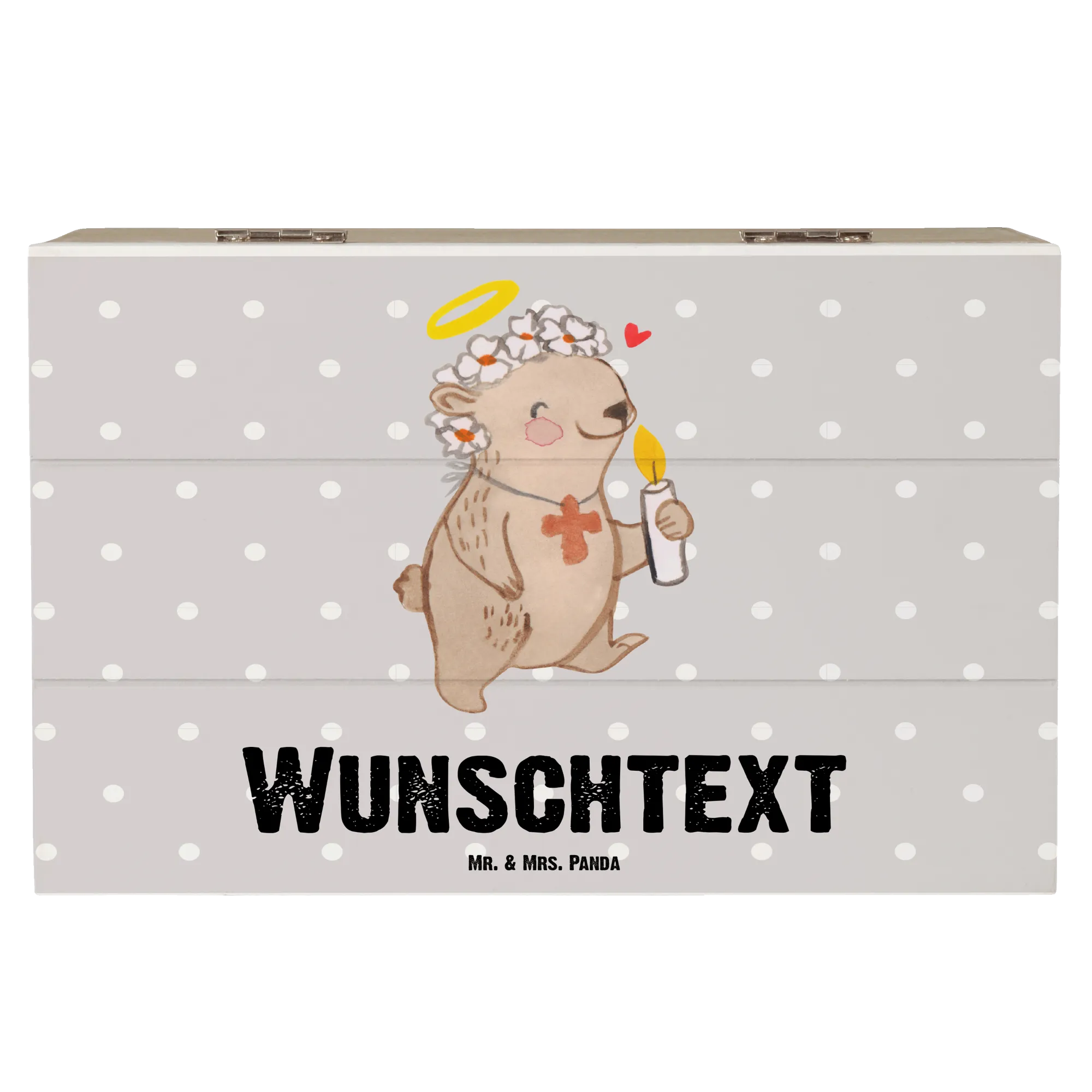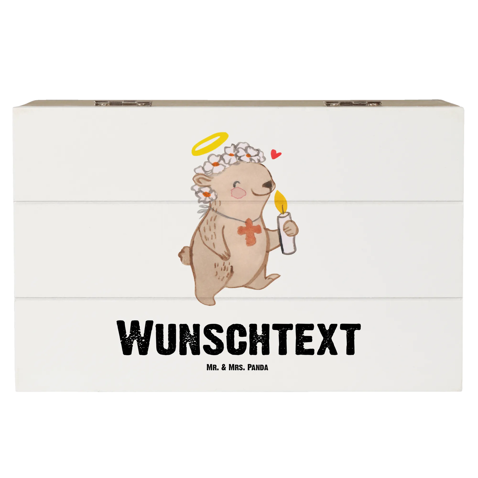 Personalised wooden chest bear communion girl - 25 x 18 cm - White