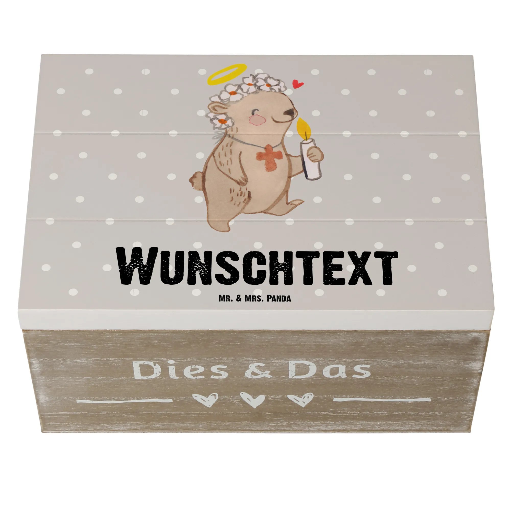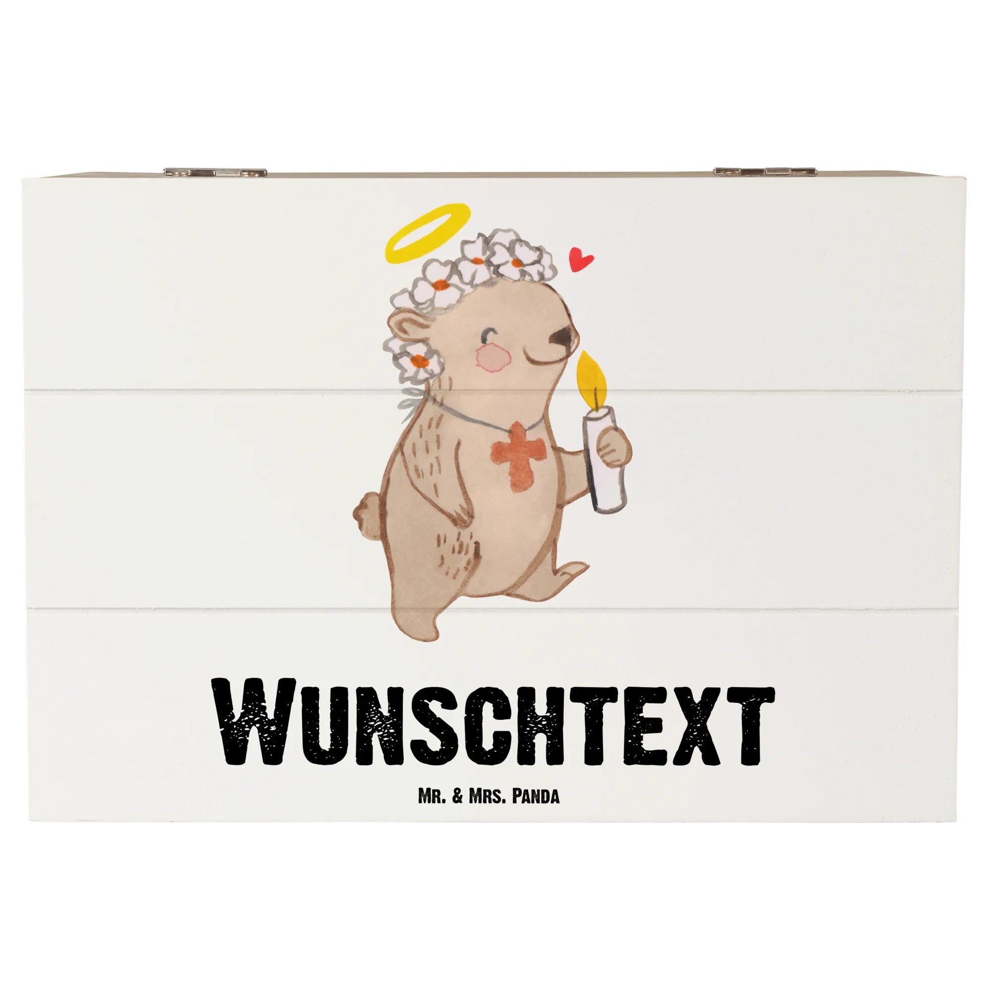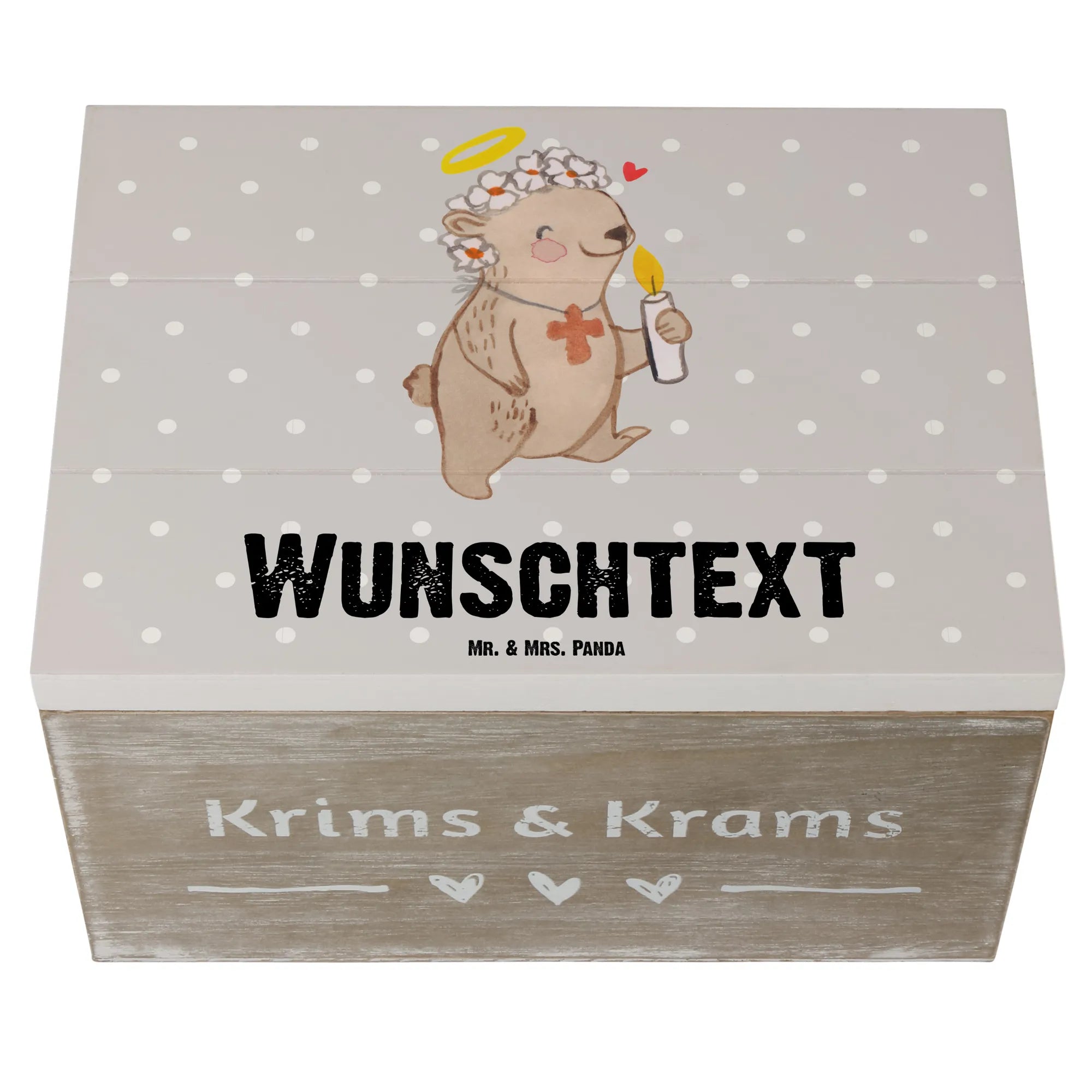 Personalised wooden chest bear communion girl - 25 x 18 cm - White