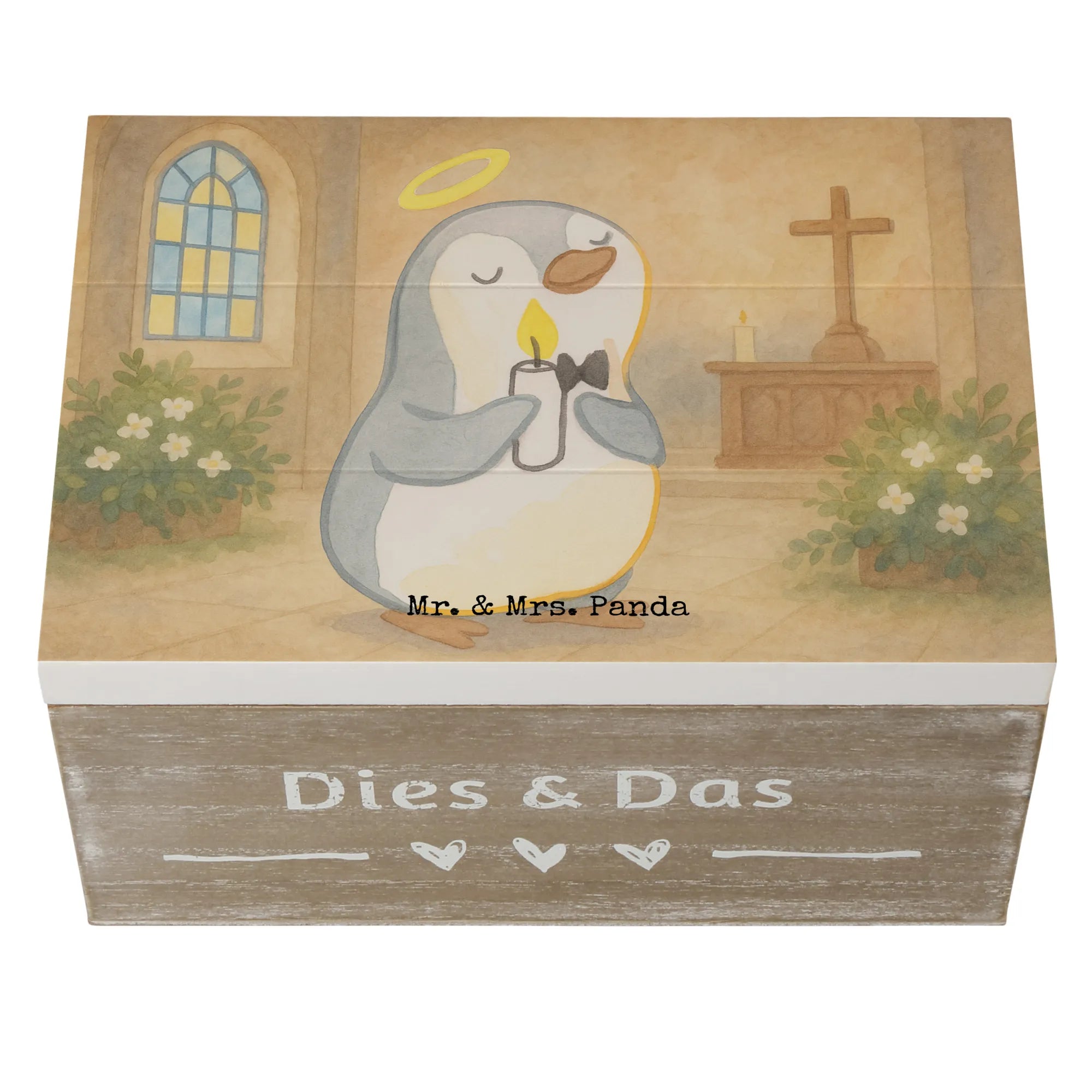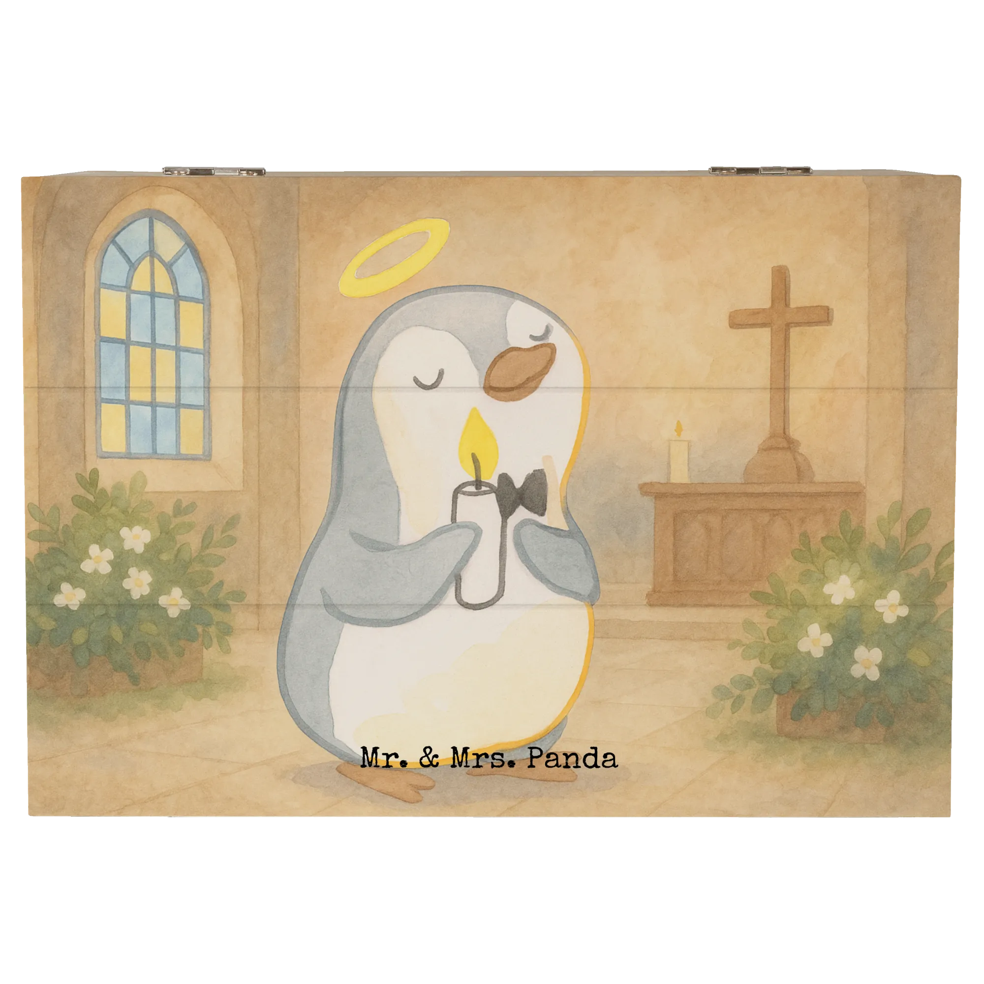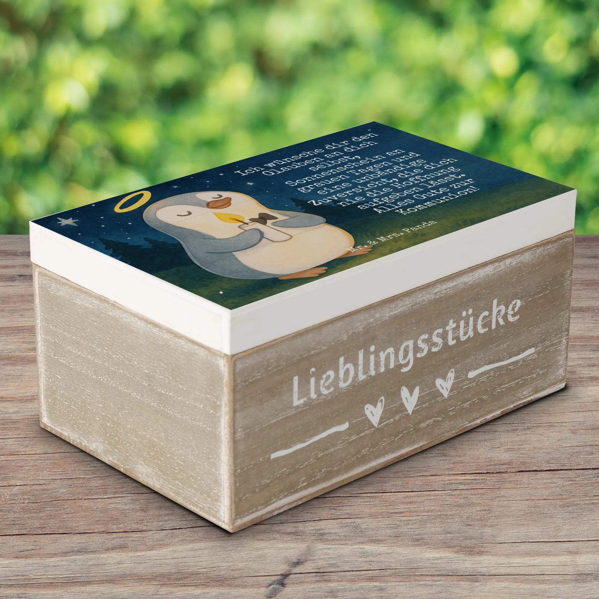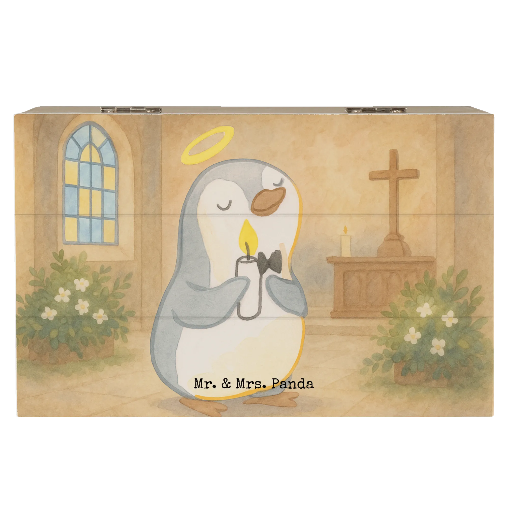 Wooden chest penguin communion Design - 22 x 15 cm - with a saying