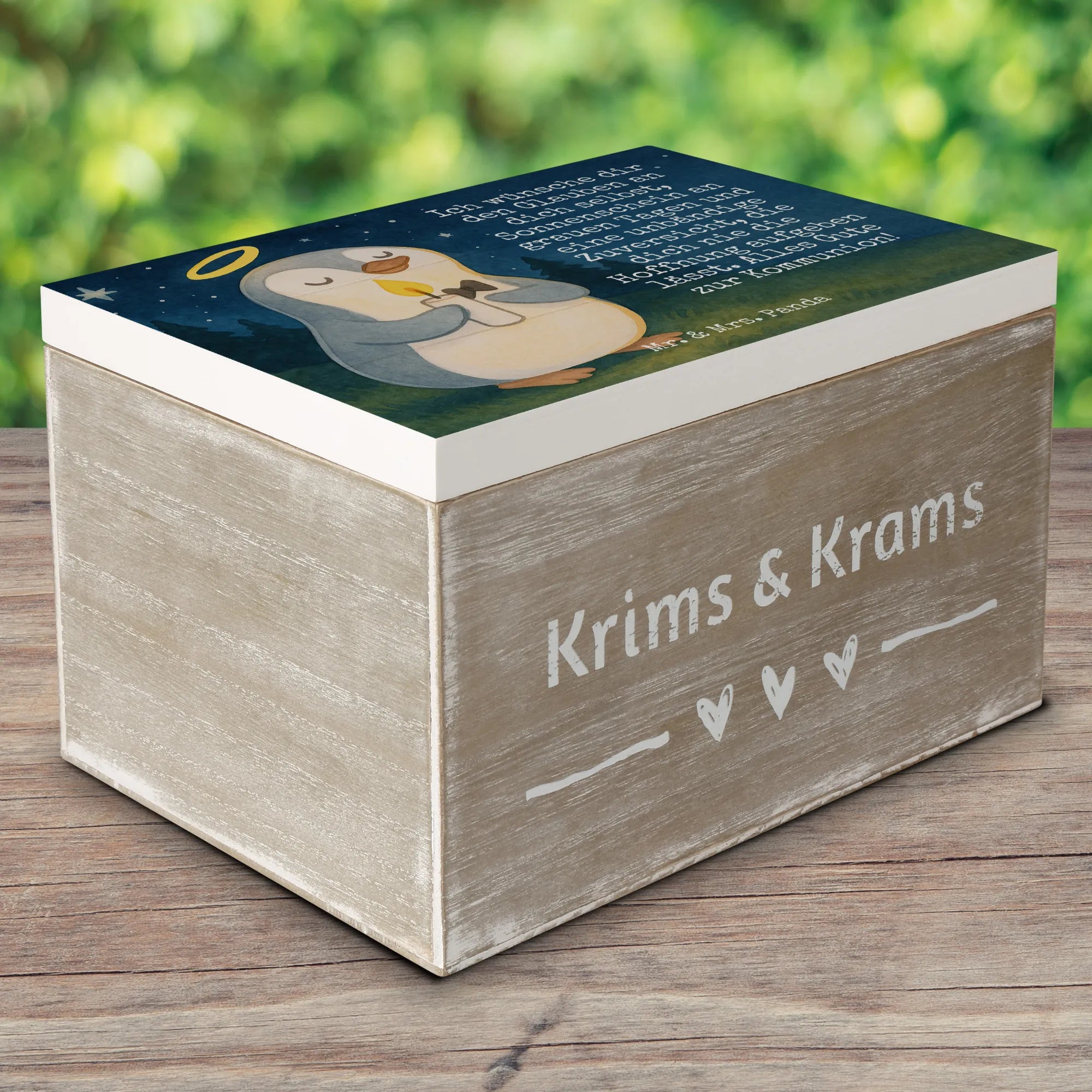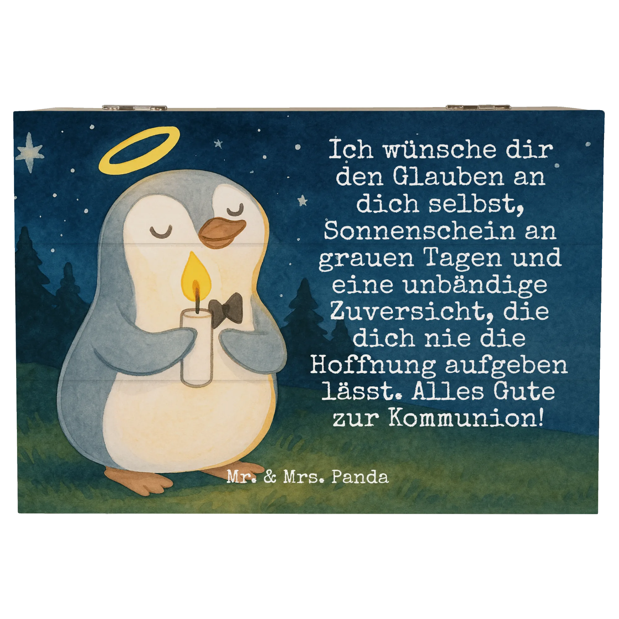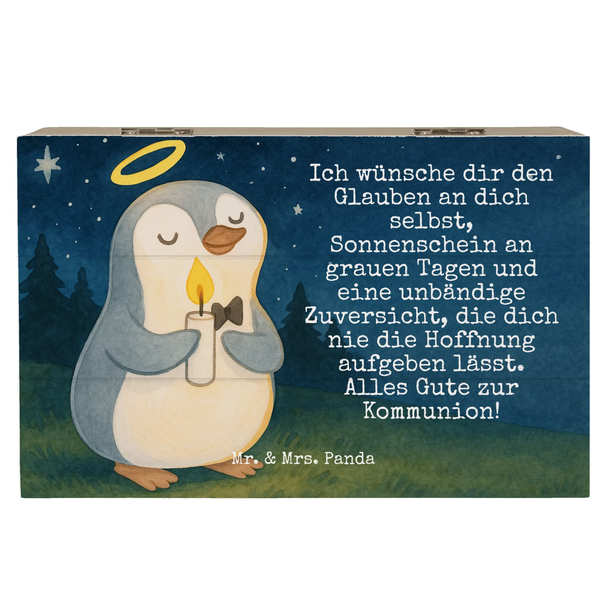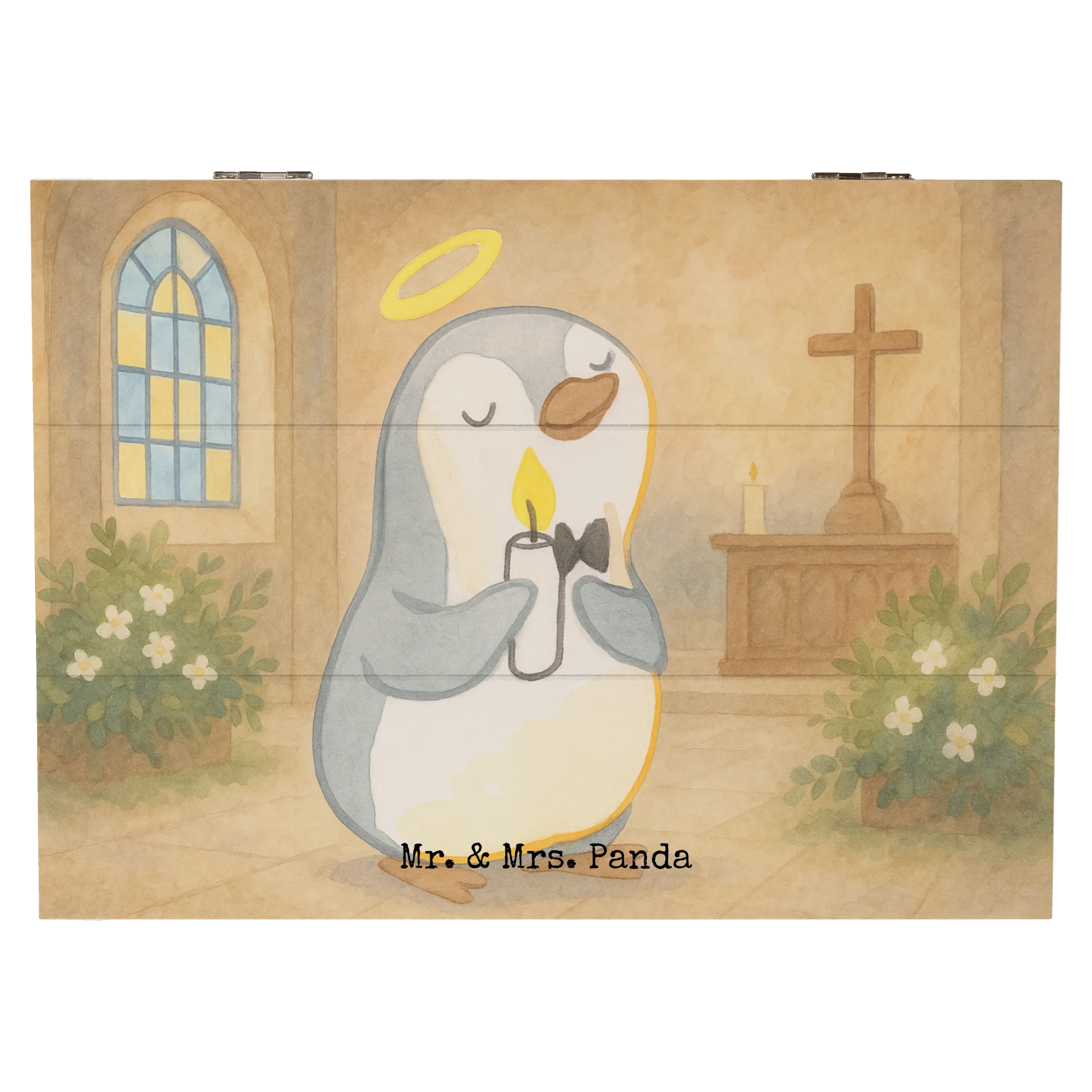 Wooden chest penguin communion Design - 22 x 15 cm - with a saying