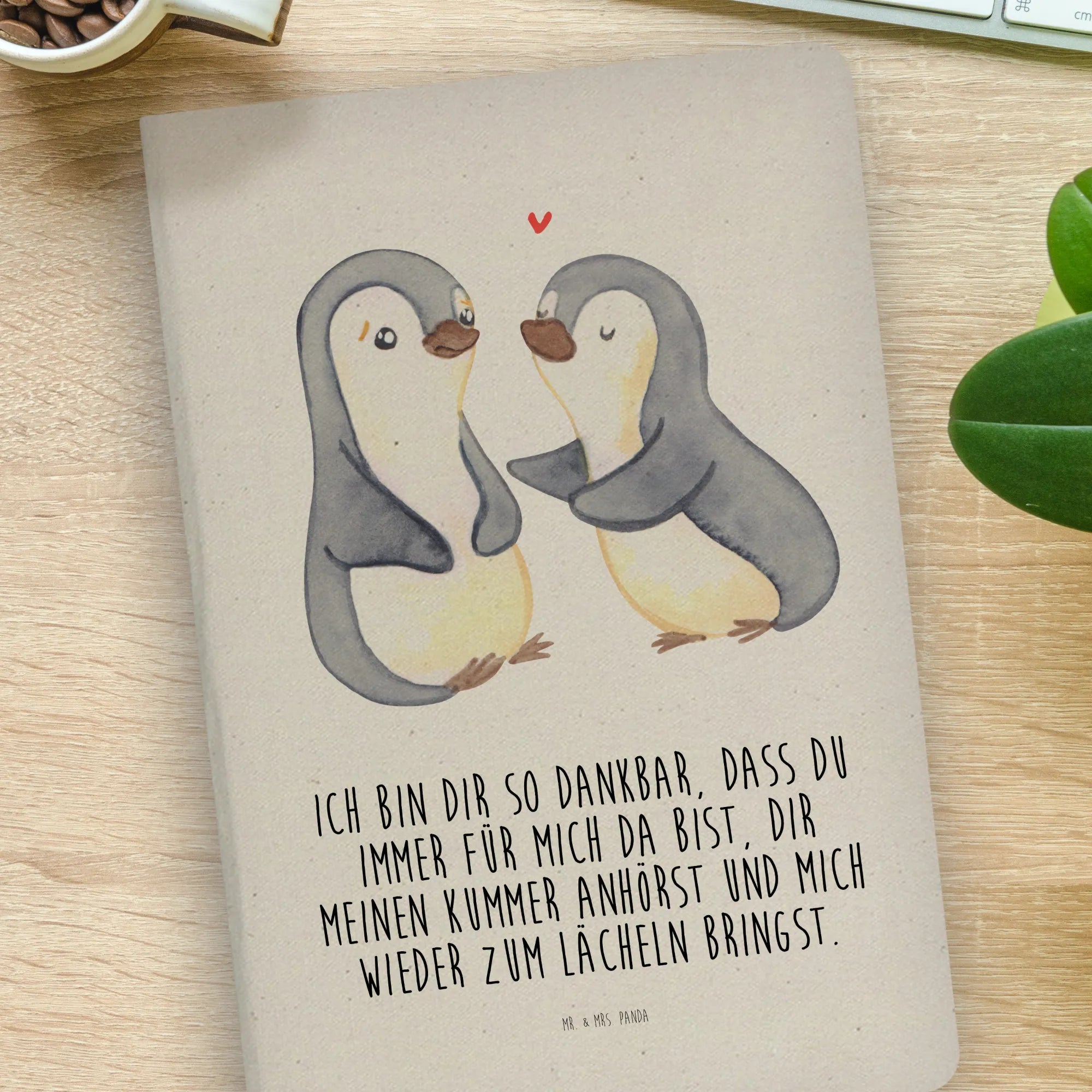 Say hello to our adorable comfort penguins—a perfect representation of love that provides solace and support. Looking into each other’s eyes, these two gentle creatures create a blissful atmosphere filled with warmth and understanding. With their soft gray and white colors accented by a touch of warm yellow, they effortlessly enhance the aura of any living space. The saying, 'Ich bin dir so dankbar, dass du immer für mich da bist, dir meinen Kummer anhörst und mich wieder zum Lächeln bringst,' expresses heartfelt appreciation for those we always depend on. Whether you're choosing a Valentine’s Day gift for your partner or a sweet anniversary surprise, these penguins are a beautiful testament to the enduring bonds we cherish and the love that carries us through tough times.