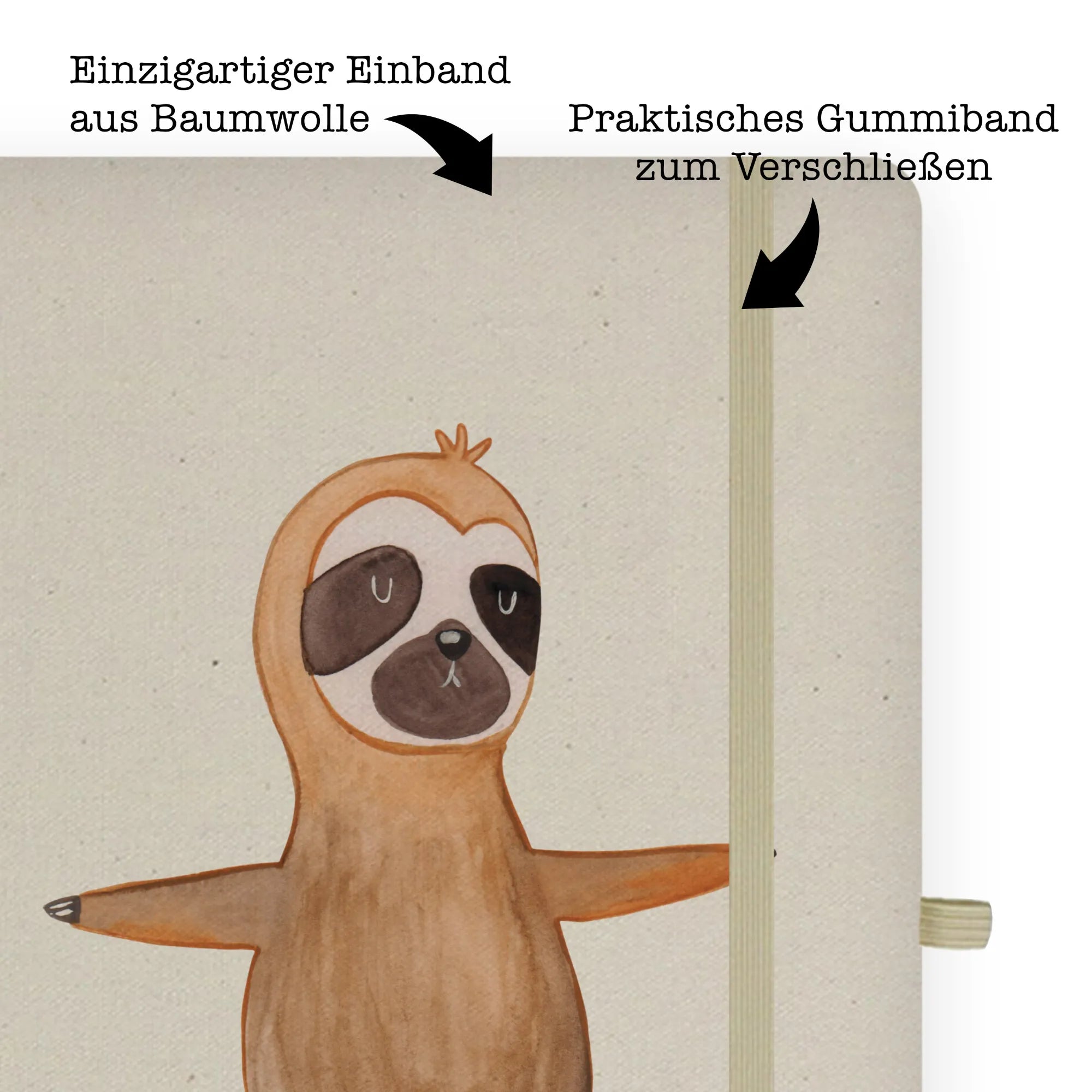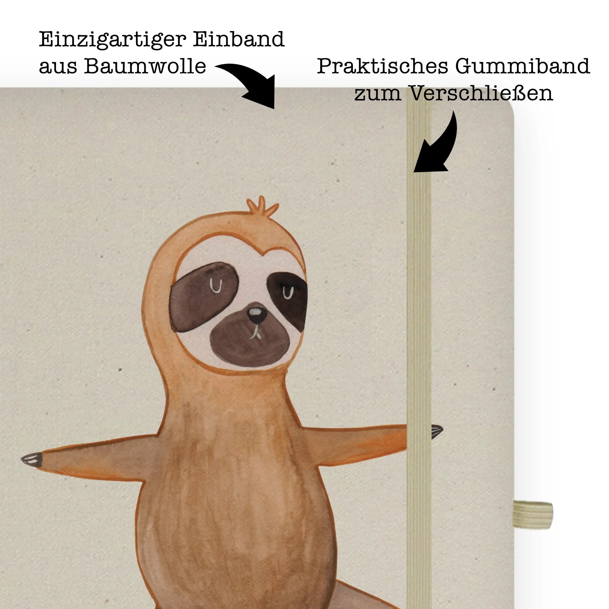 Cotton notebook sloth yoga - DIN A4 Baumwoll Notizbuch - with saying