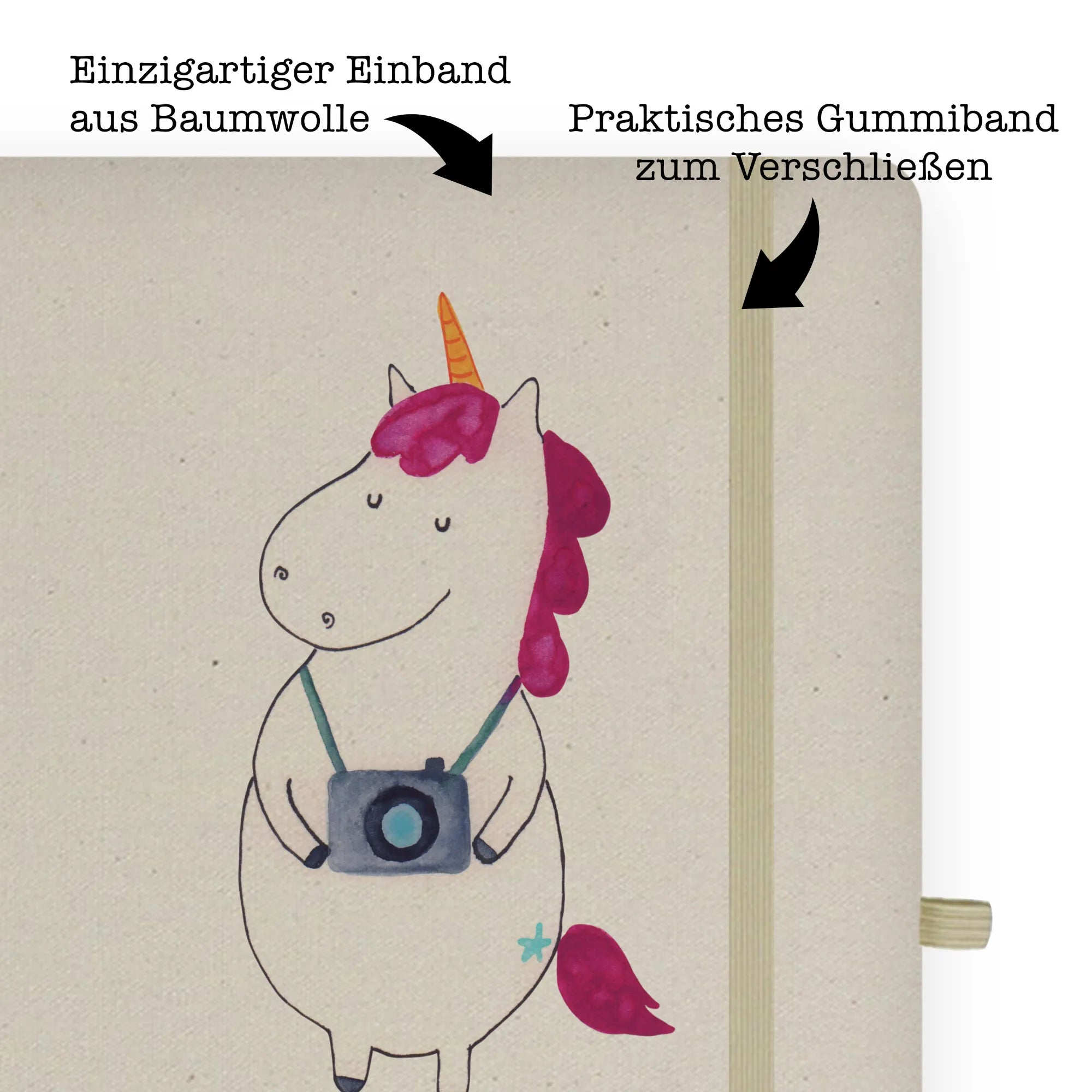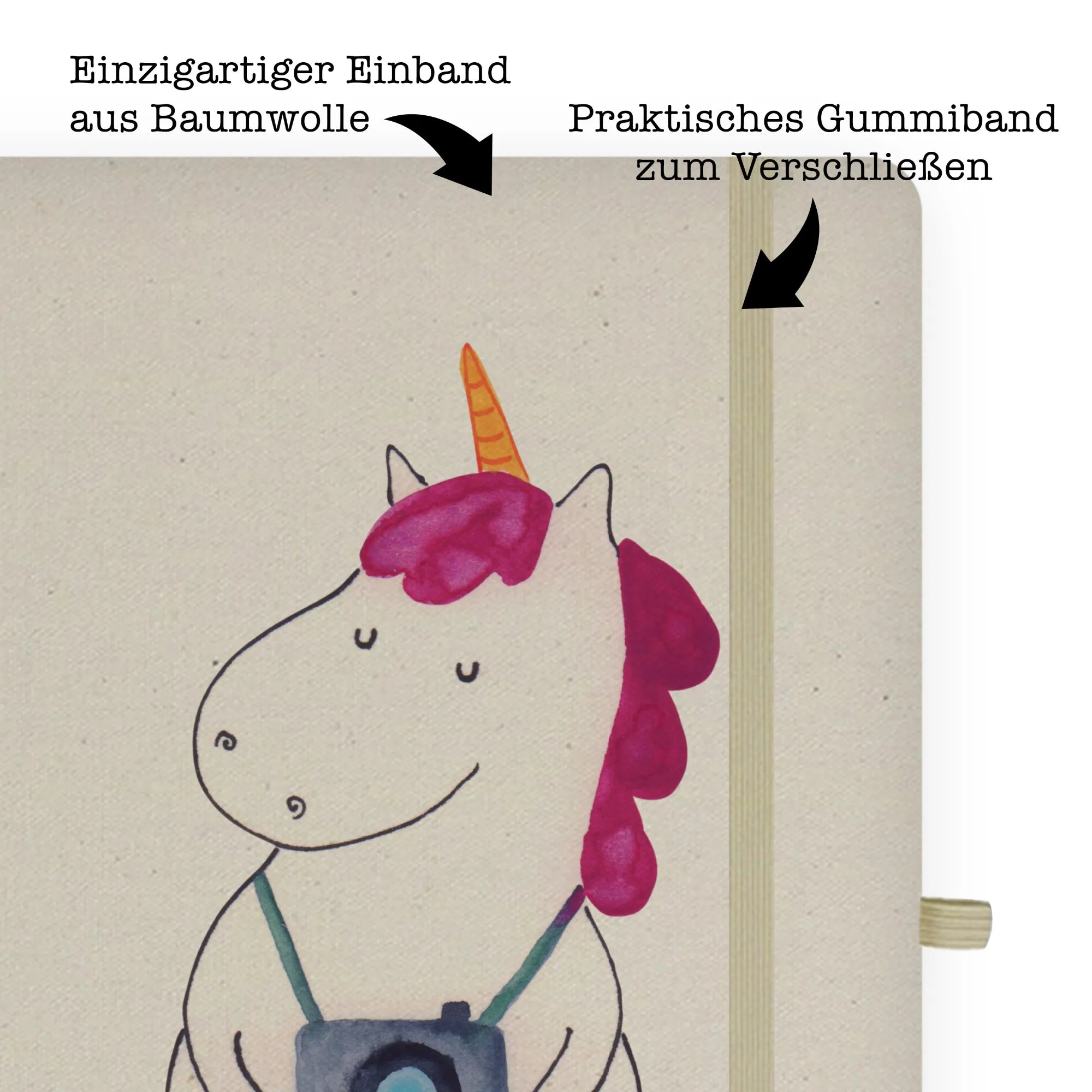 Cotton notebook unicorn photographer - DIN A4 Baumwoll Notizbuch - with saying