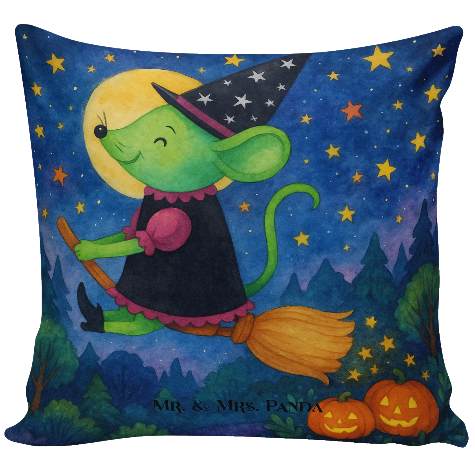 Süße grüne Maus als Hexe im Flug - Perfekte Geschenkidee für Halloween!