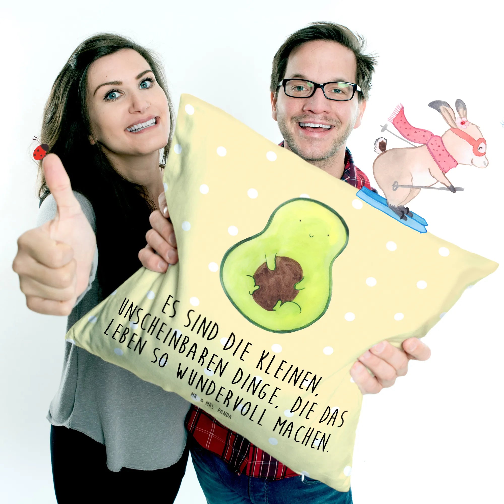 Imagine curling up with your favorite book, snuggled against the plush softness of this cushion, adorned with an irresistibly cute avocado motif. The charming design, showcasing a sweet avocado hugging its pit, is not only visually appealing but also reminds us that "It's the little things that make life wonderful." Hand-drawn with love by Mrs. Panda, this design perfectly encapsulates the joy and positivity avocados symbolize in our lives.