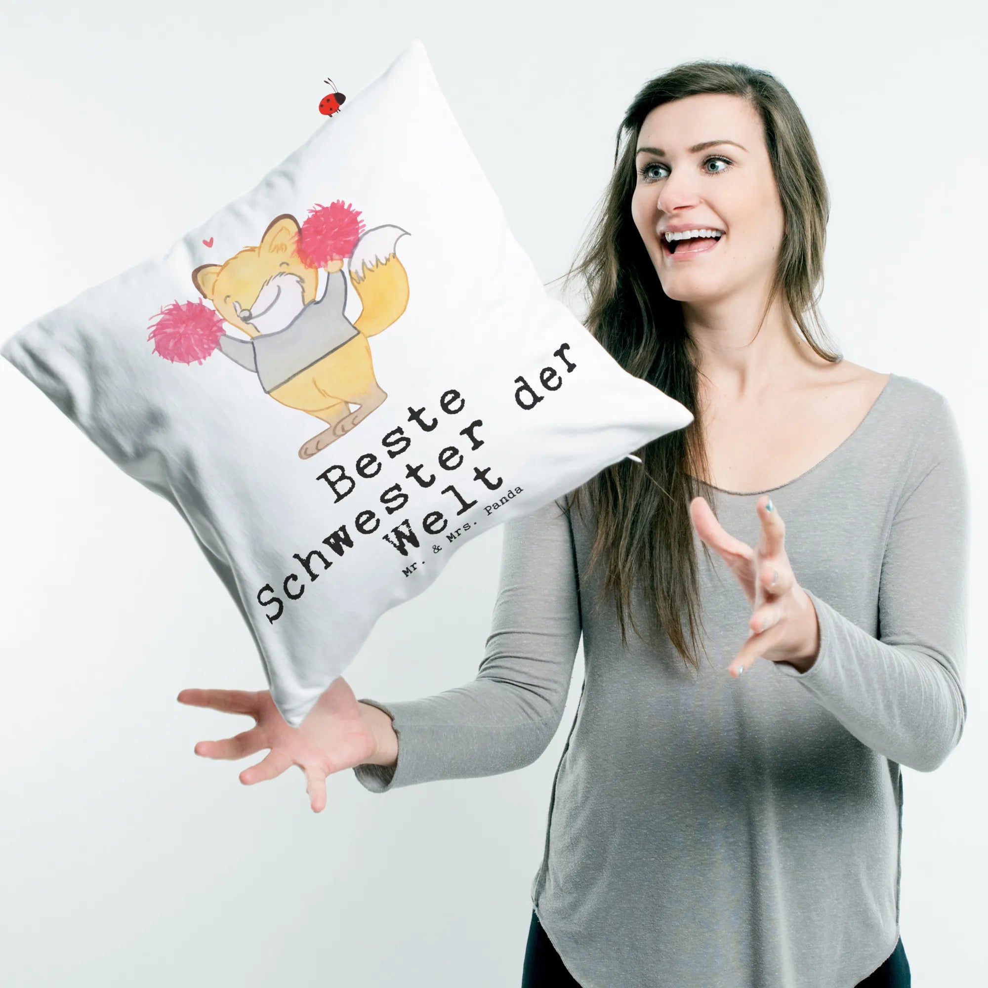 Cushion Fox best sister in the world - Pastel Gray