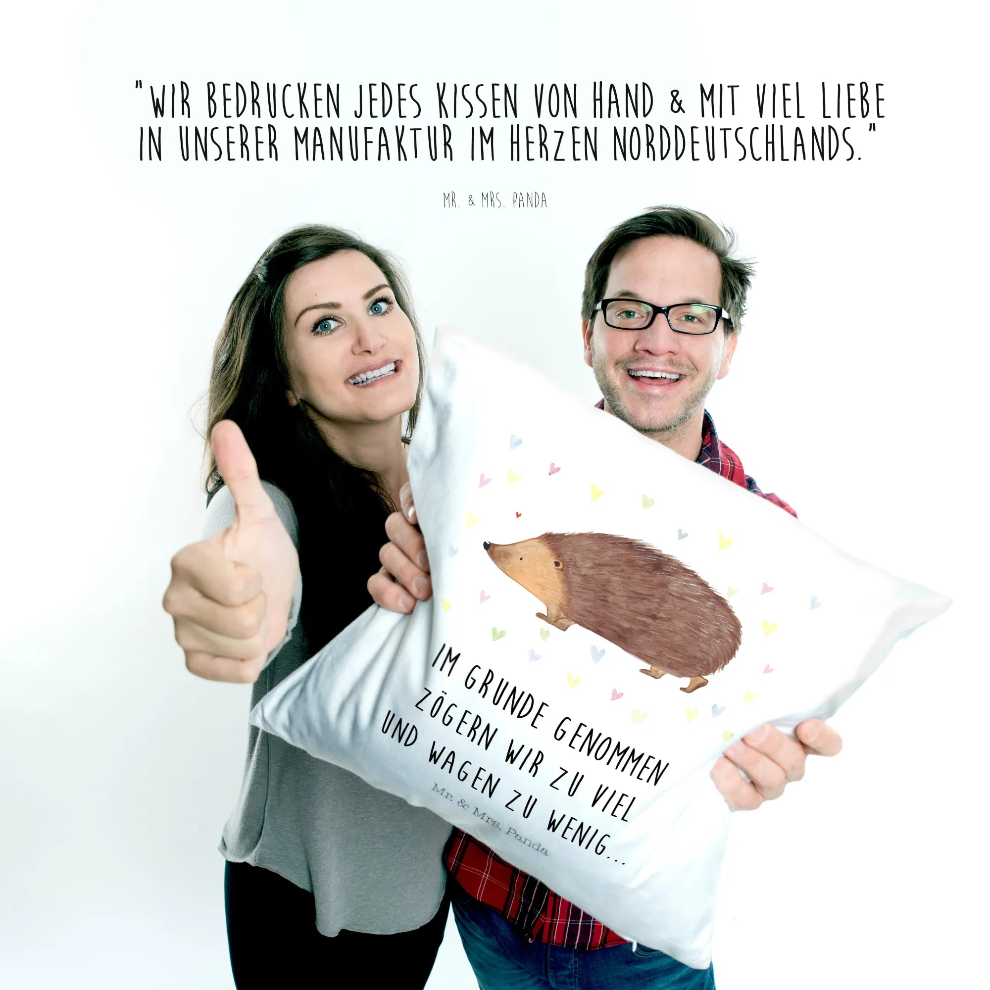 Bring cozy vibes to your home with the lovely Mr. & Mrs. Panda cushion! This striking cushion comes in at 400 mm x 400 mm (16 inch x 16 inch) and is crafted from luxuriously soft microfiber. Delight in the captivating prints and heartwarming quotes that are designed to bring a smile to your face. The removable filling allows you to keep the cushion fresh and clean, simply unzip and wash the cover at a maximum of 30° C. Ideal for your couch, as a charming decorative pillow, or a thoughtful gift for friends, this cushion epitomizes the soft and cuddly essence of home. Embrace comfort and style in one beautiful package with the Mr. & Mrs. Panda cushion today!