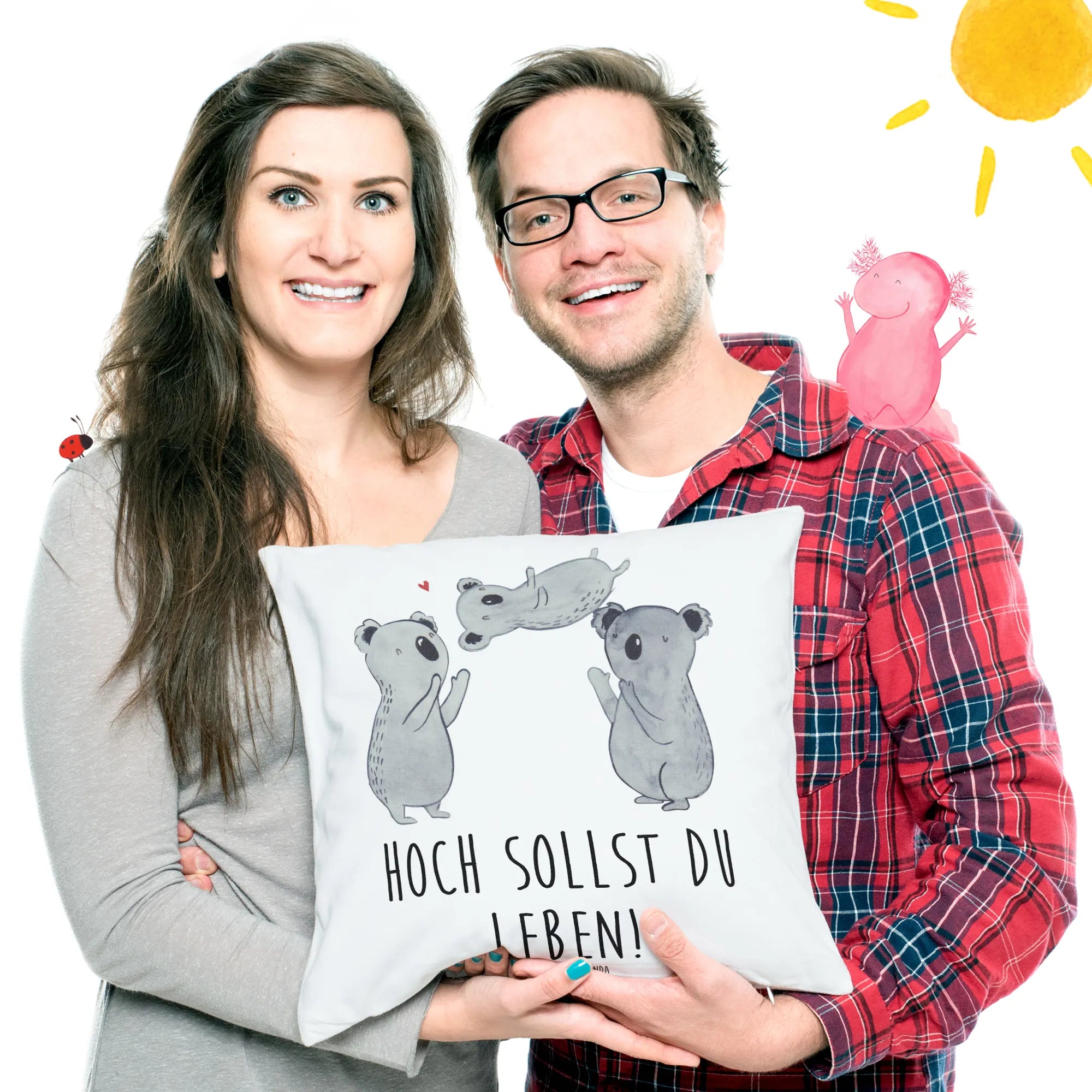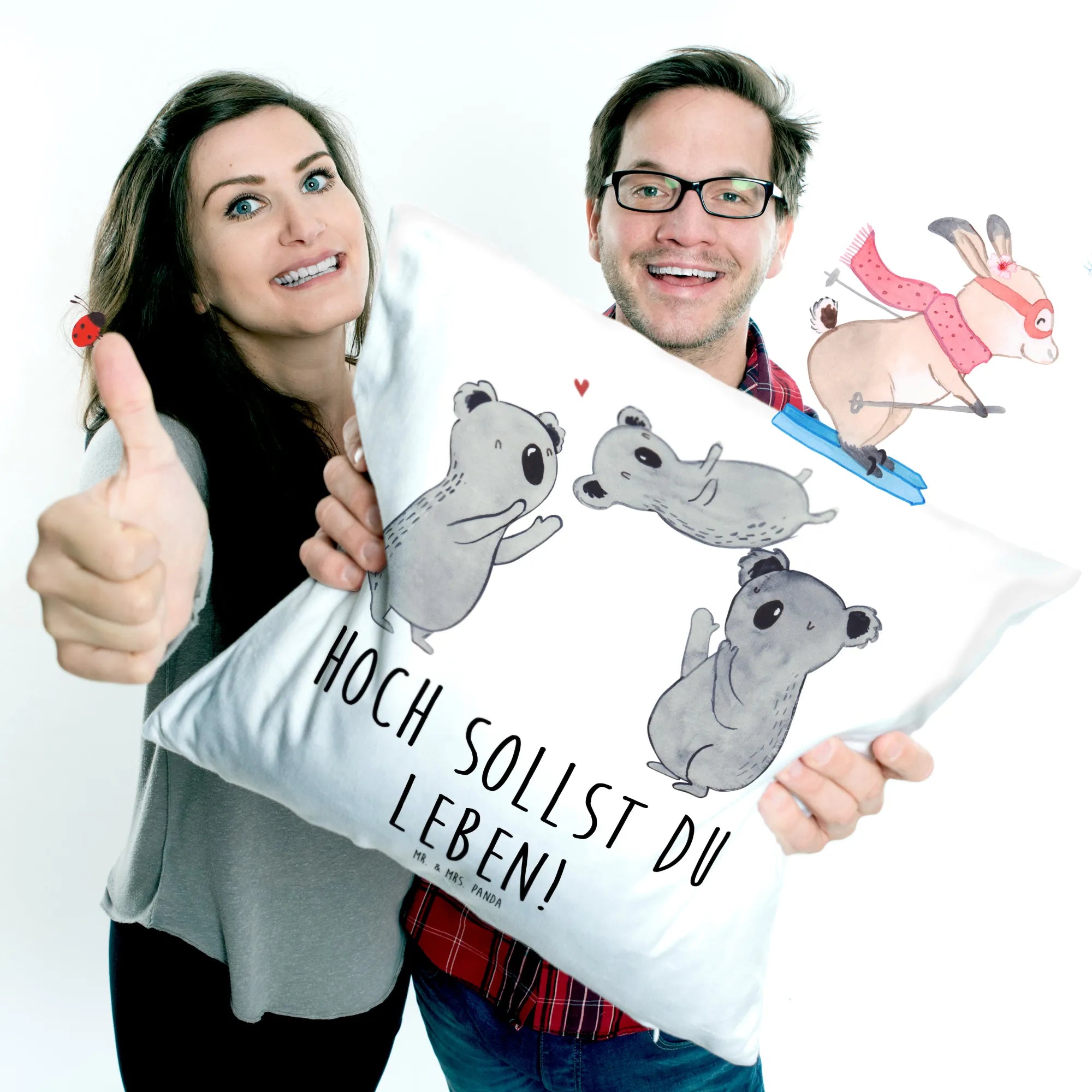 Introducing the delightful Mr. & Mrs. Panda Cushion featuring the enchanting Koalas celebrate motif—an absolute must-have for anyone looking to add warmth and joy to their living space! Perfectly sized at 40x40 cm, this soft and fluffy pillow is crafted from ultra-soft microfiber, making it the ideal addition to your couch, bed, or any cozy corner of your home.