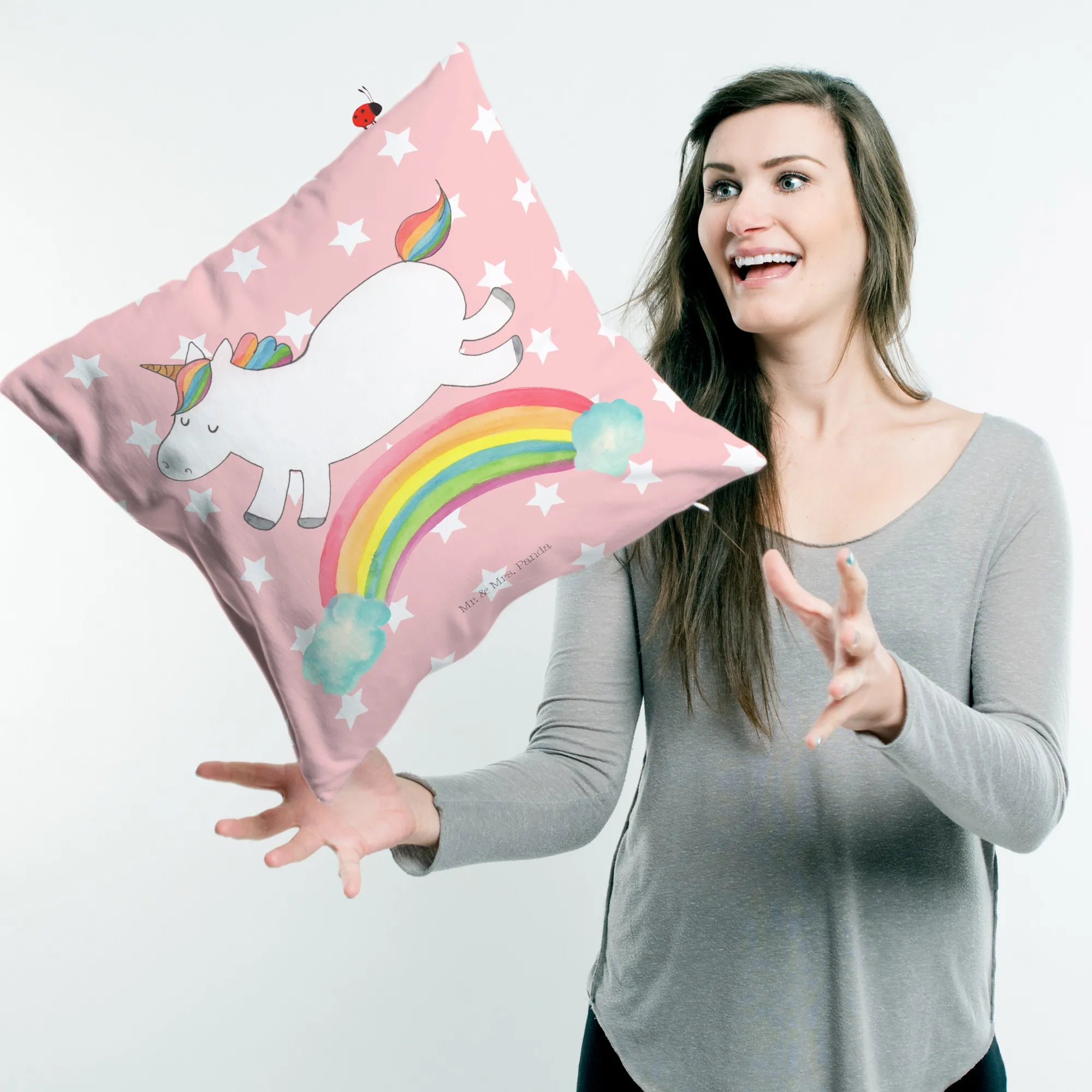 Hand-drawn with love by Mrs. Panda in Hanover, Germany, our Unicorn Rainbow design is not only visually stunning but also represents a precious piece of art. Each cushion cover is made from super soft, fluffy microfiber that invites you to curl up and relax. It’s perfectly crafted for both decor and comfort – whether as a soft support for your neck during a nap or a bright statement piece that livens up your living space.