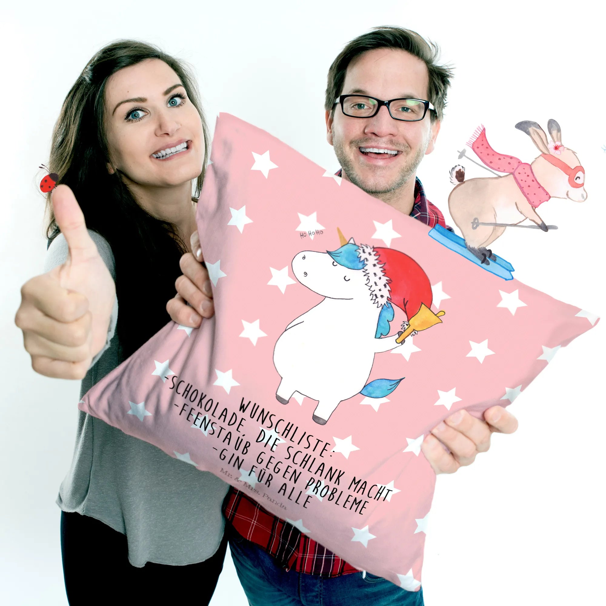 Cushion unicorn Santa Claus - with saying - Pastel Red