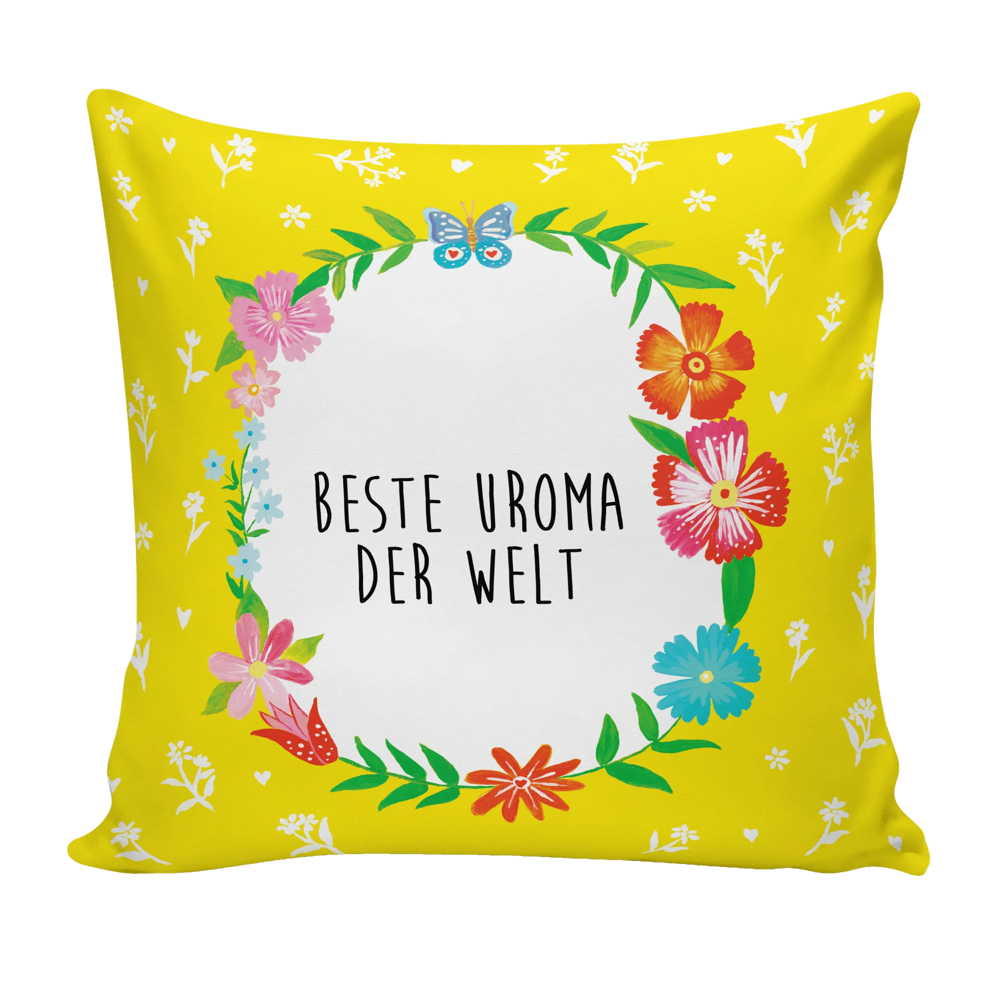 This cushion, boasting a delightful "Uroma" slogan, is not just a pillow; it's a warm hug for your grandmother, ensuring she feels cherished every time she rests her head on it.