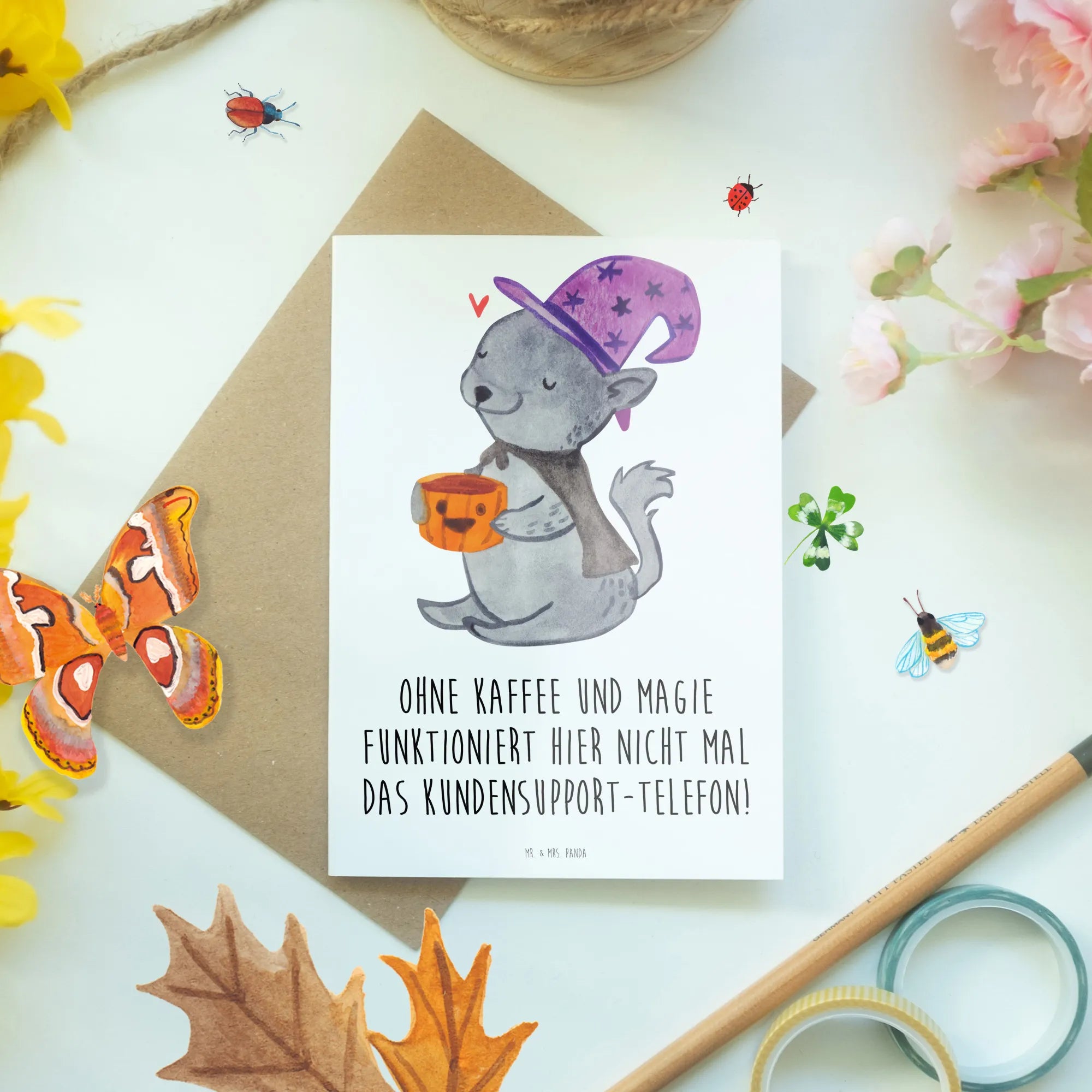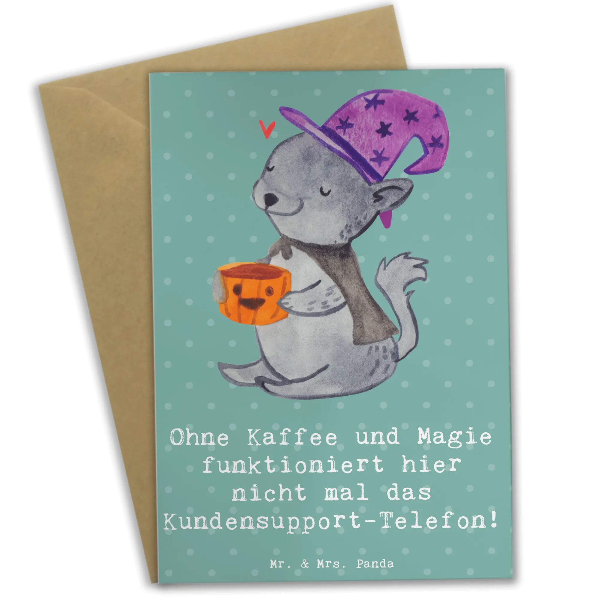 Greetings card Ohne Kaffee und Magie funktioniert hier nicht mal das Kundensupport-Telefon! - Grey Pastel
